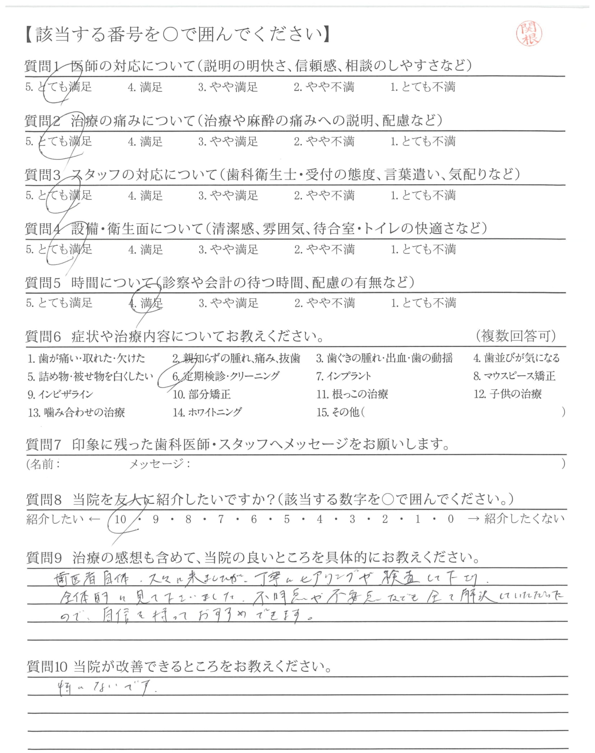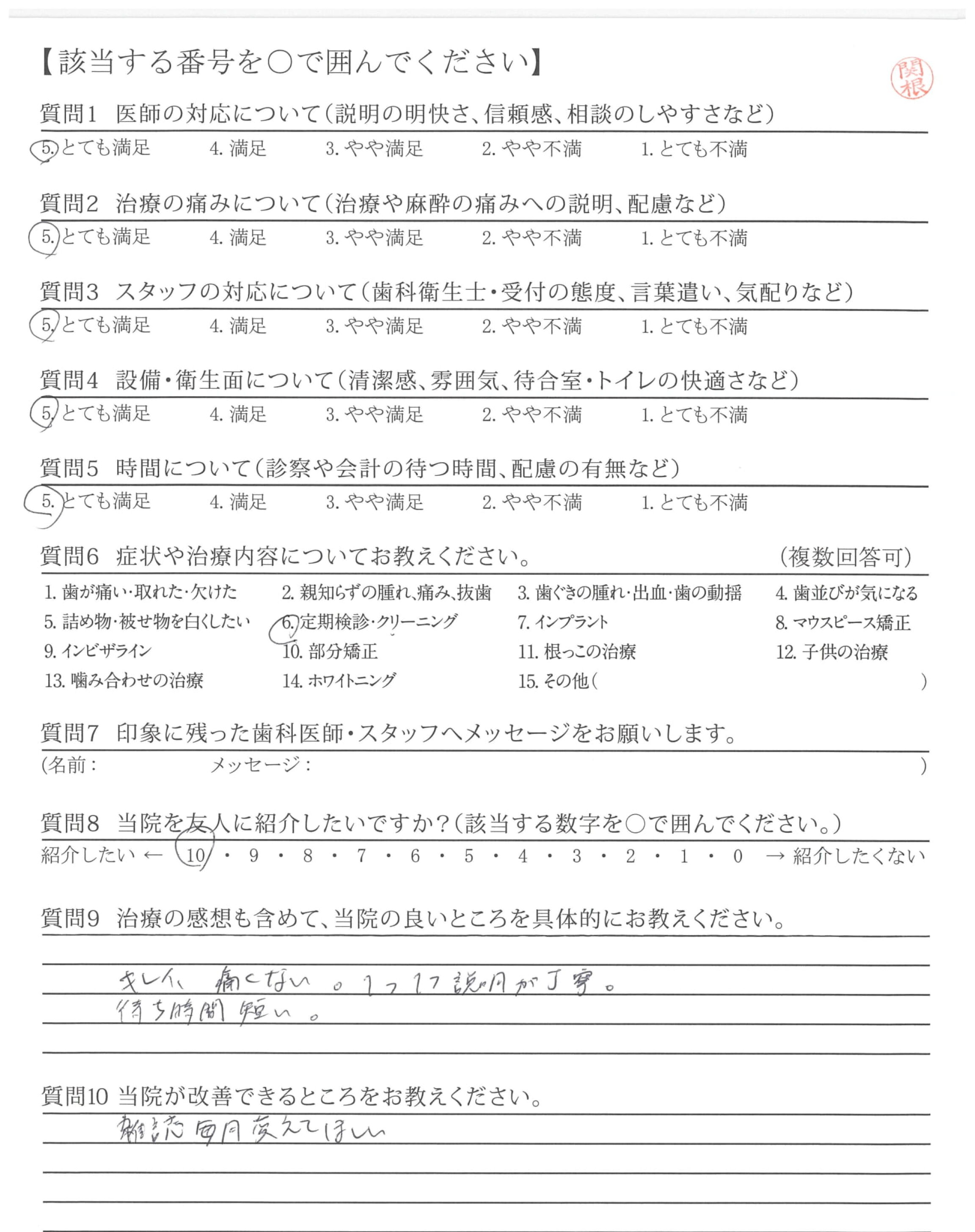 | 治療の痛みへの配慮 | ![]() ![]() ![]() ![]() 4.45 |