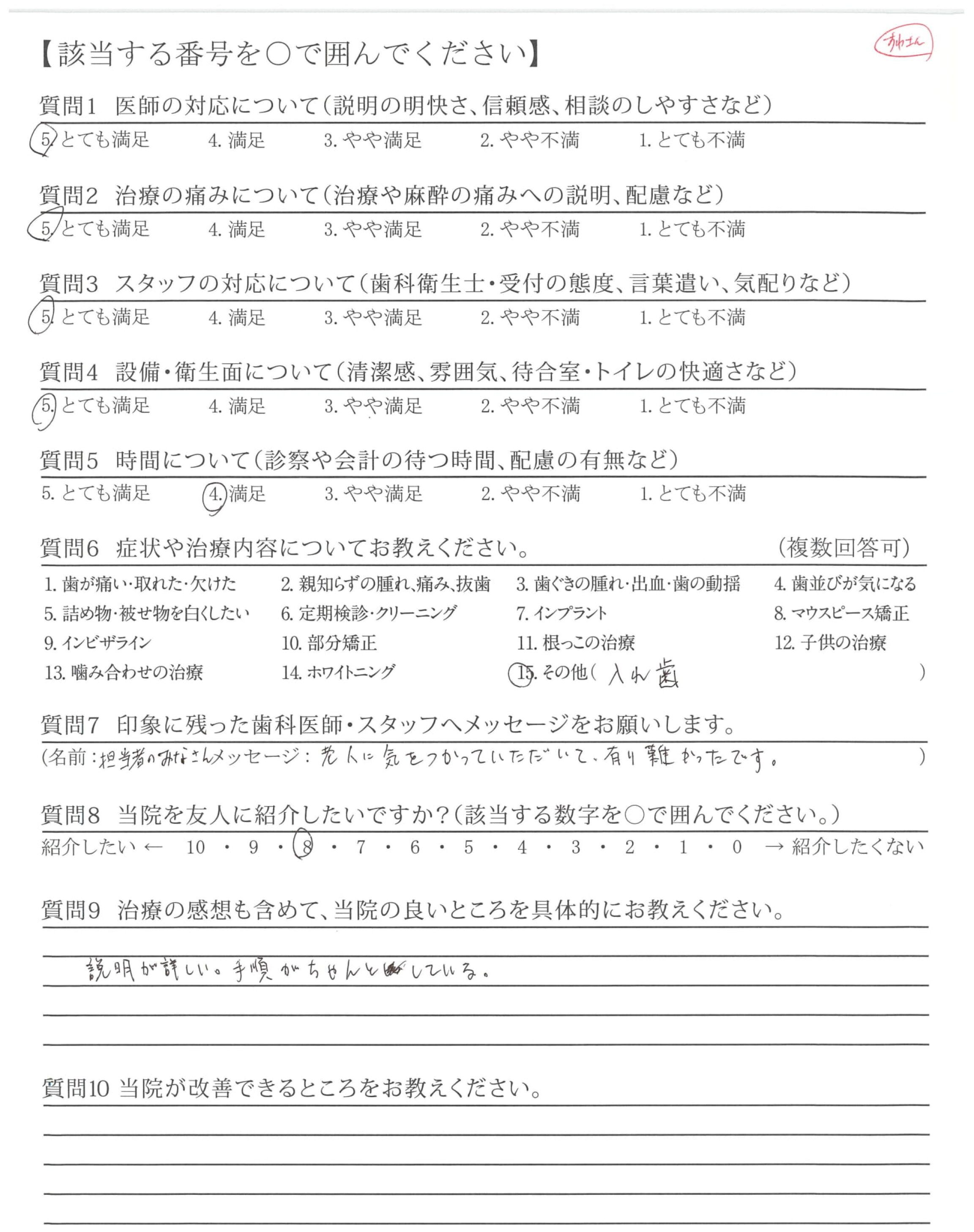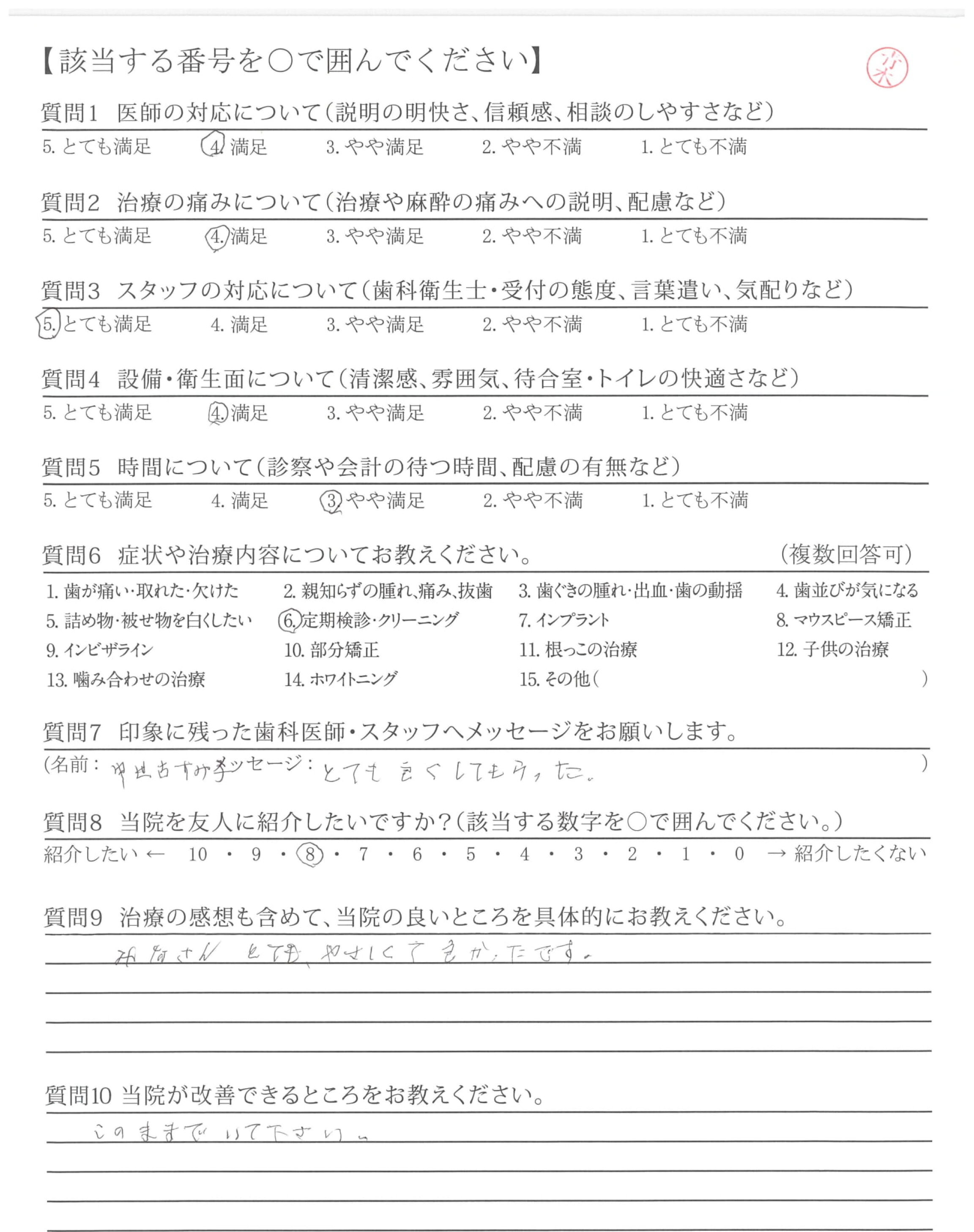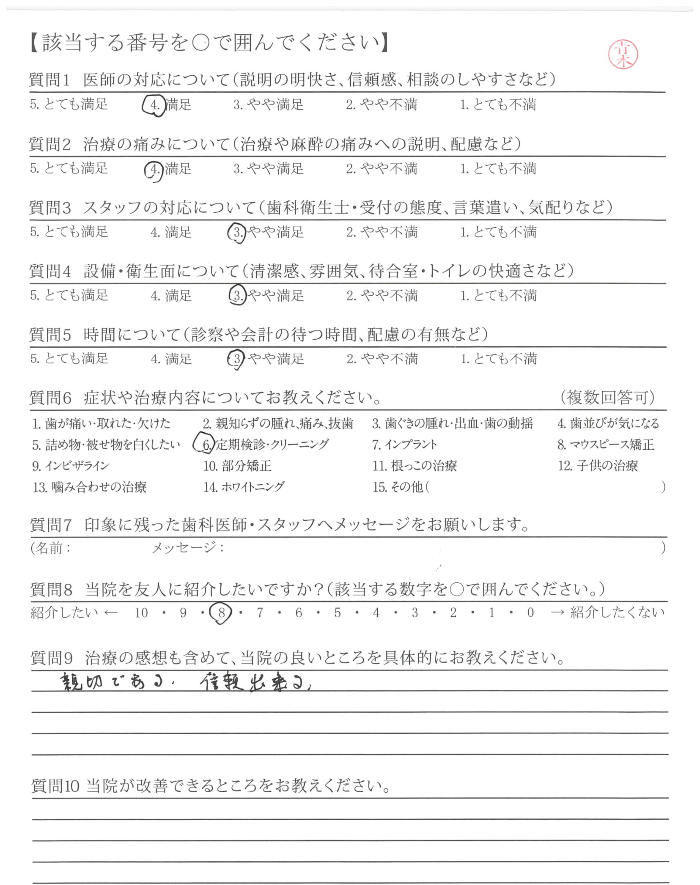 | 歯科医師の対応 | ![]() ![]() ![]() ![]() 4.51 |