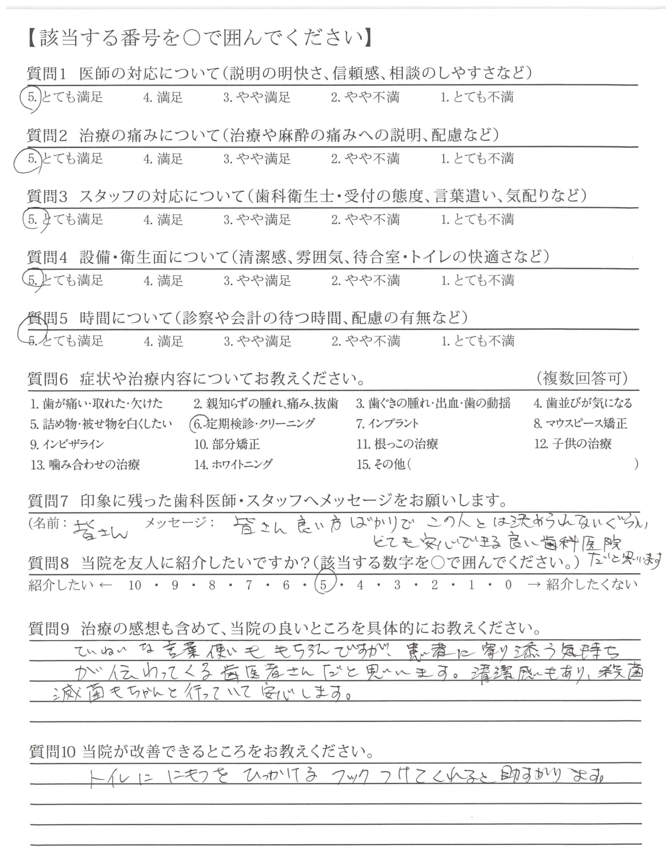 いつも子供にも優しく接してくれて治療内容、経過等分かりやすく説明してくれるので安心してまかせられます。