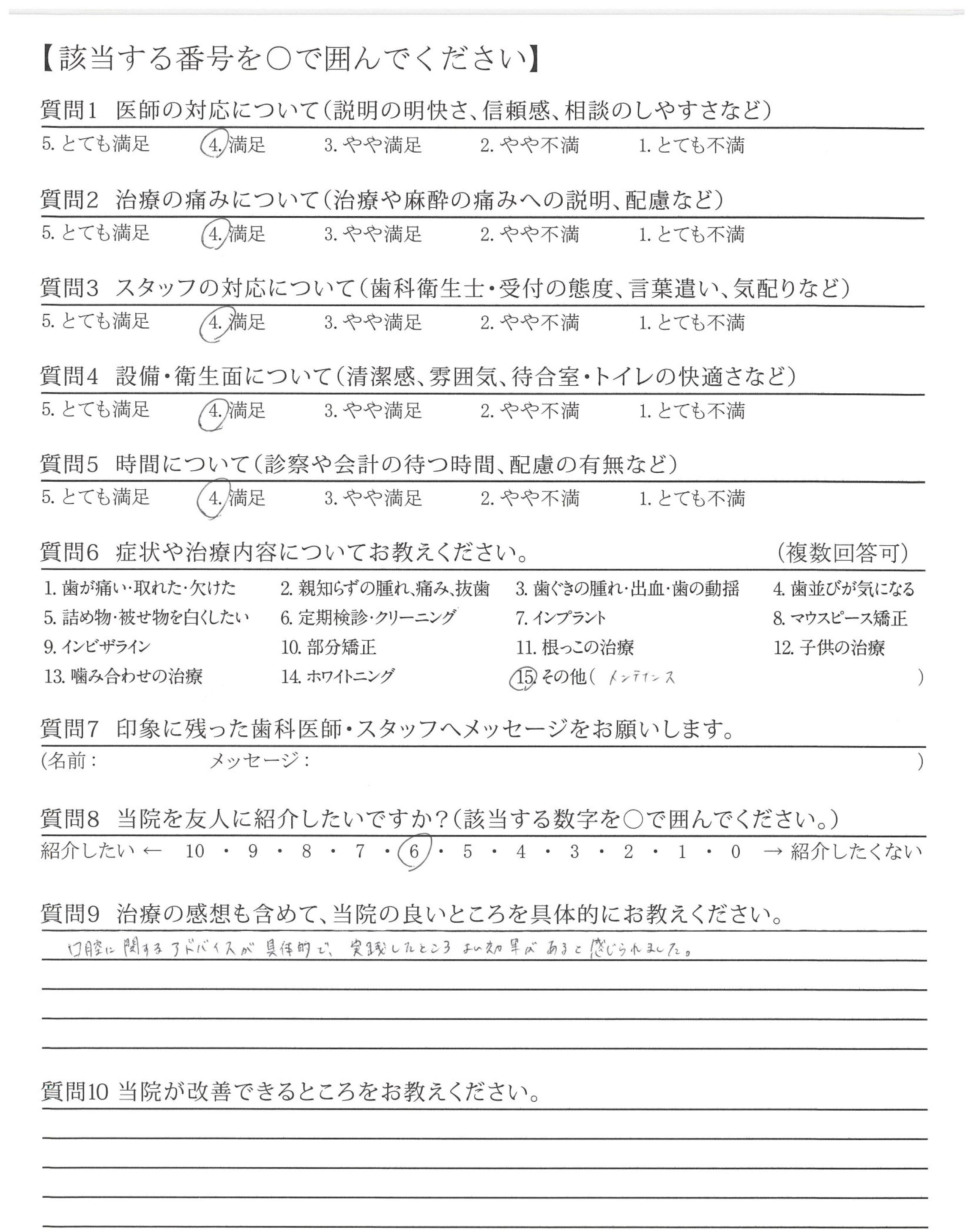 口腔に関するアドバイスが具体的で、実践したところよい効果があると感じられました。
