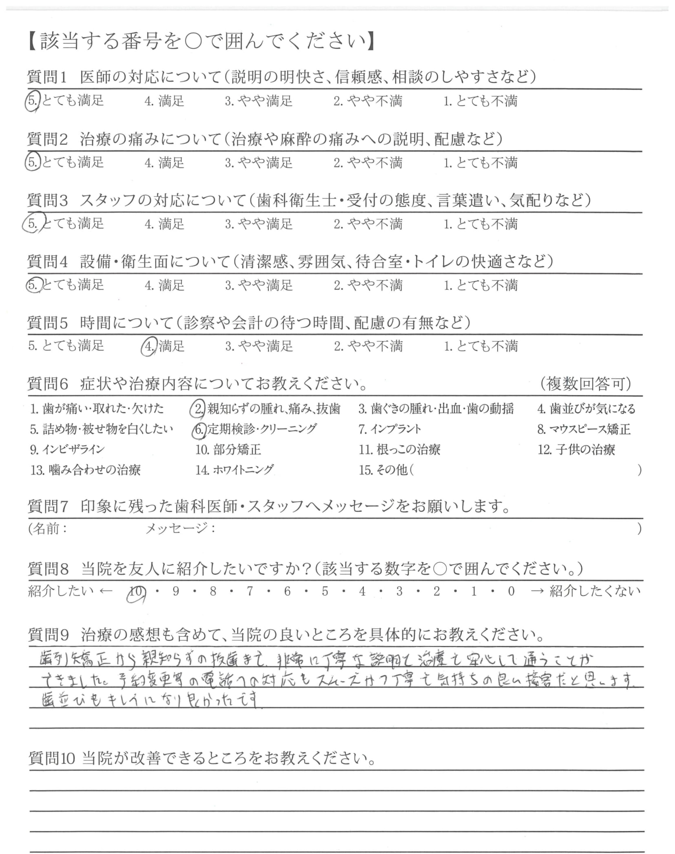 歯列矯正から親知らずの抜歯まで非常に丁寧な説明と治療で安心して通うことができました。