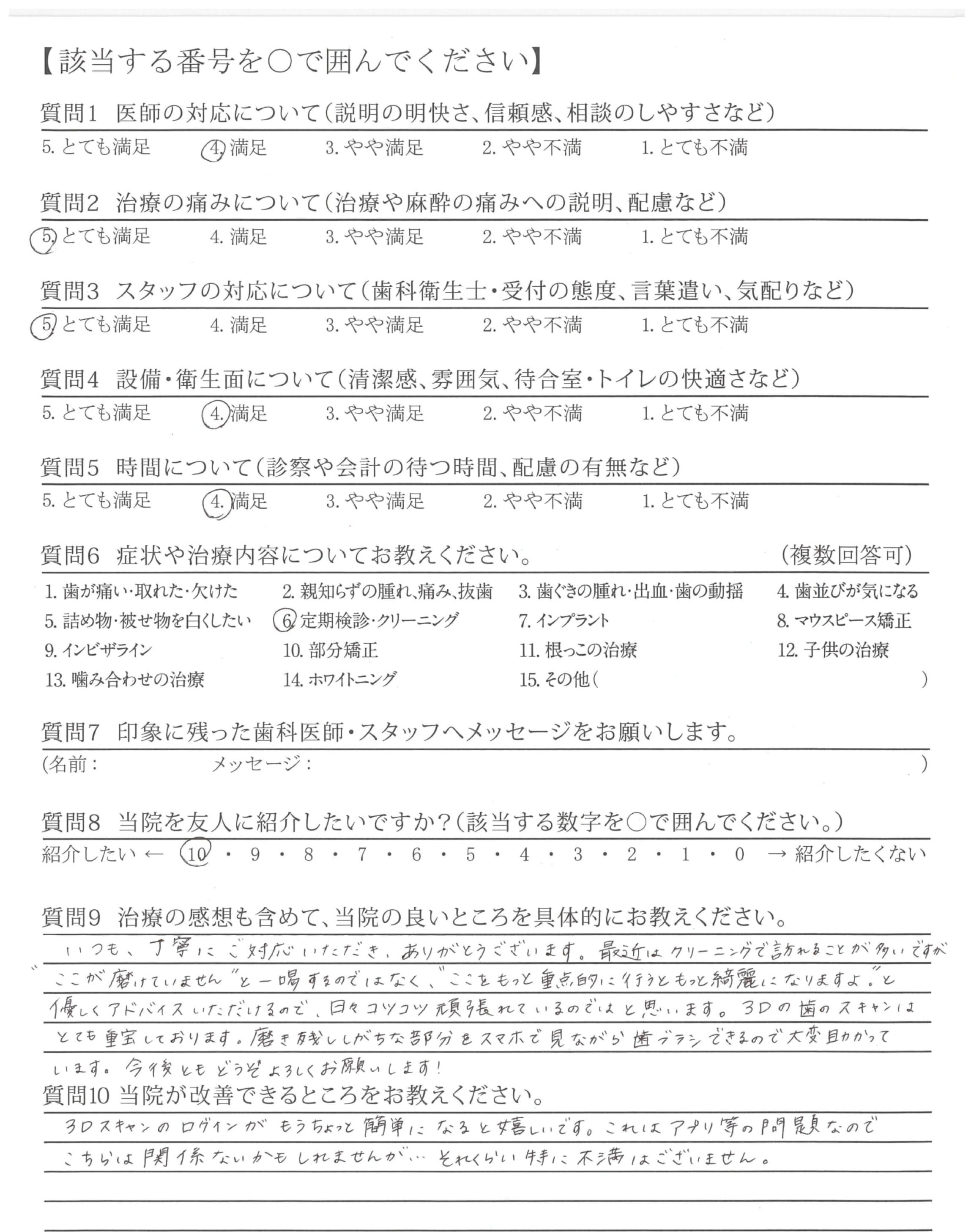 3Dの歯のスキャンはとても重宝しております。磨き残ししがちな部分をスマホで見ながら歯ブラシできるので大変助かっています。