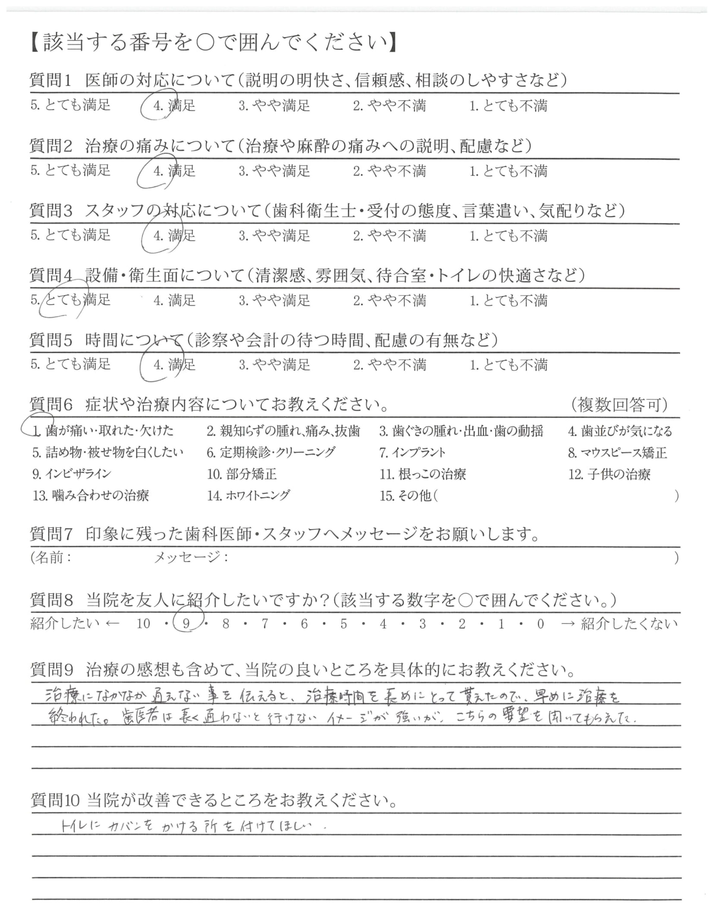 ・今残っている自分の歯を大切になるべく温存する方向で治療して下さるのがとてもありがたいと思う。