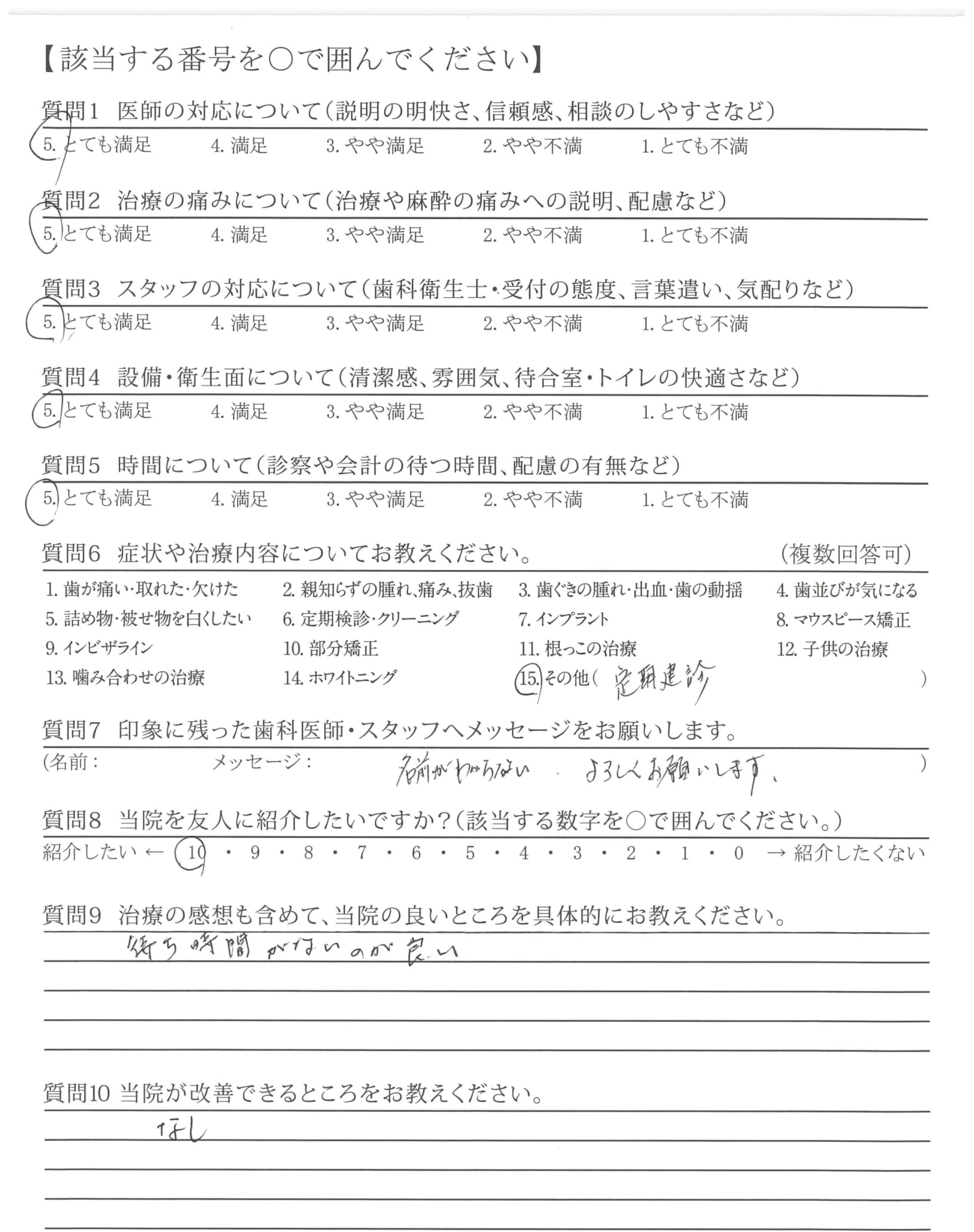 スタッフの皆さんもとても親切な方ばかりで歯科のイメージがずいぶんかわりました。