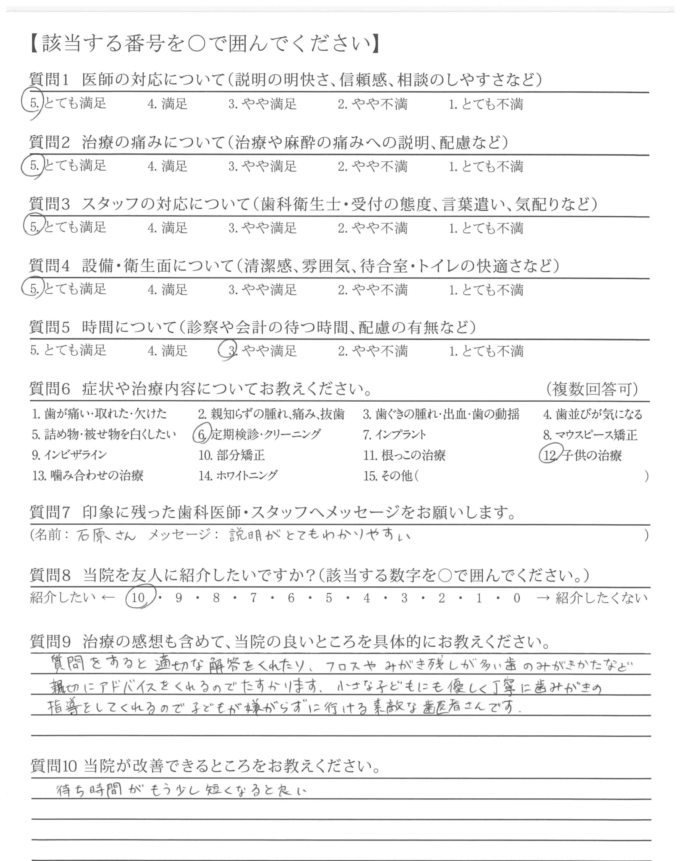 いつも丁寧に個人指導してもらって虫歯や歯周病予防がんばろうと思える。
