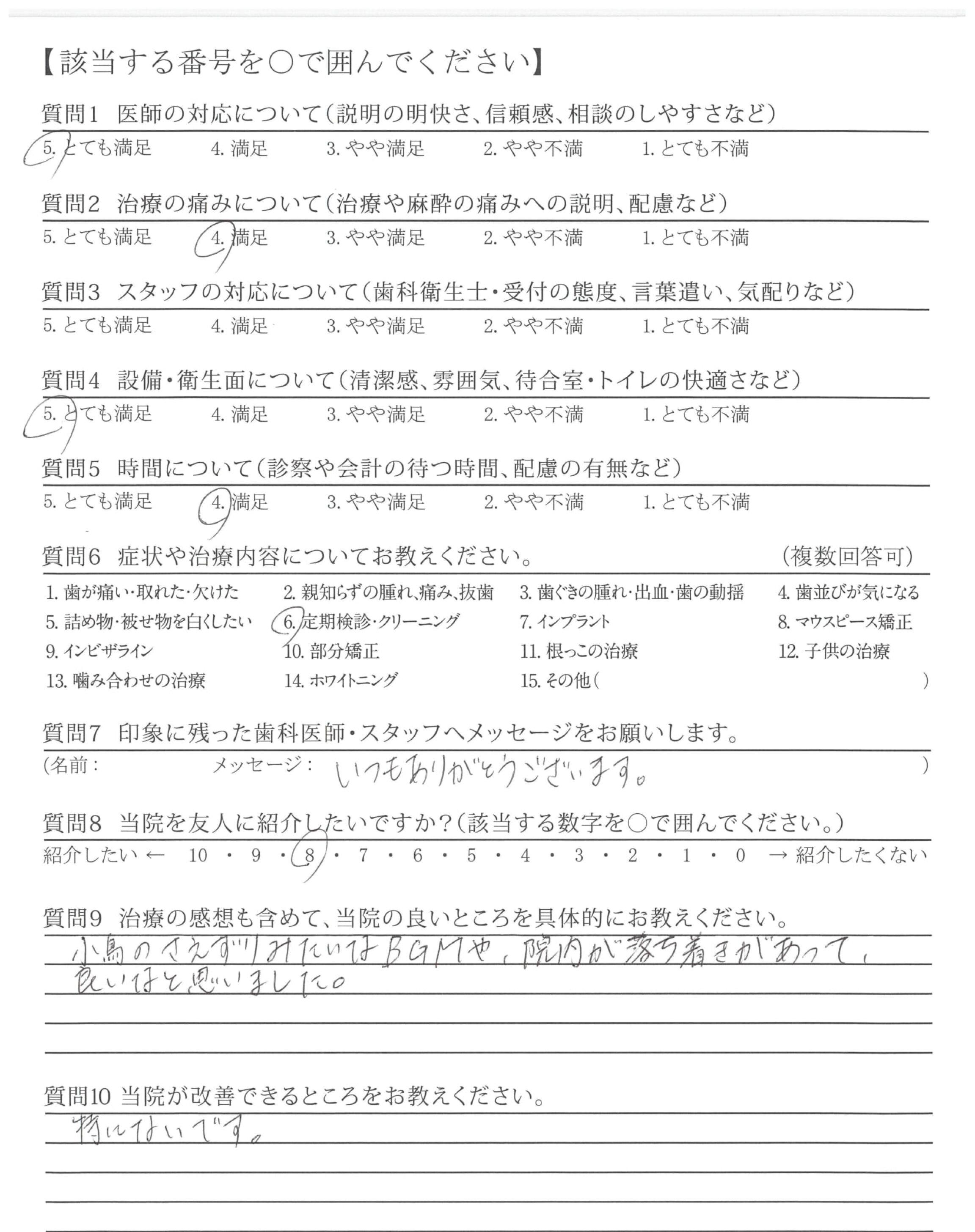 小鳥のさえずりみたいなBGMや、院内が落ち着きがあって、良いなと思いました。