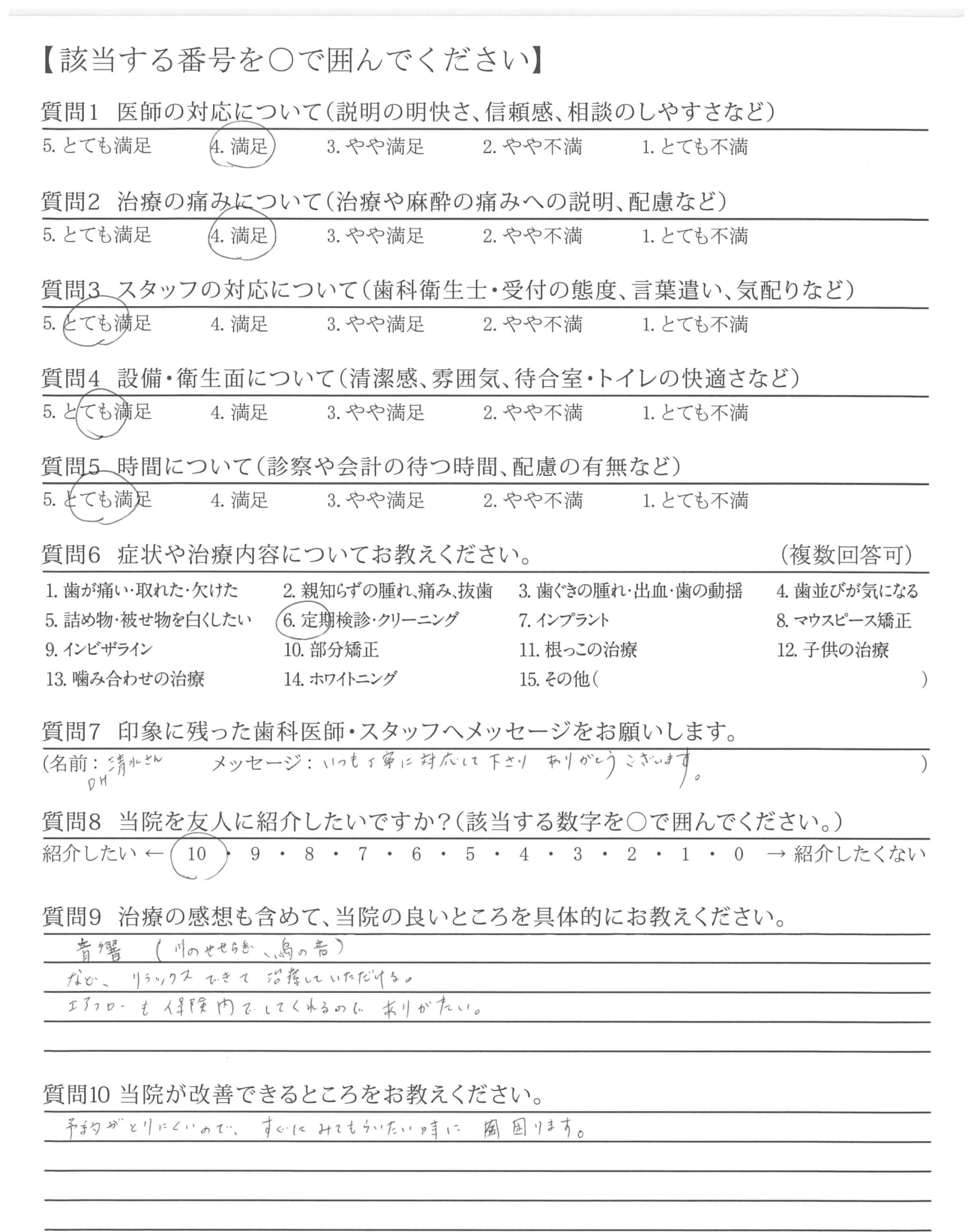 | 治療の痛みへの配慮 | ![]() ![]() ![]() ![]() 4.66 |
