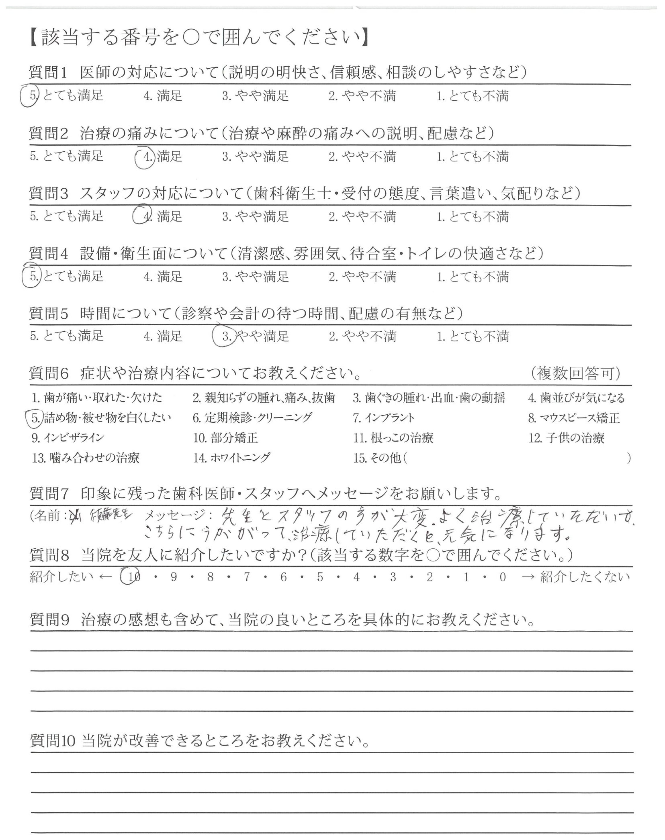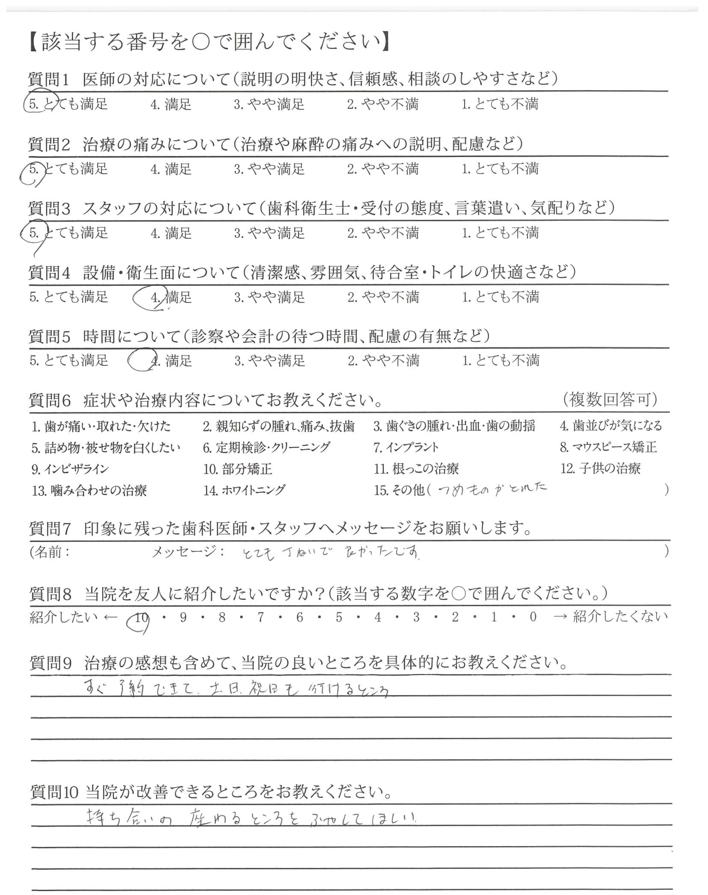とてもていねいに治療していただき、ありがとうございました。