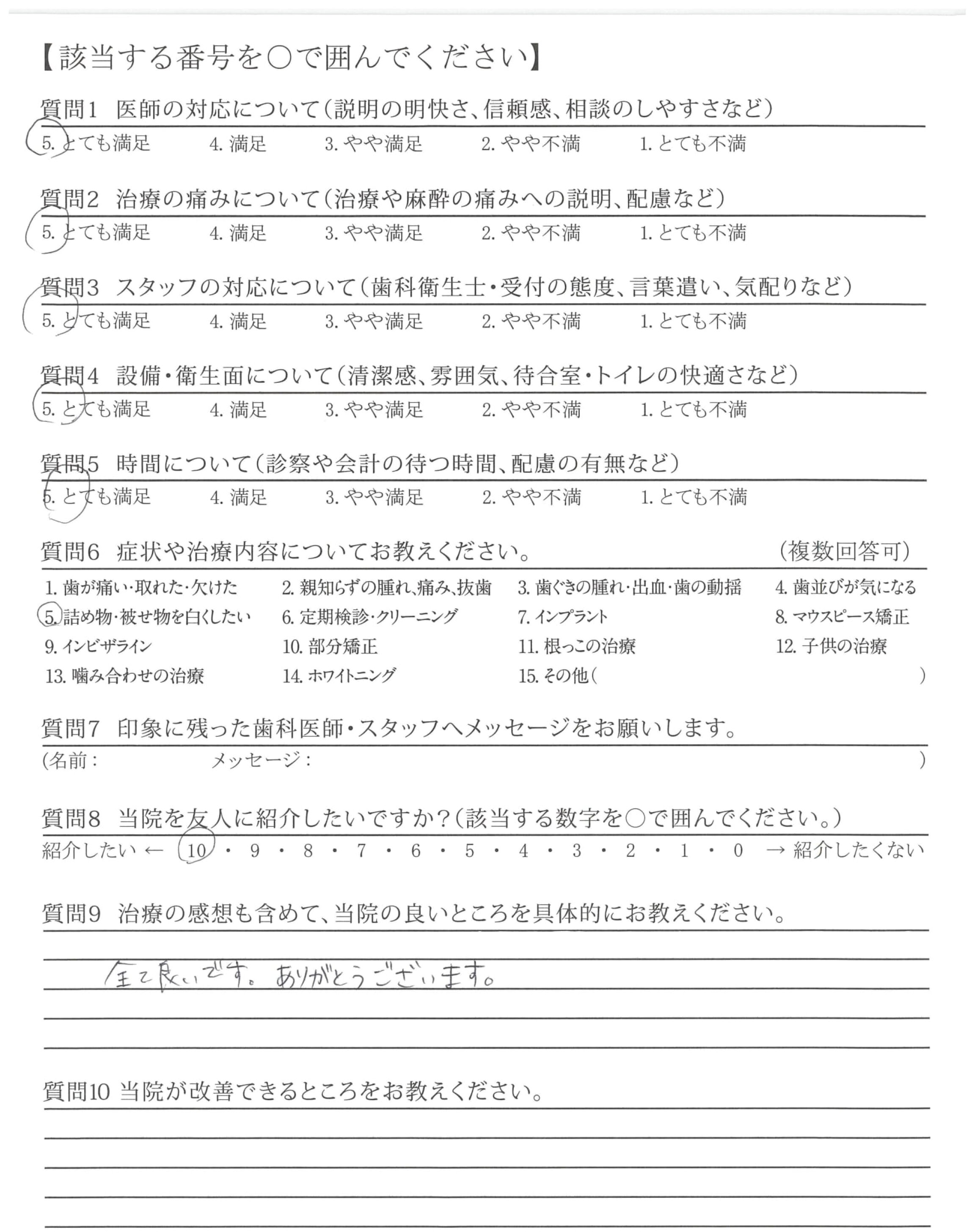 ・治療も痛み等細かく気にして下さりありがたかったです。