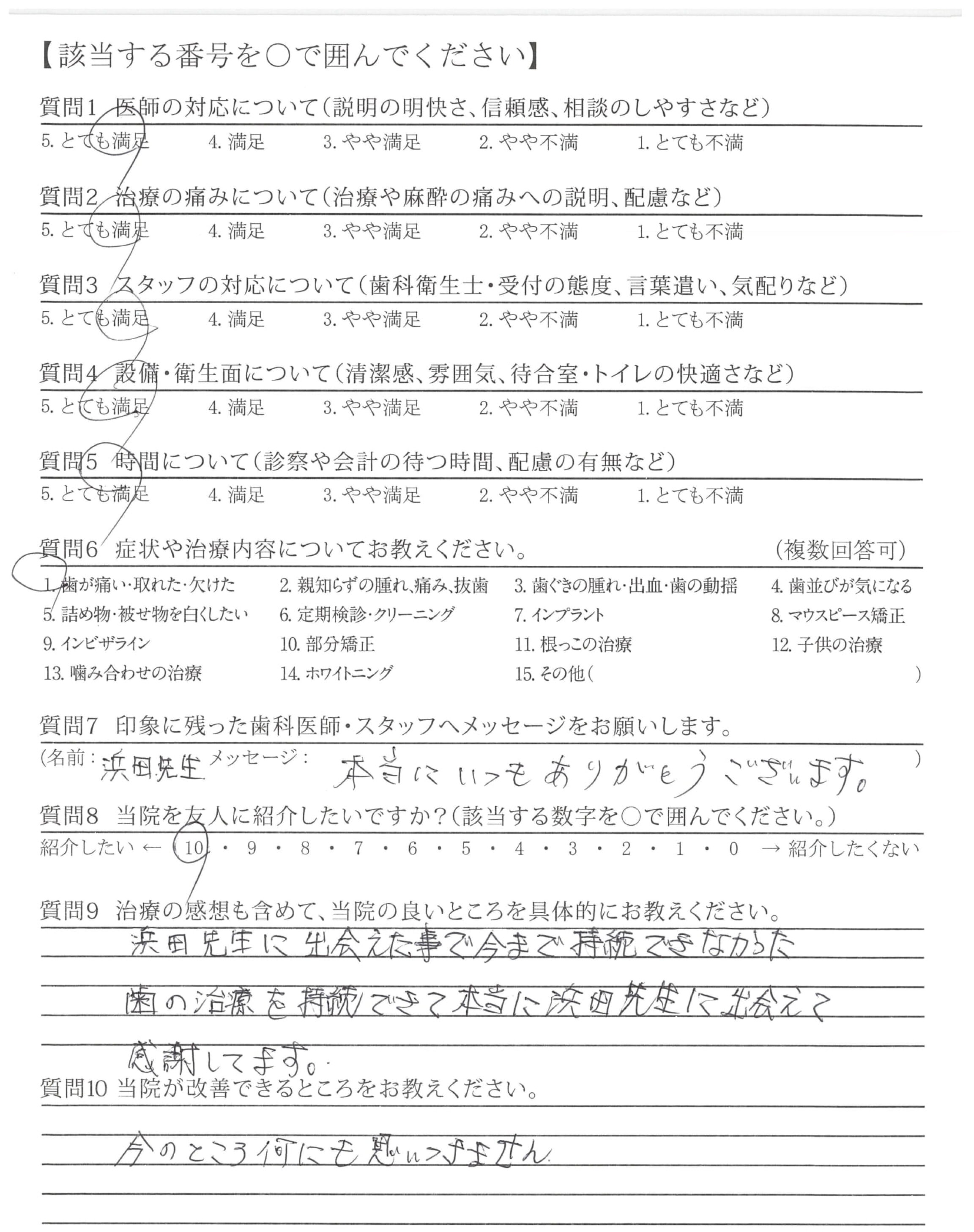 浜田先生に出会えた事で今まで持続できなかった歯の治療を継続できて本当に浜田先生に出会えて感謝しています。