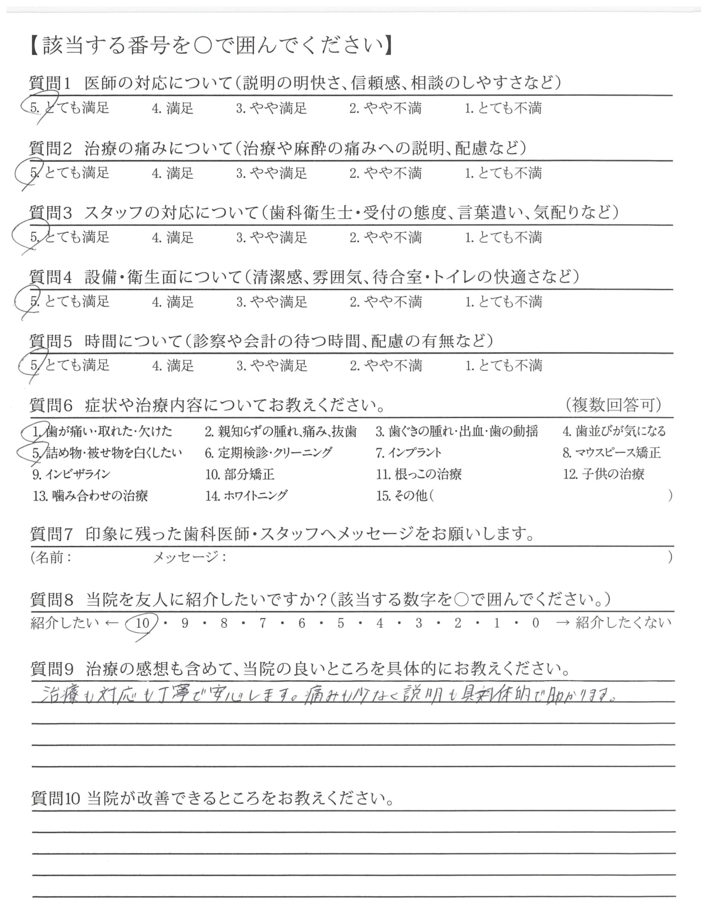 治療の際も都度痛みがないか確認してくれて、ていねいだと感じた。