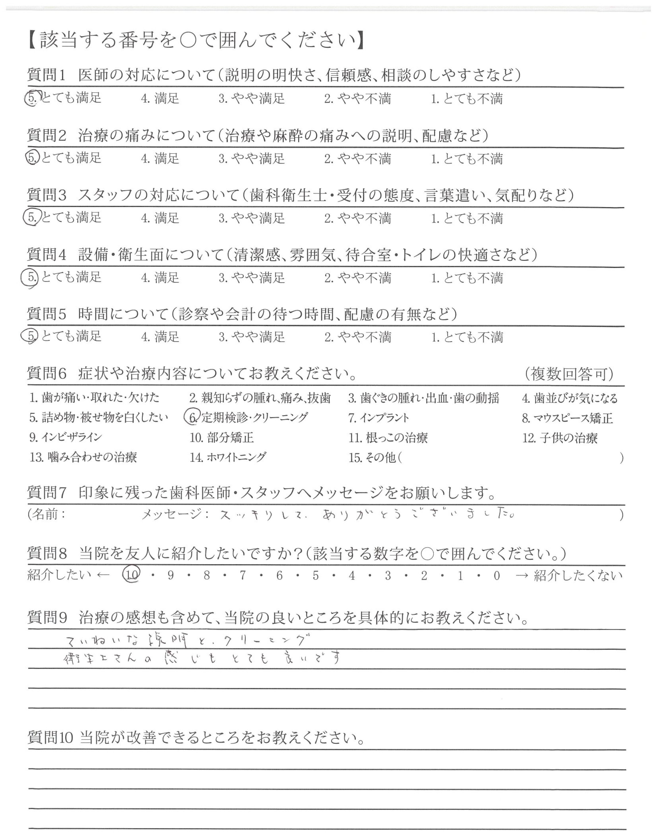 いつもとても丁寧なクリーニングをして頂きありがとうございます。お優しい人柄で、安心してお願いできます。これからもよろしくお願いします。