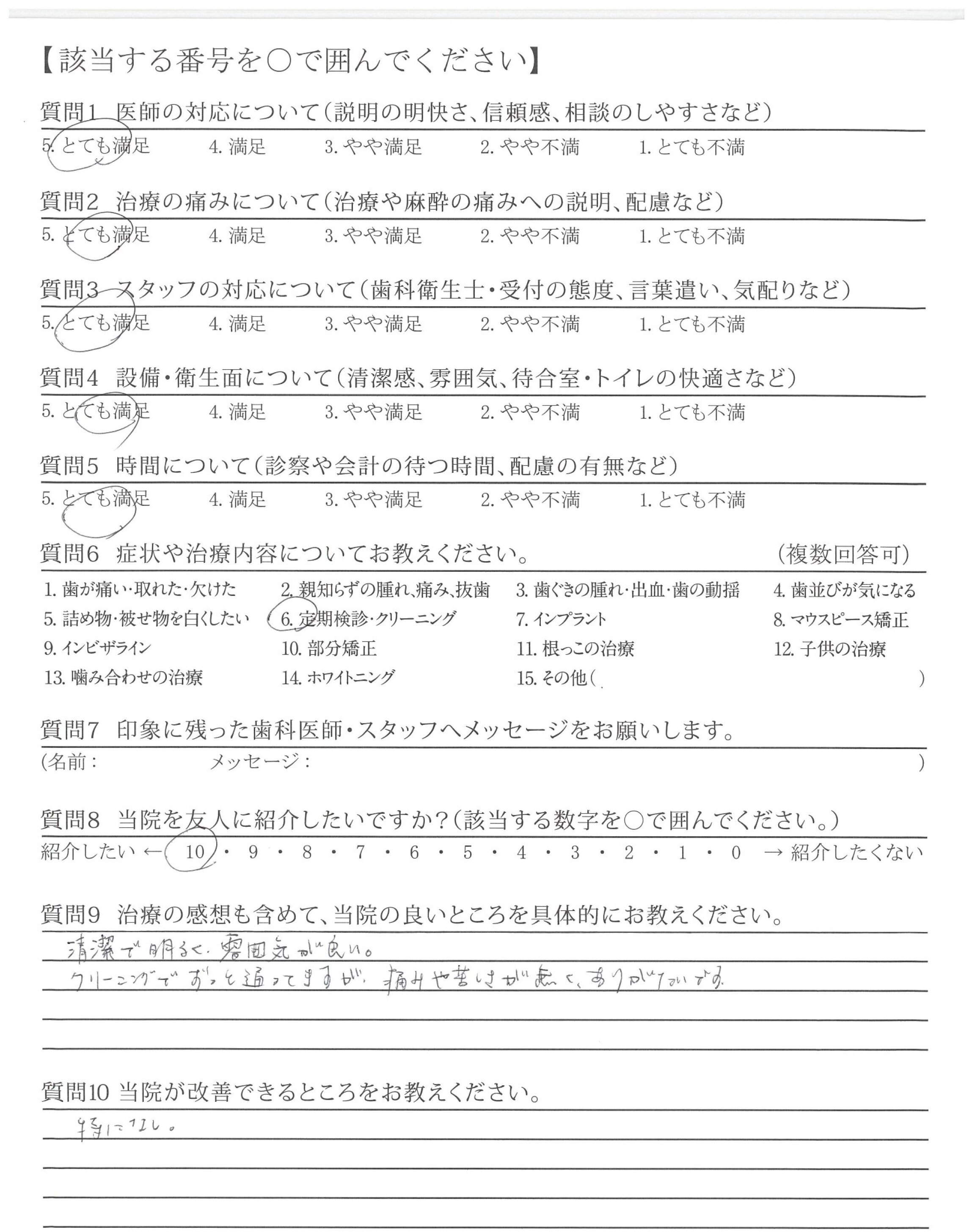クリーニングでずっと通ってますが、痛みや苦しさが無く、ありがたいです。