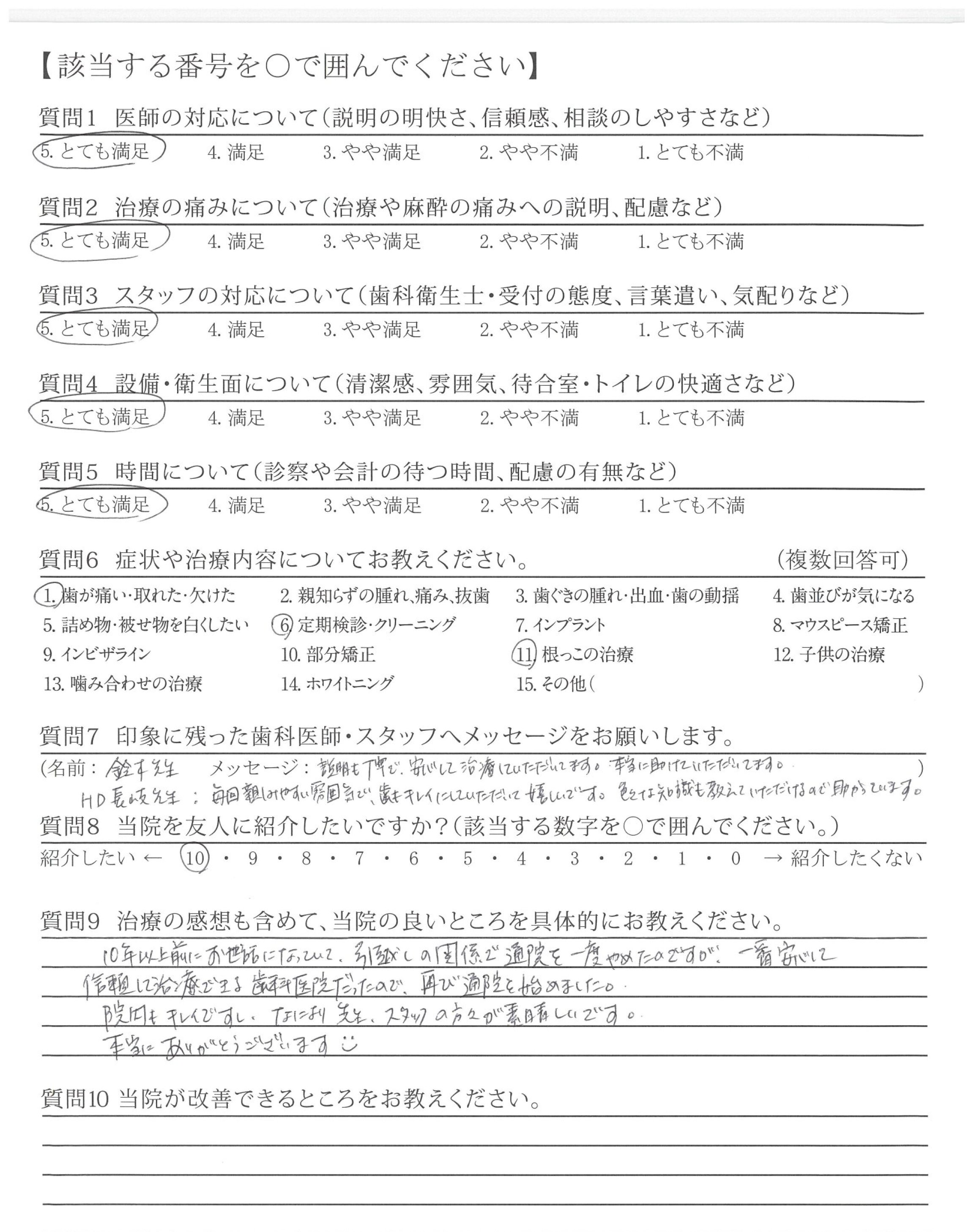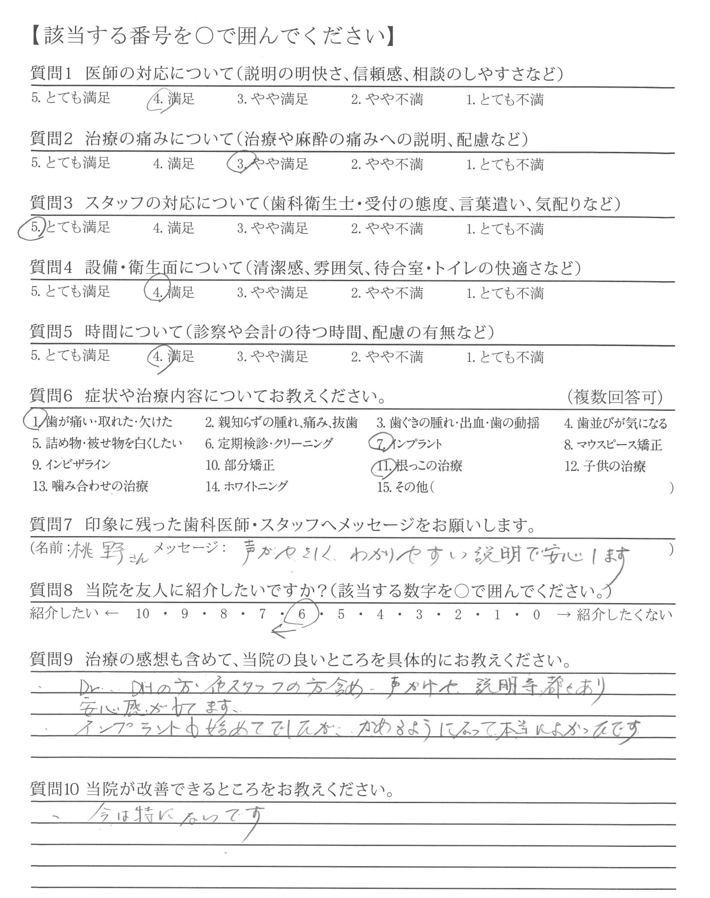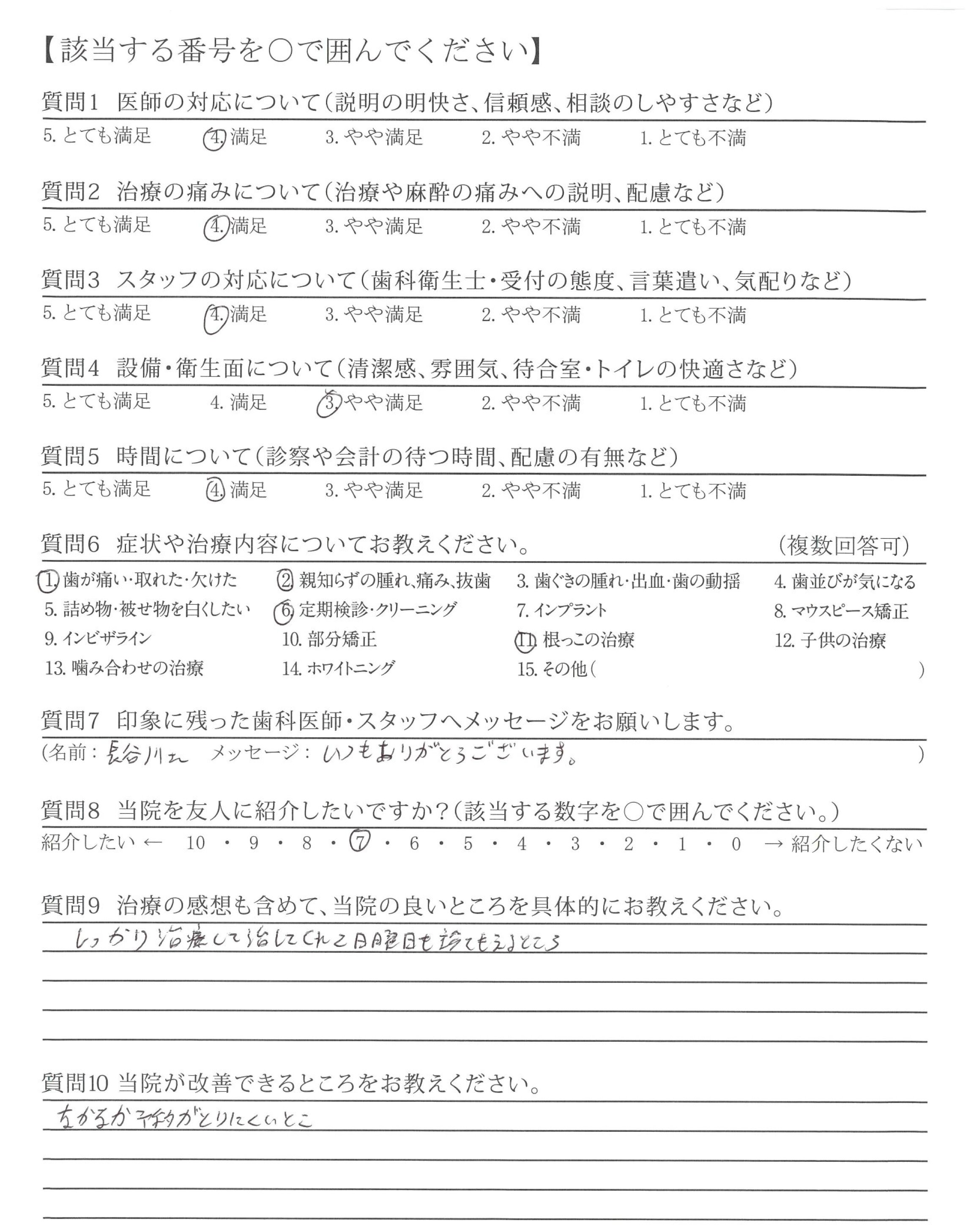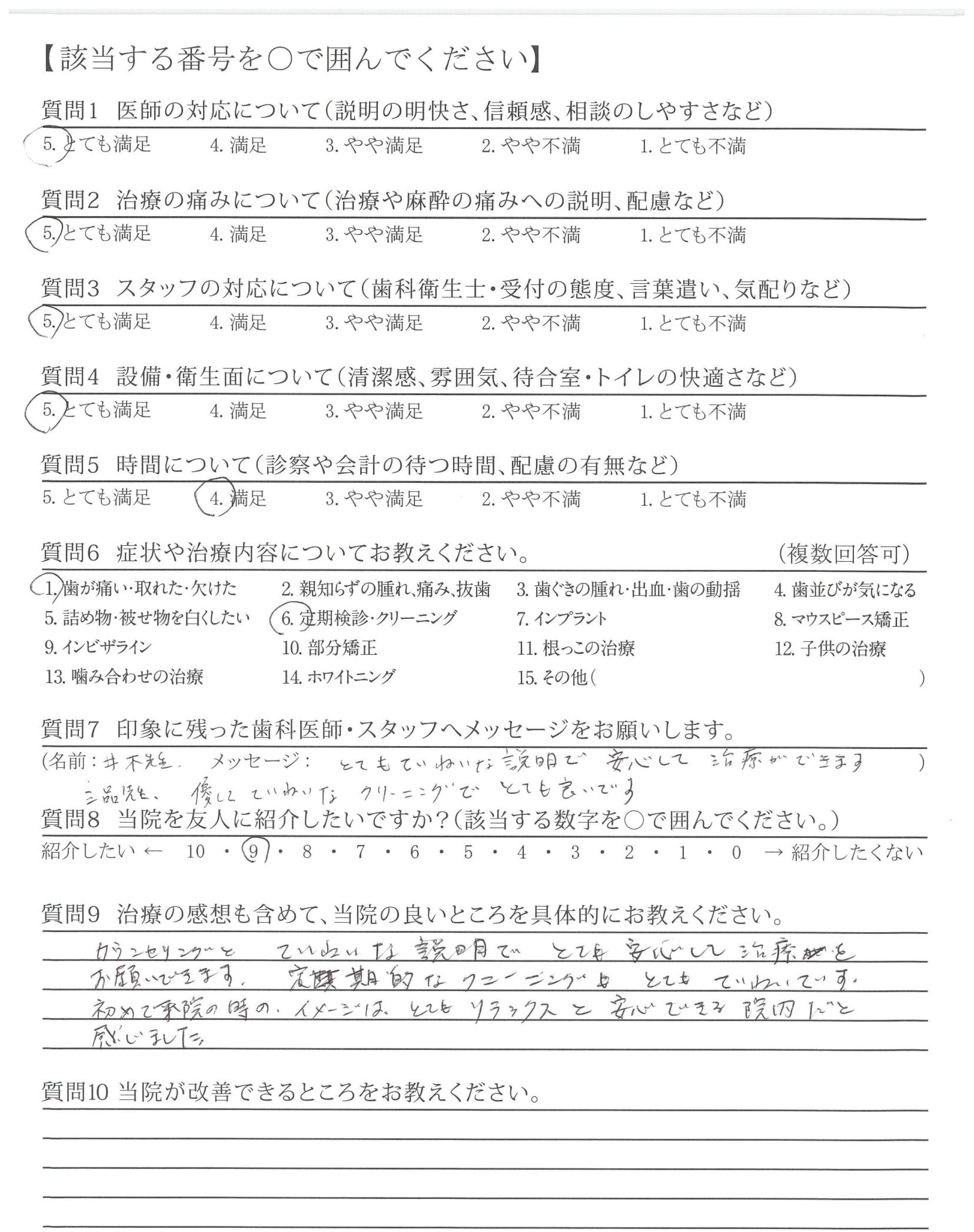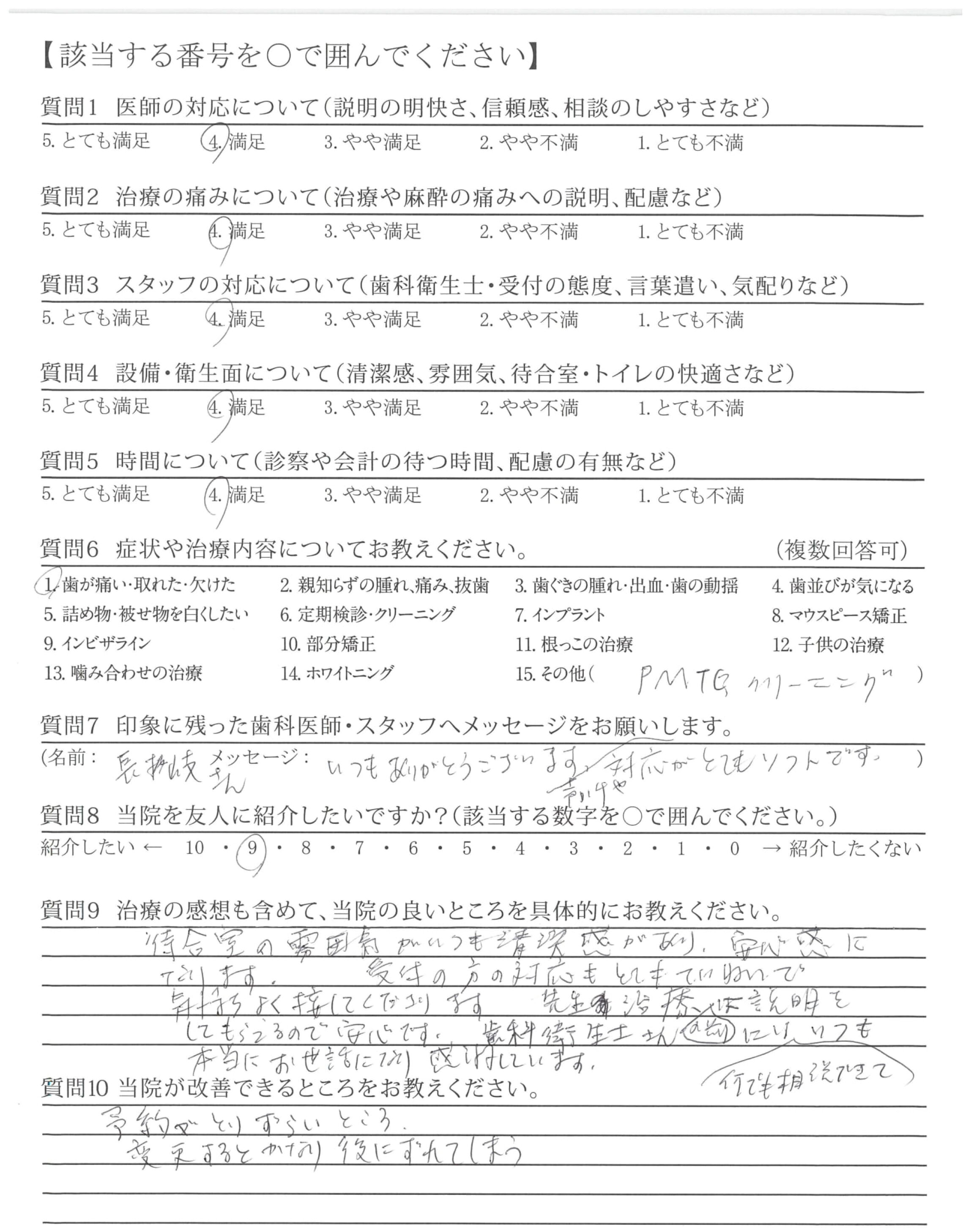 ・歯みがき指導が丁寧で、自分のみがき方の改善が出来、歯も歯ぐきも良くなった。