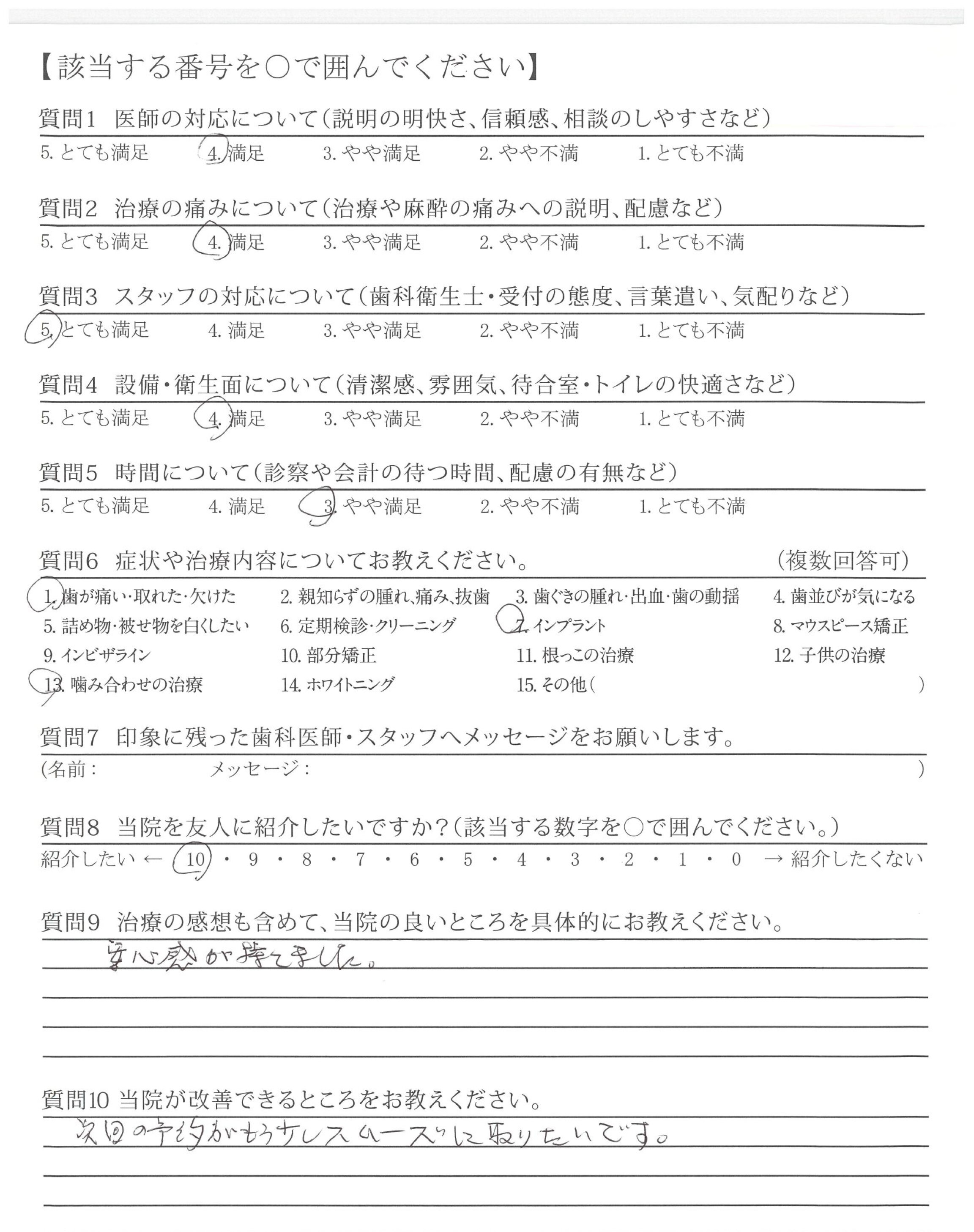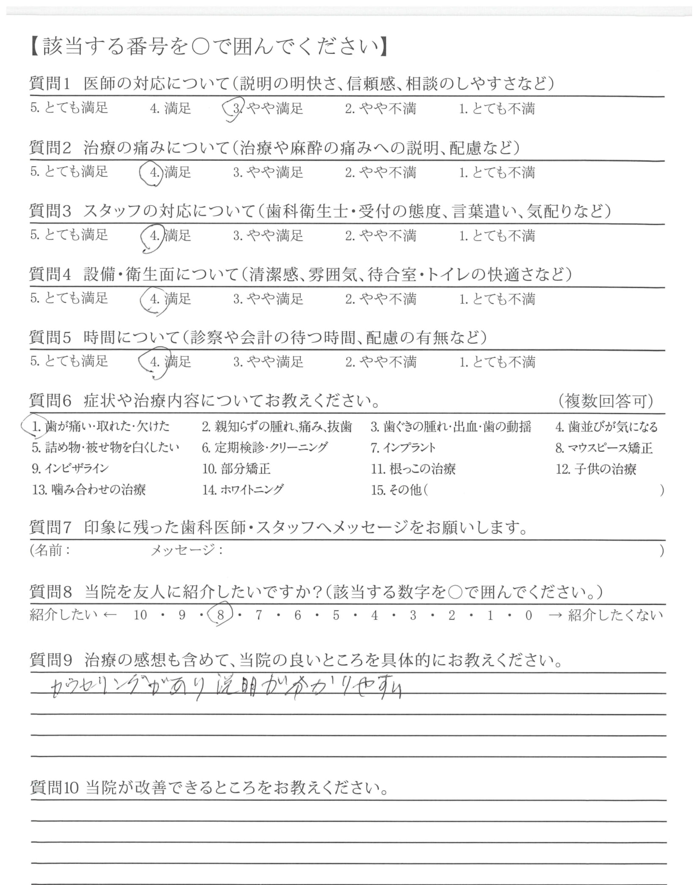 | 治療の痛みへの配慮 | ![]() ![]() ![]() ![]() 4.51 |