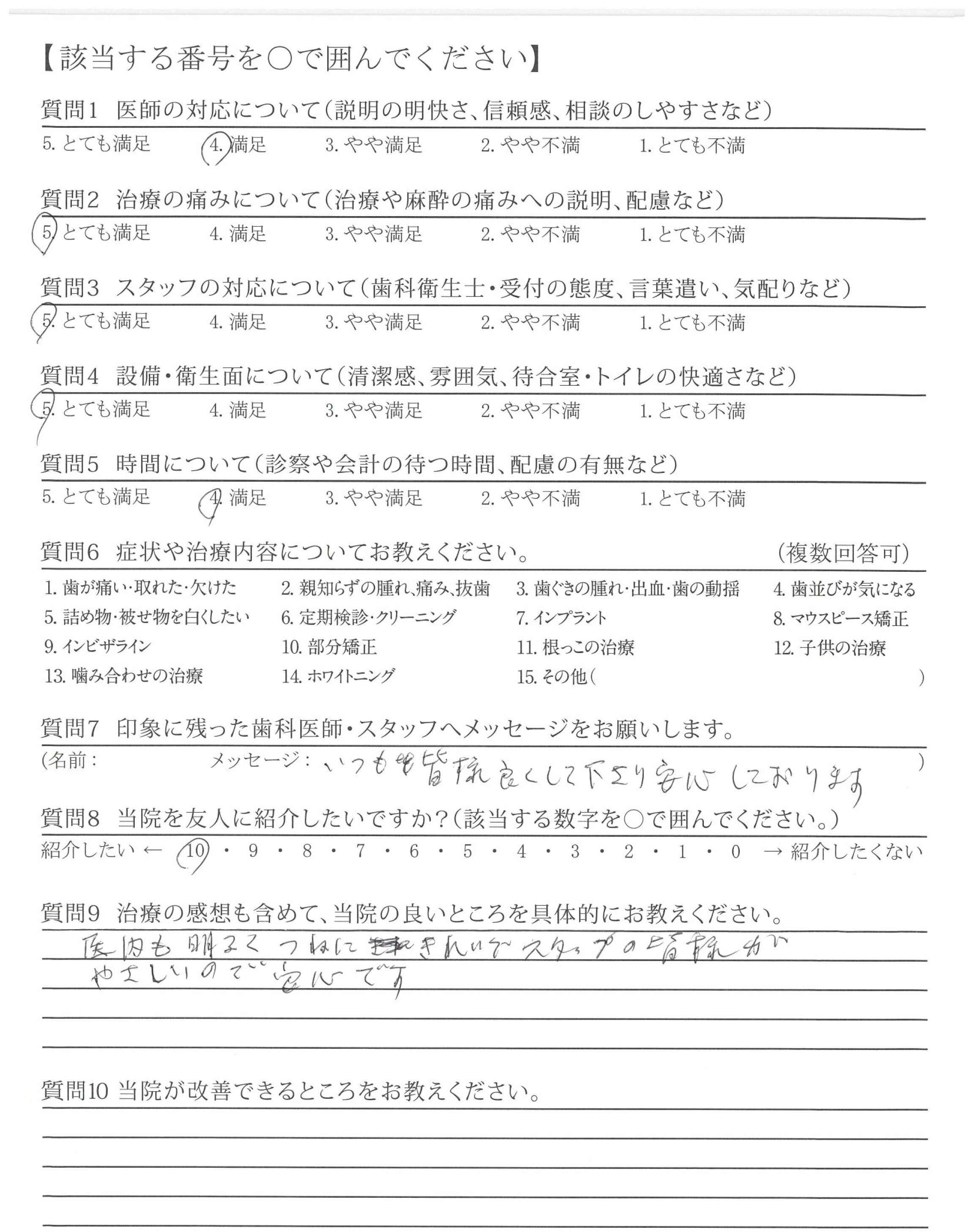 | 治療の痛みへの配慮 | ![]() ![]() ![]() ![]() 4.51 |