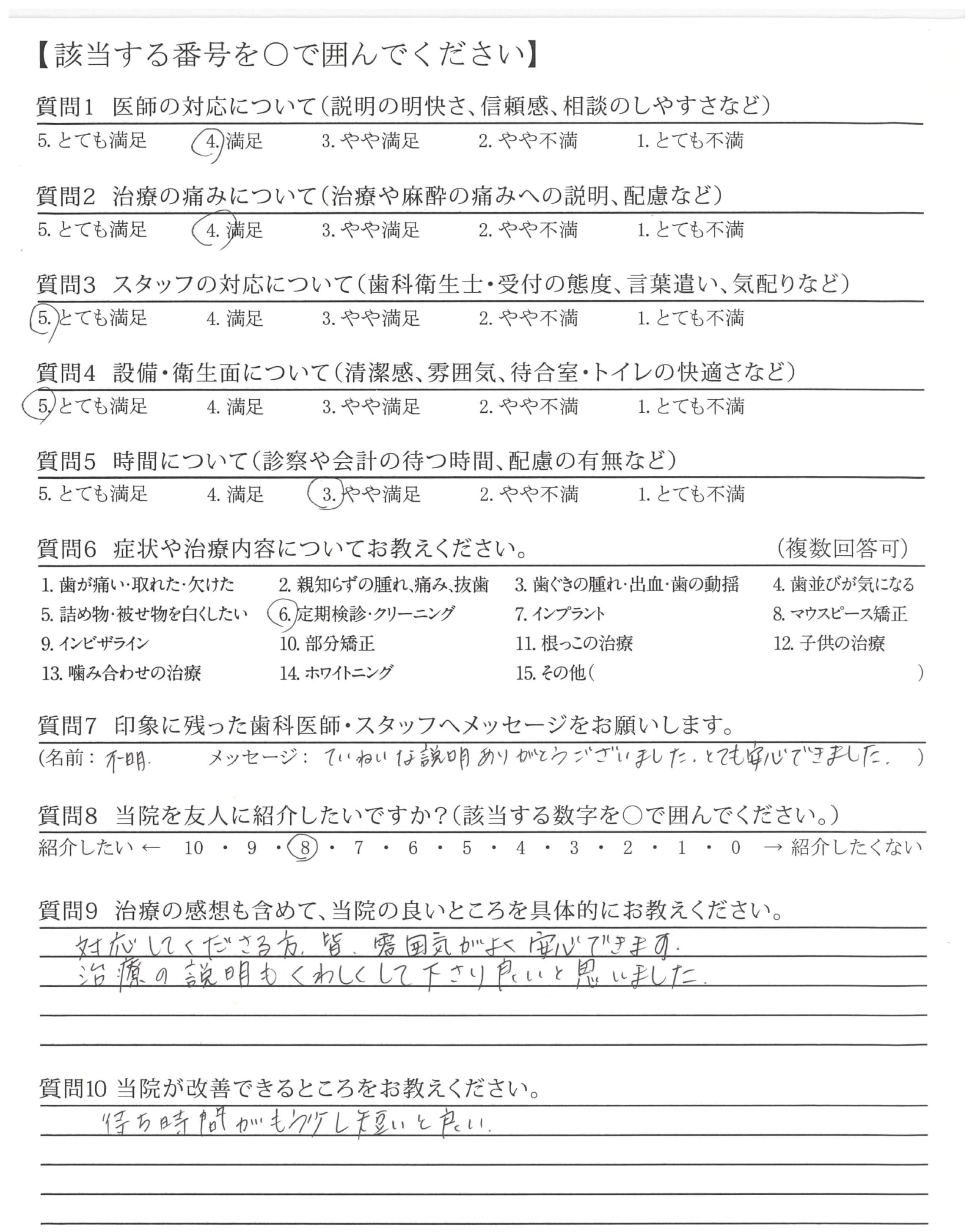 ドクターの説明もわかりやすく治療も安心感がありました。