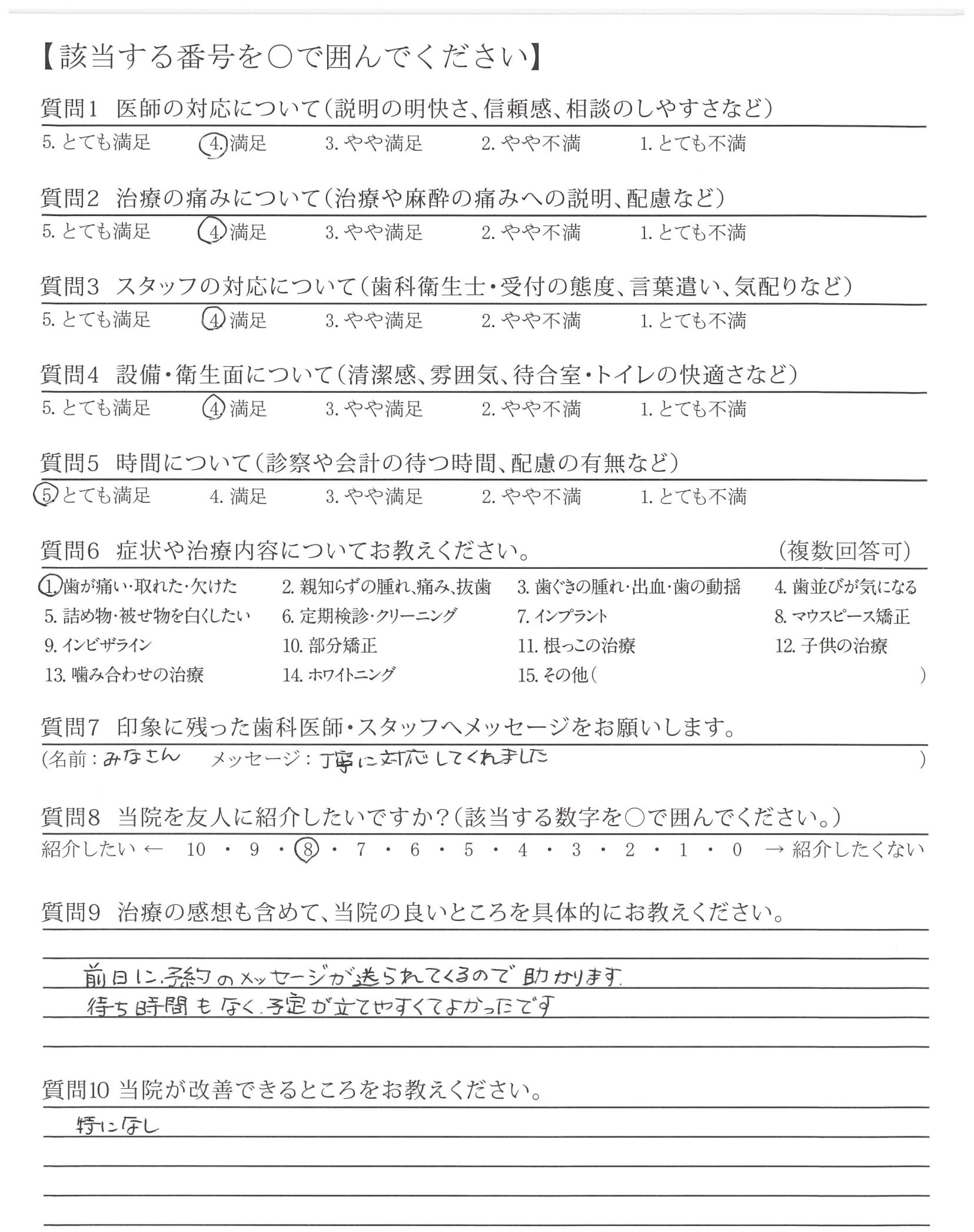 強いて言えばですが、もう少し治療の進め方(流れ)の説明があるとより安心できるかと思います。