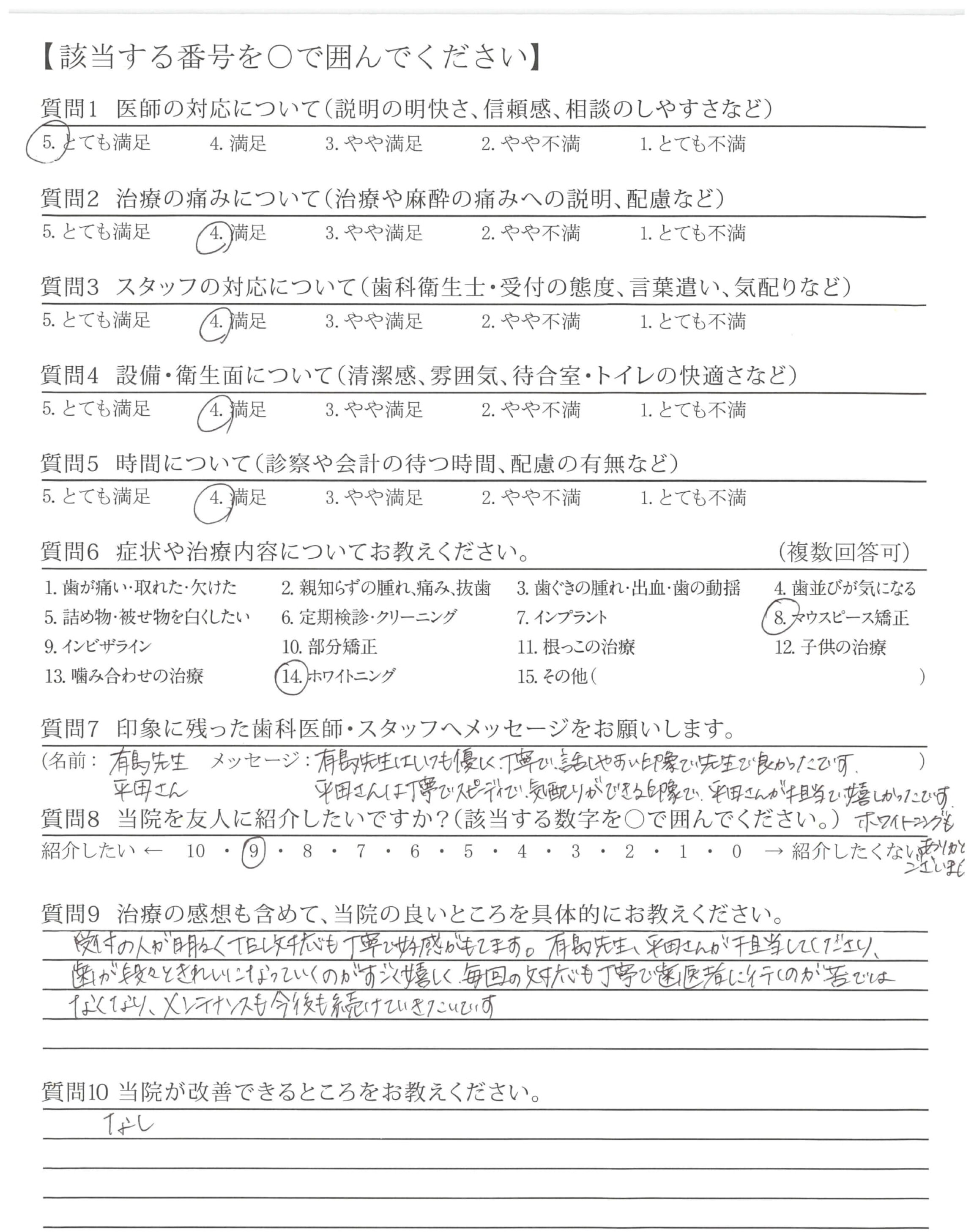 平田さんは丁寧でスピーディで、気配りができる印象で、平田さんが担当で嬉しかったです。ホワイトニングもありがとうございました。