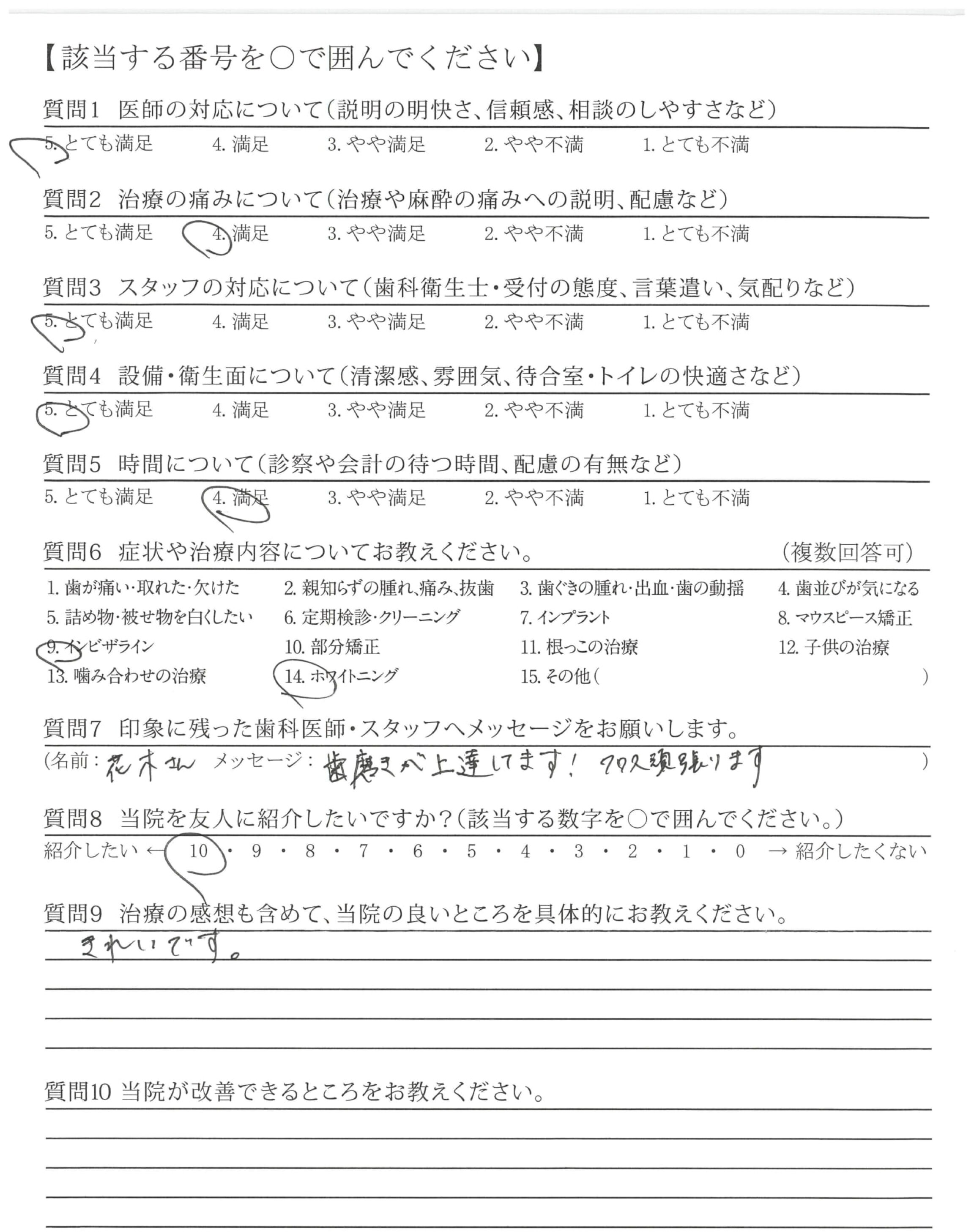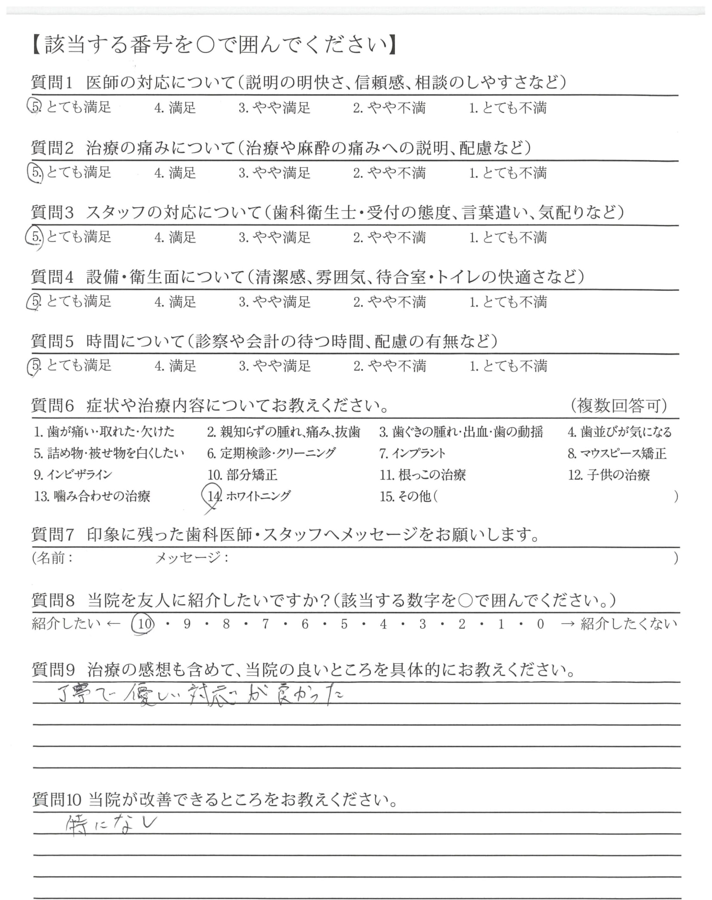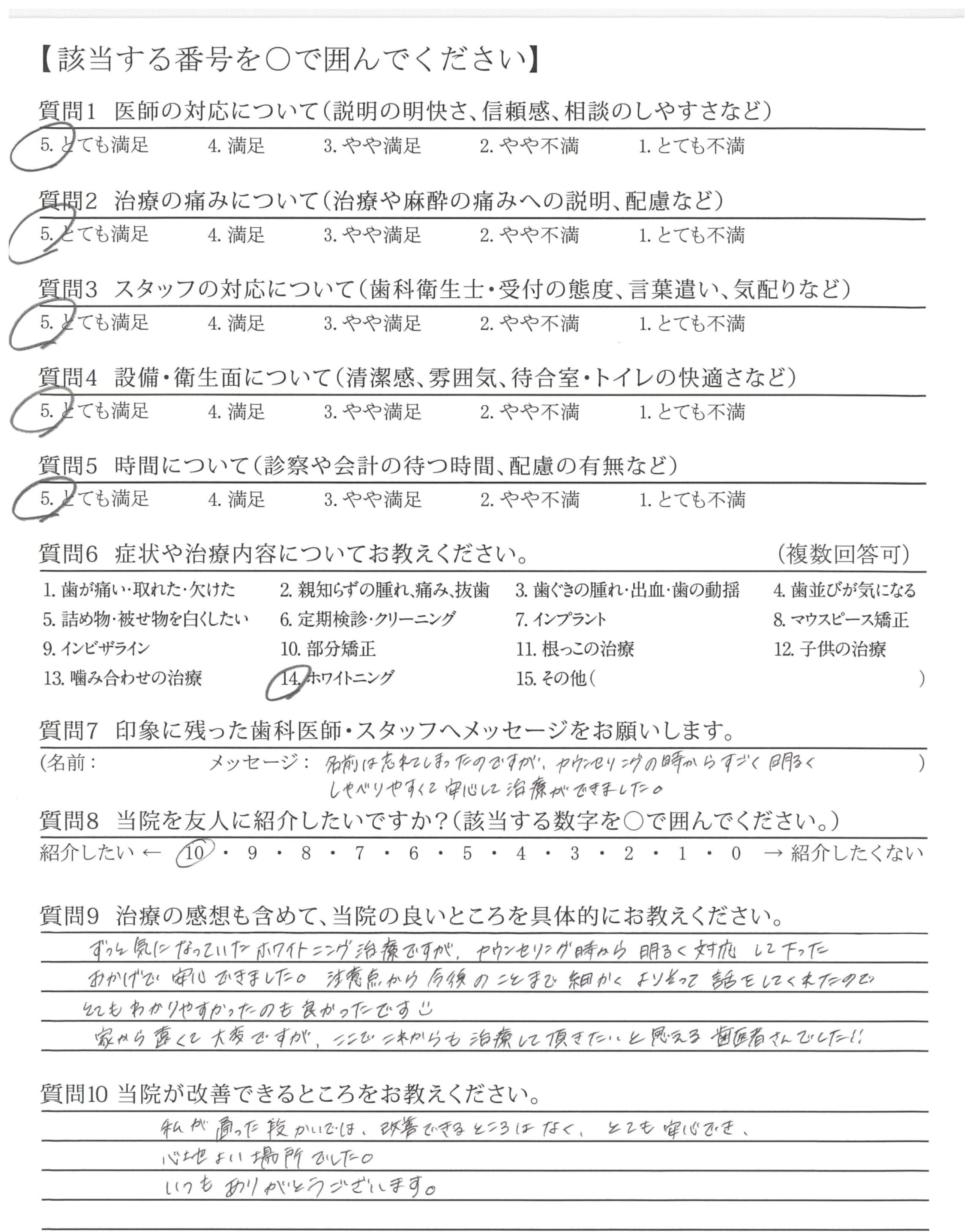カウンセリングの時からすごく明るくしゃべりやすくて安心して治療ができました。