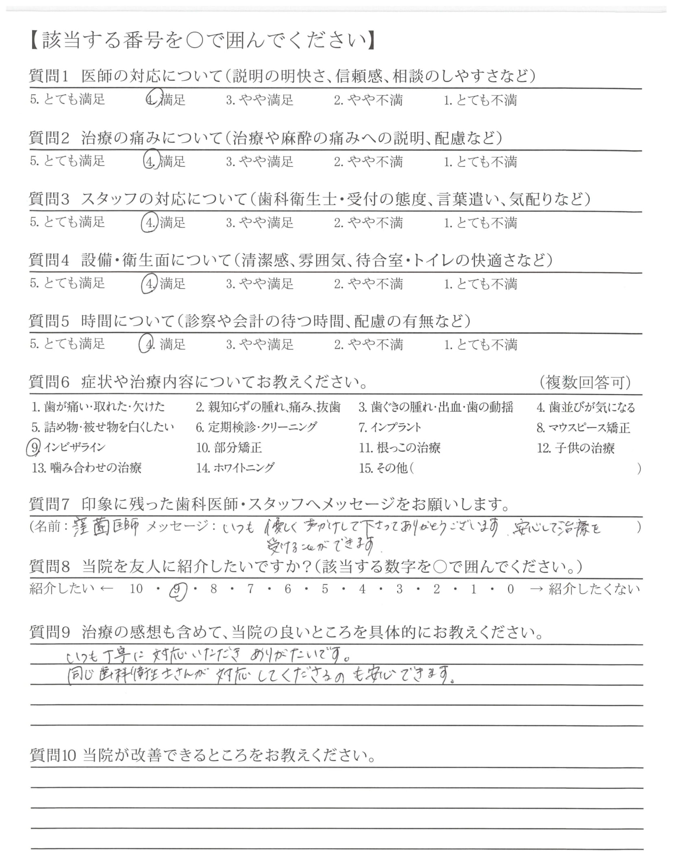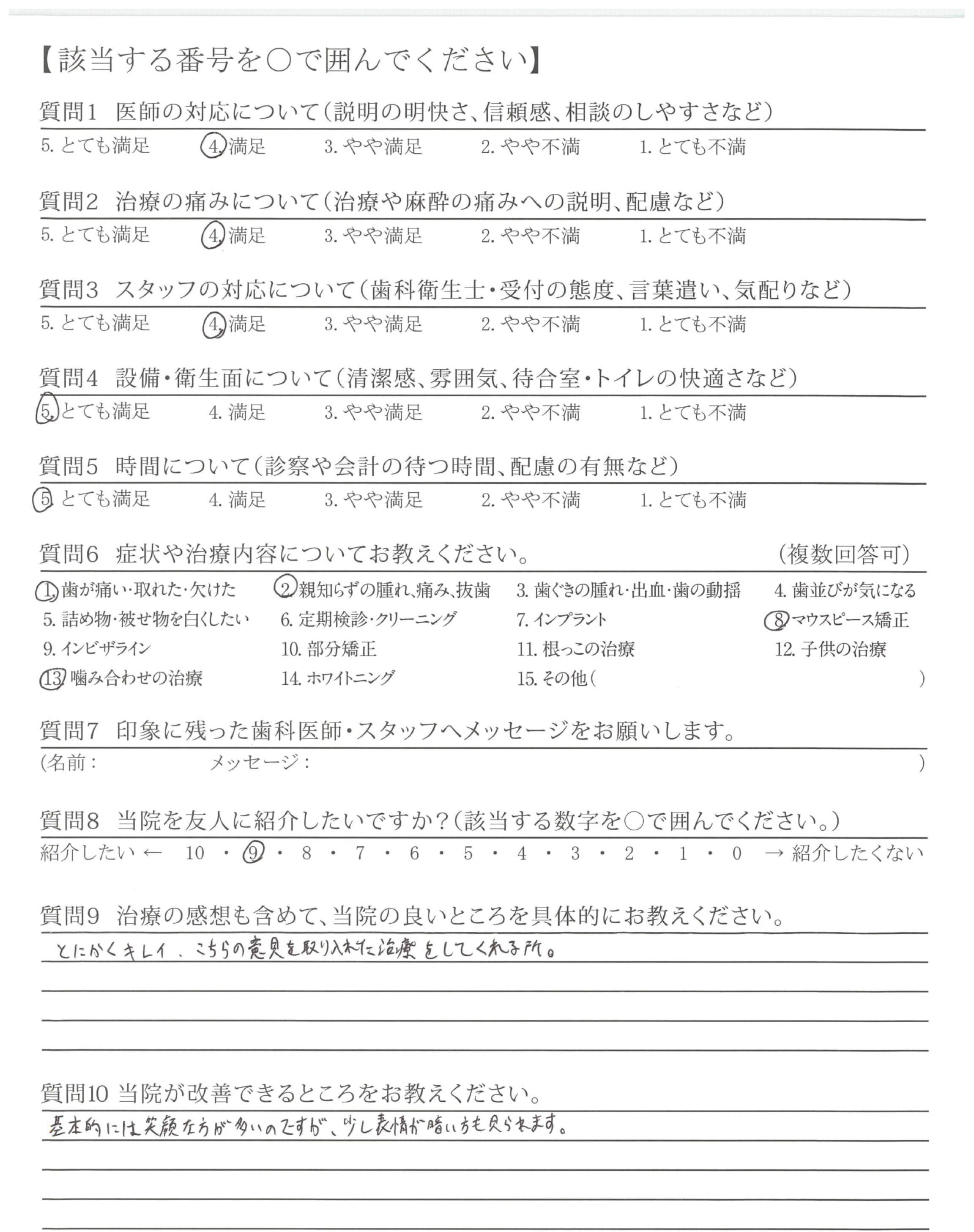 | 歯科医師の対応 | ![]() ![]() ![]() ![]() 4.60 |