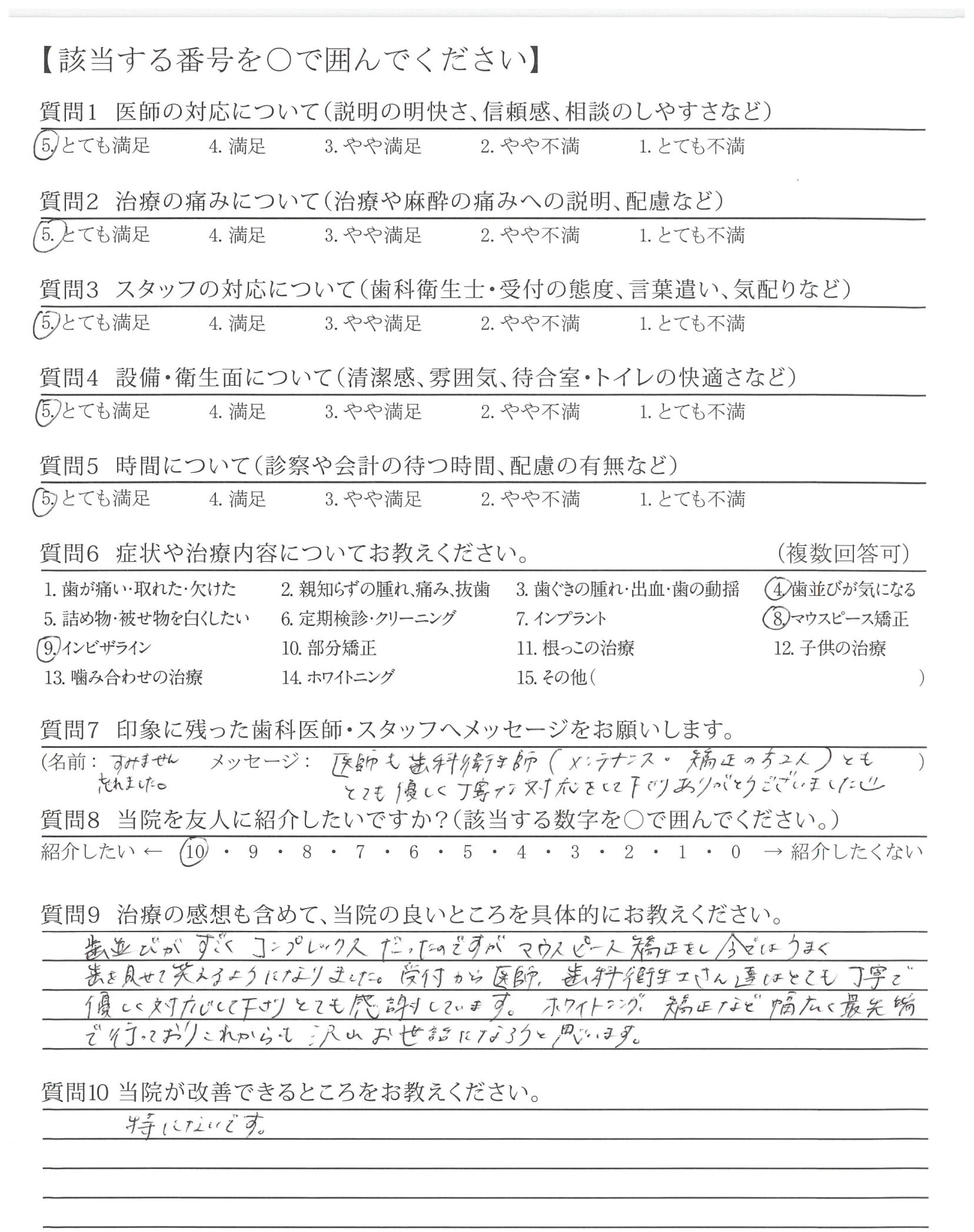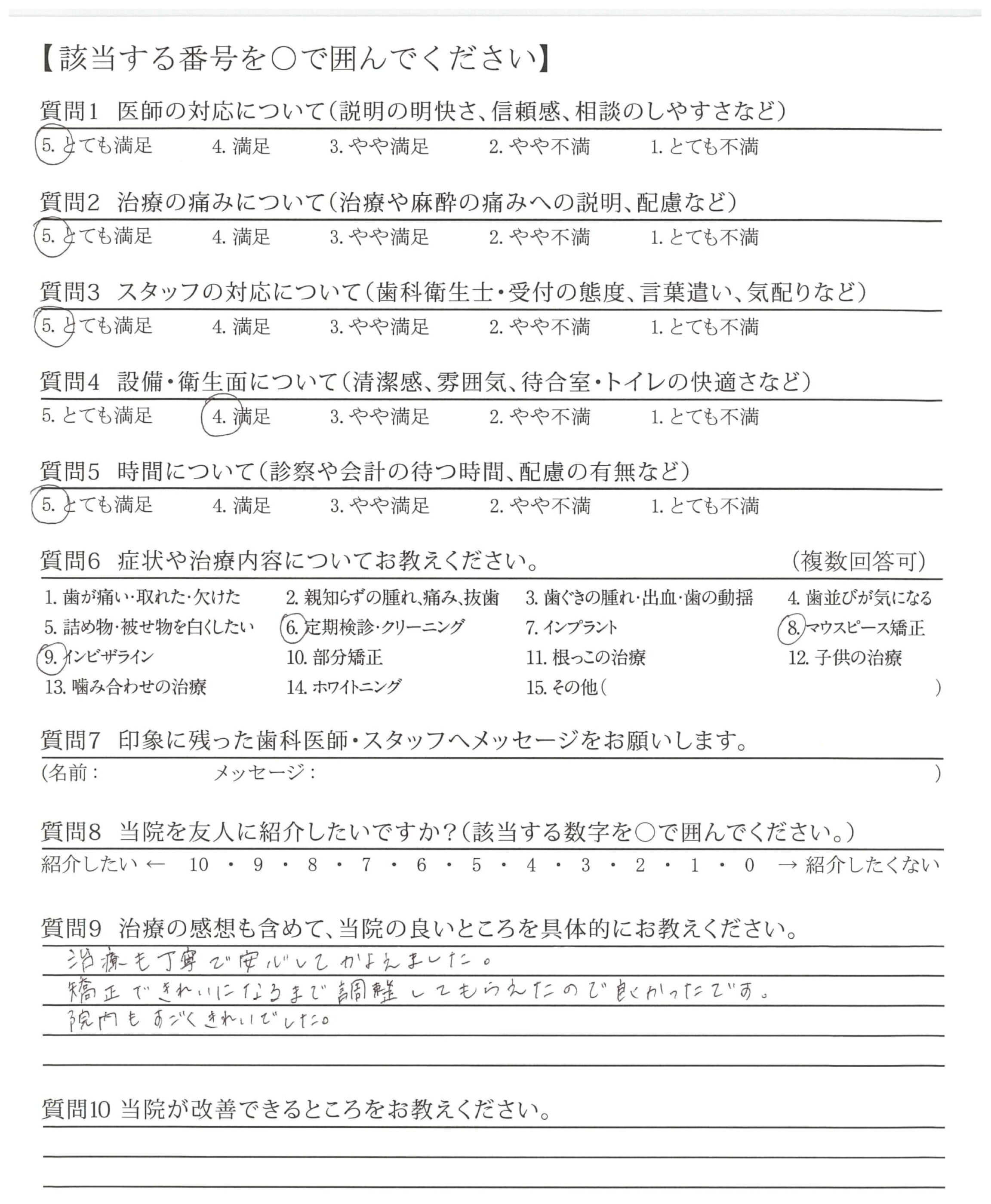 ・矯正では、ちょっとした気になる箇所を、そのままにせず、何回も作り直しして頂き、安心できた