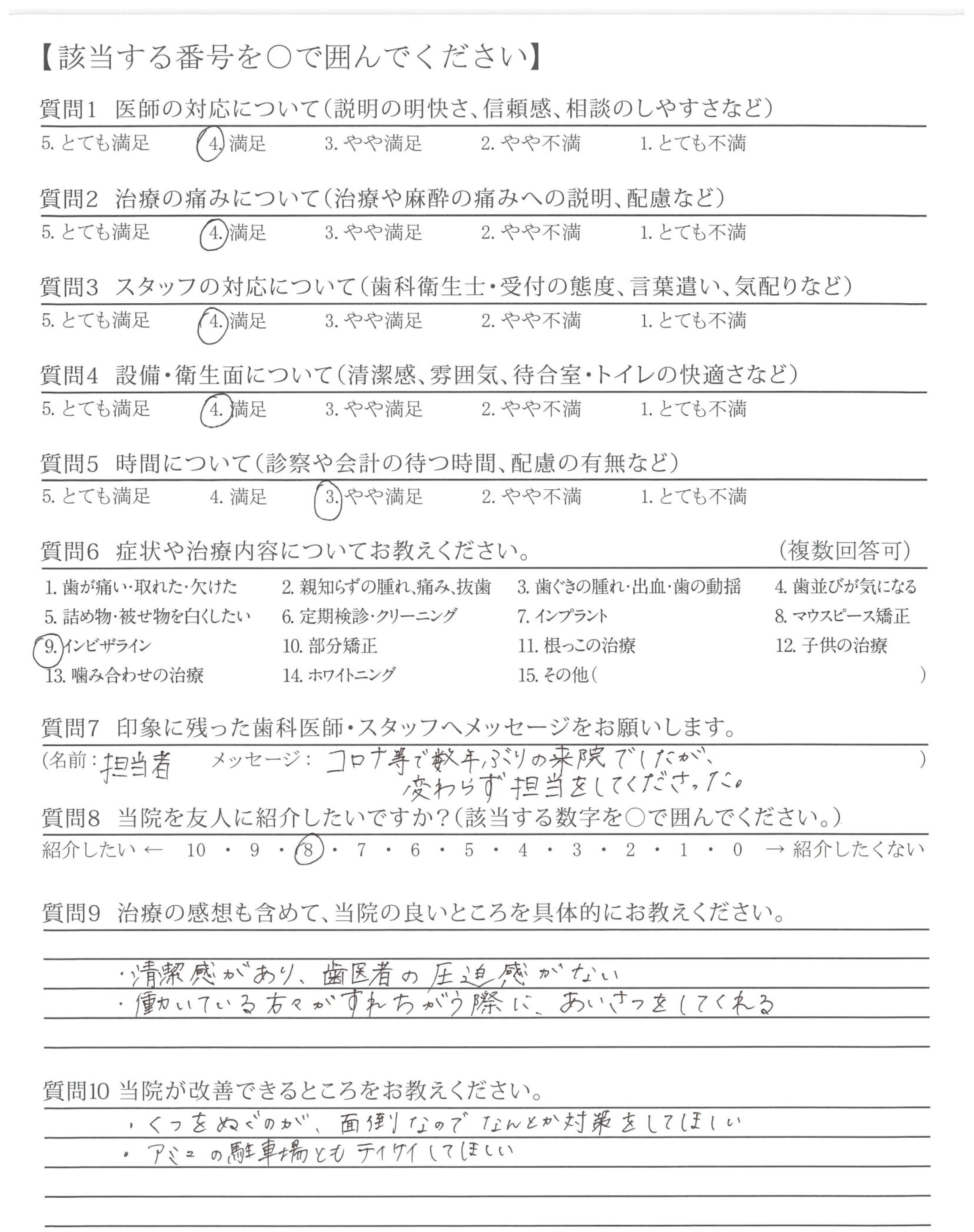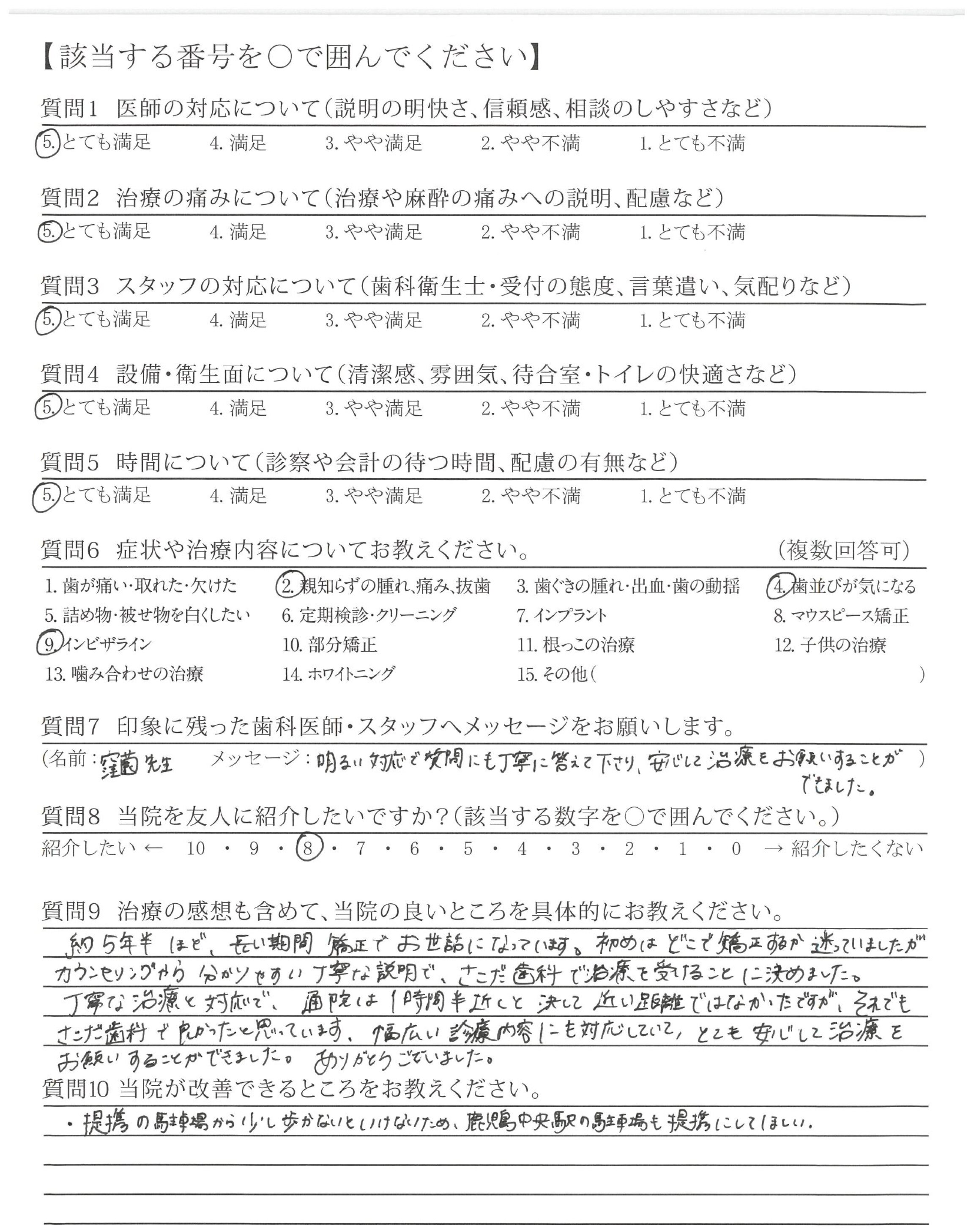 コロナ等で数年ぶりの来院でしたが、変わらず担当をしてくださった。