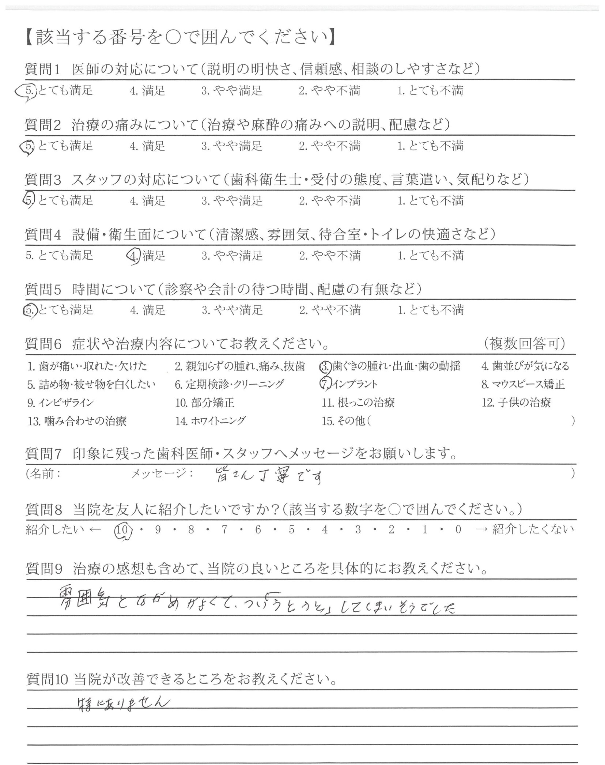 嫌いだった歯科のイメージが変わり早くに治療に行けばよかったと思っています