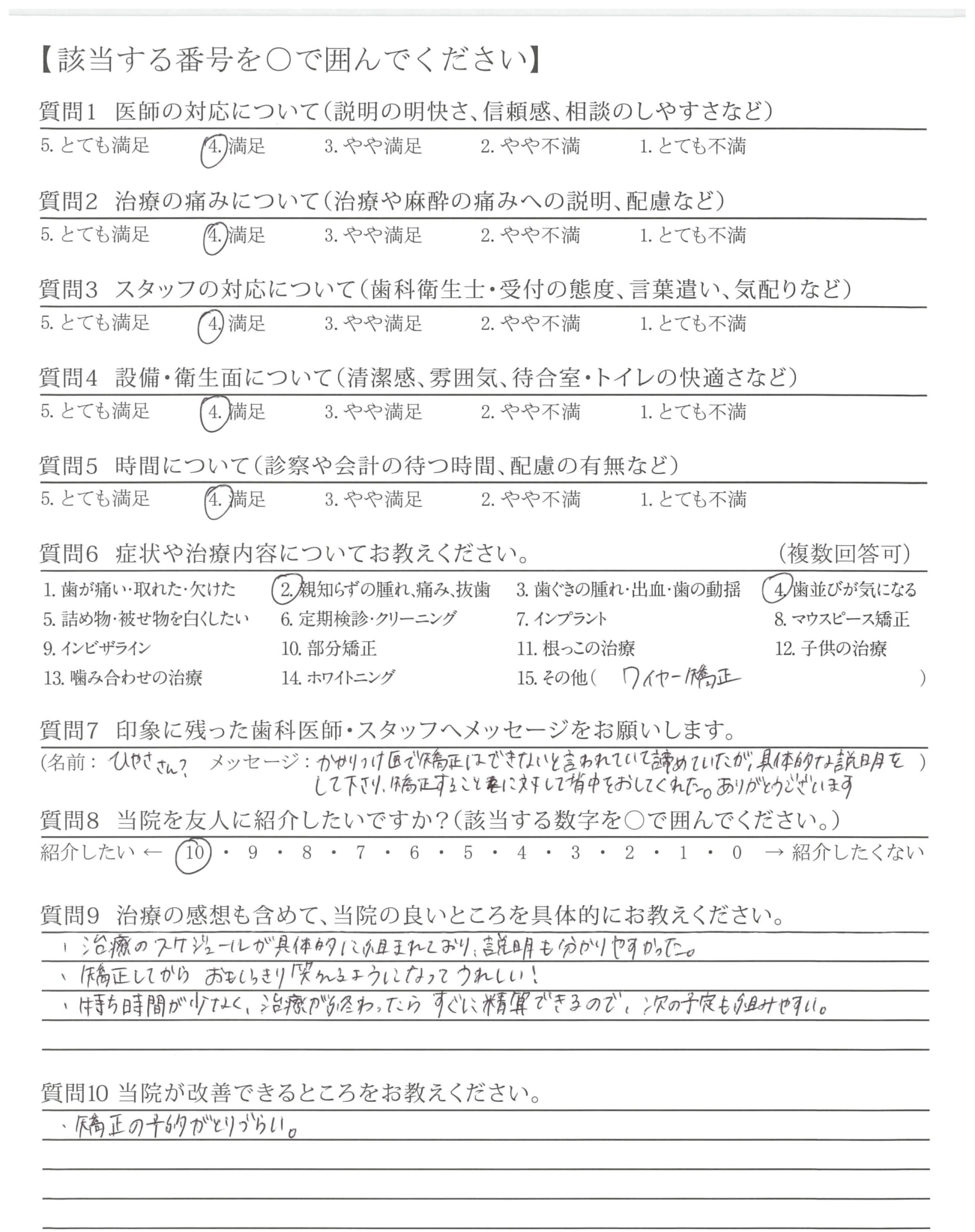 ※治療に満足しています。ありがとうございます。