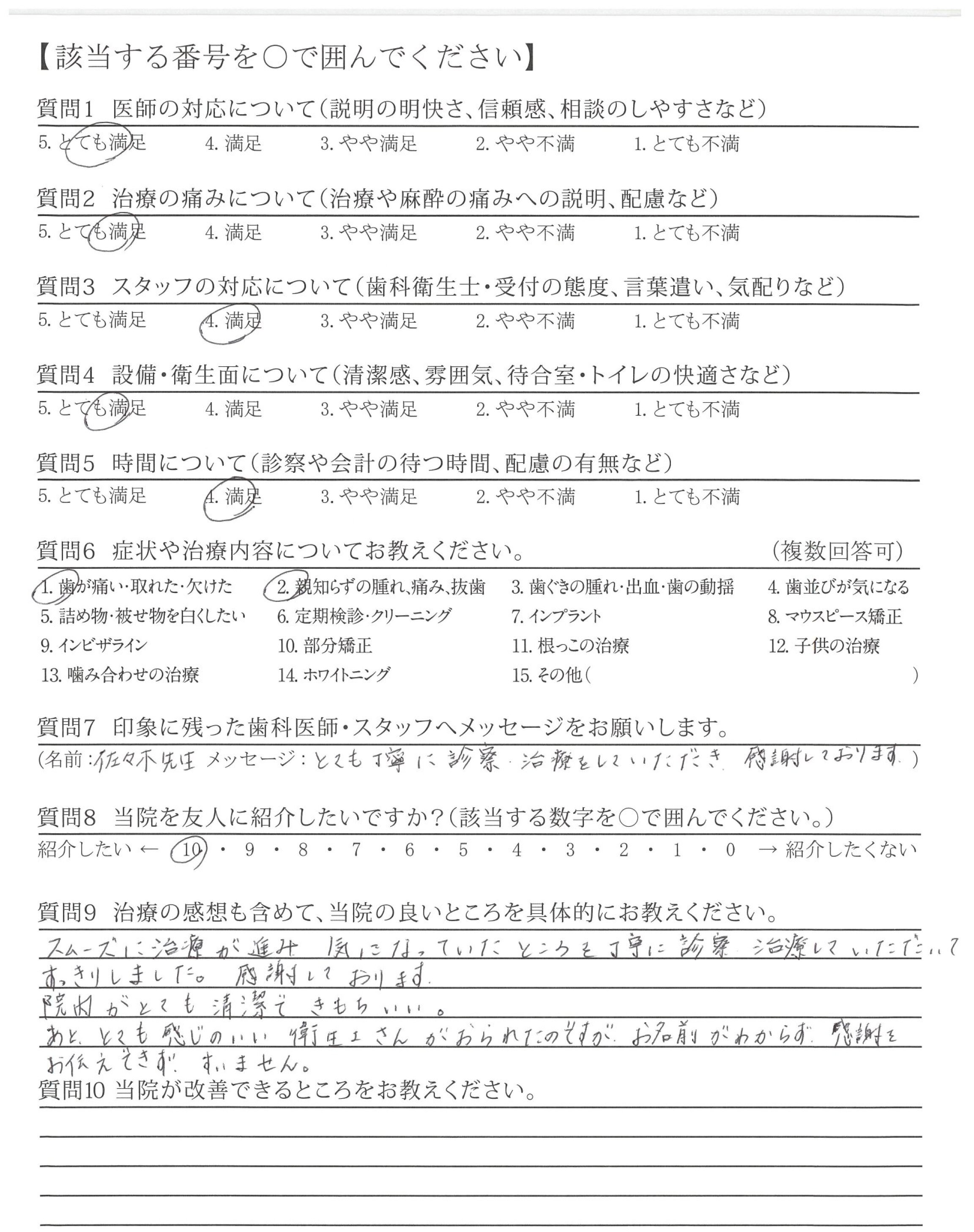 不安になる程治療が早く(親知らずの抜歯・被せ物を新しくする)他院で面倒がられていたので良い意味で戸惑いが大きかったです。