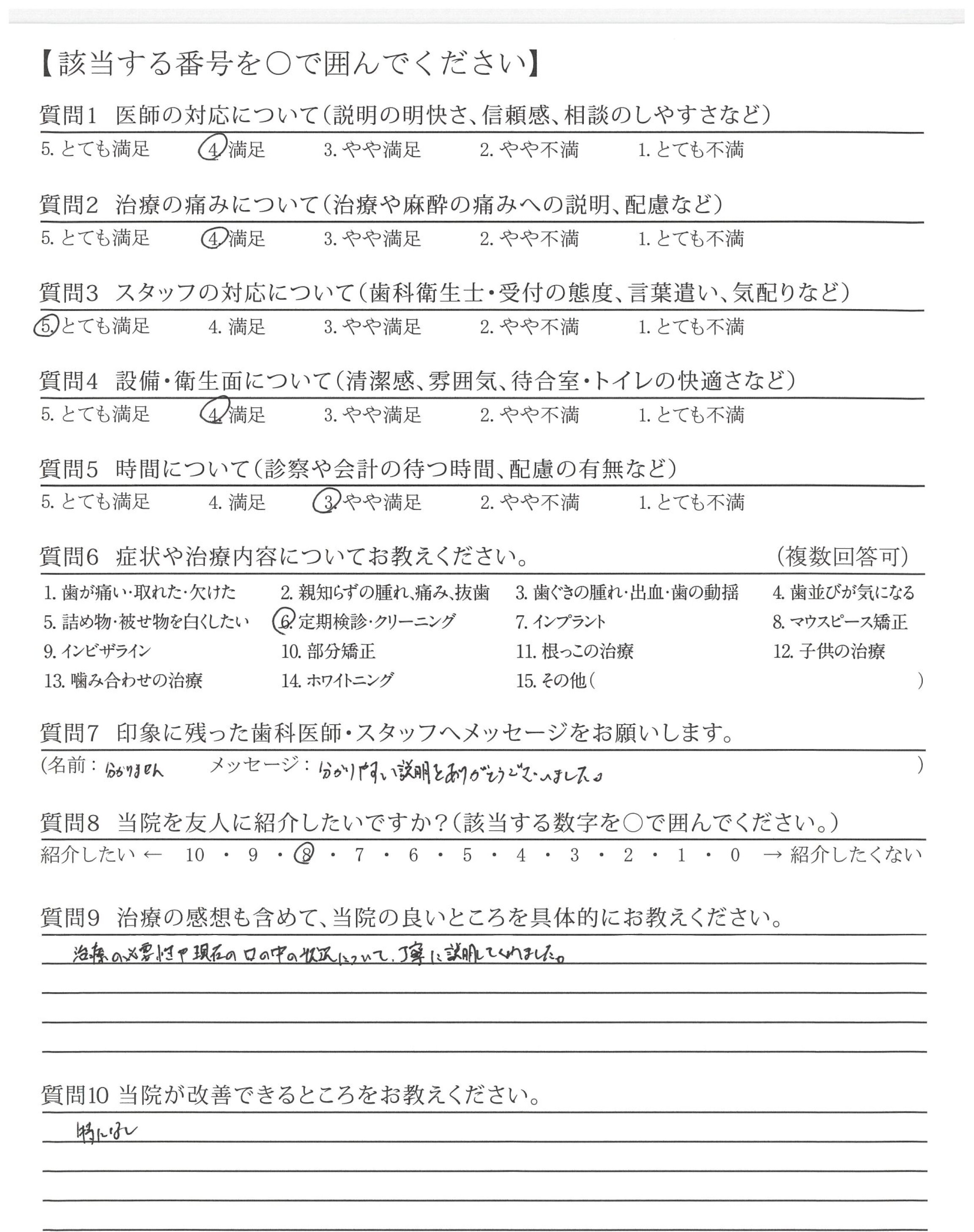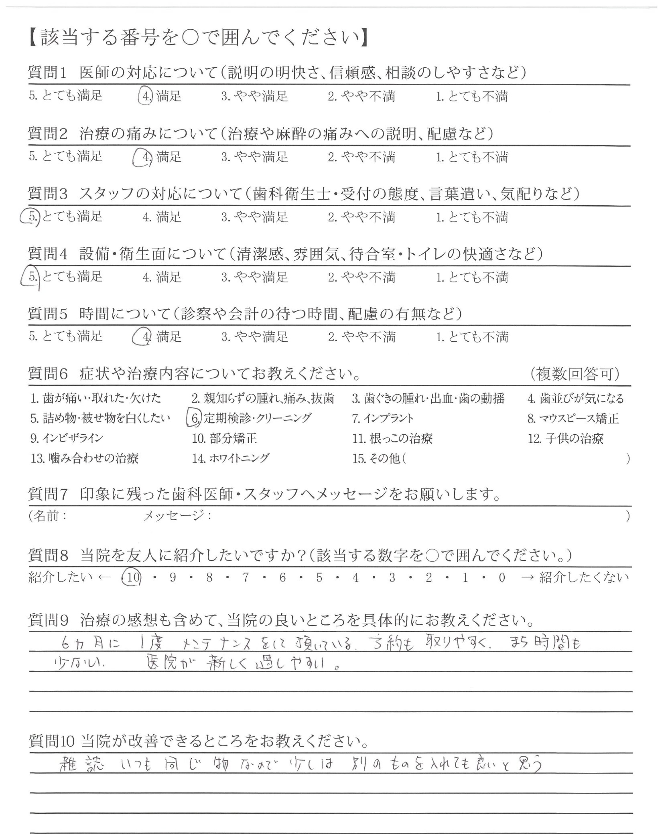 ・治療の経験はなく定期検診のみですが、いつもていねいにクリーニングしていただき感謝しています。