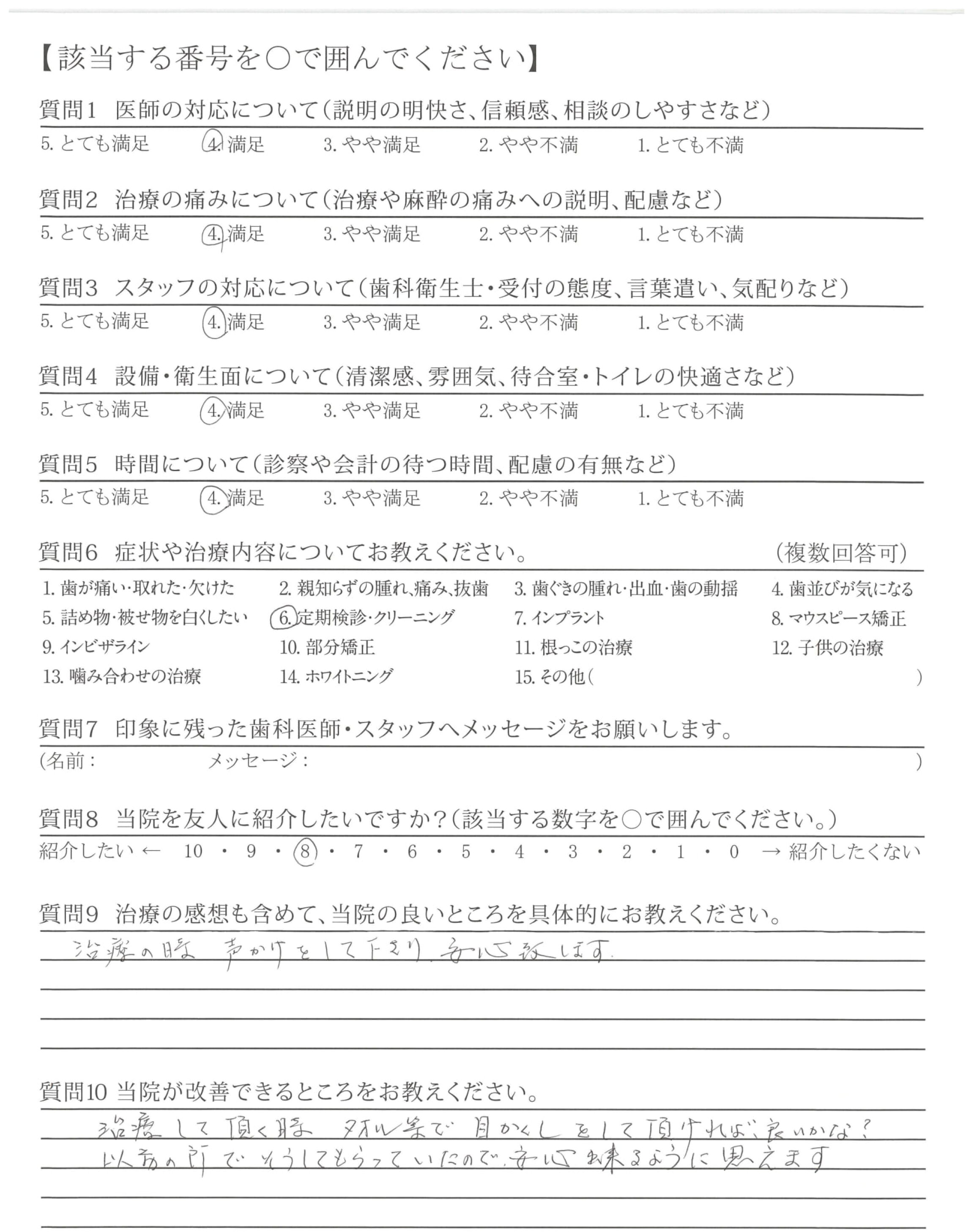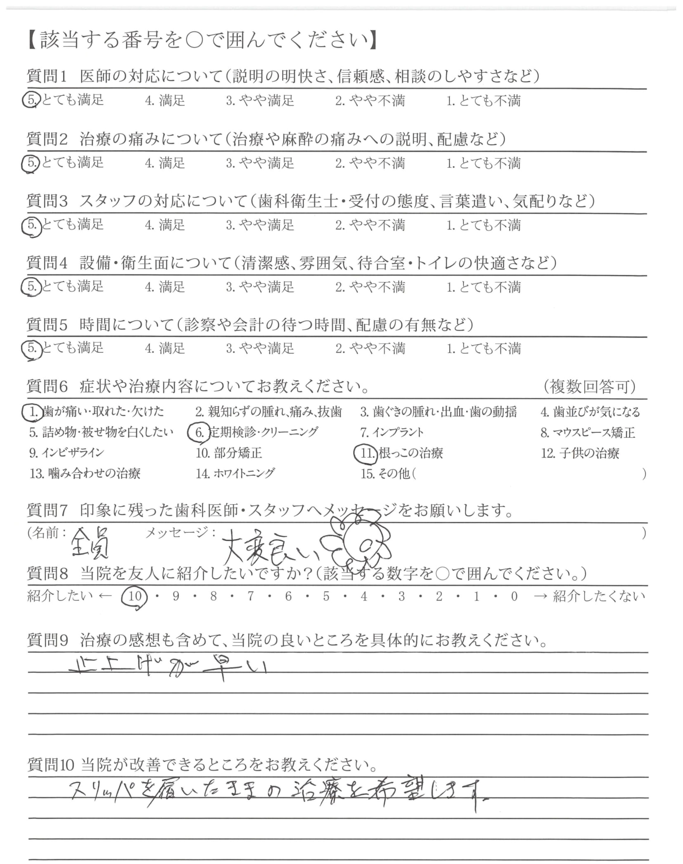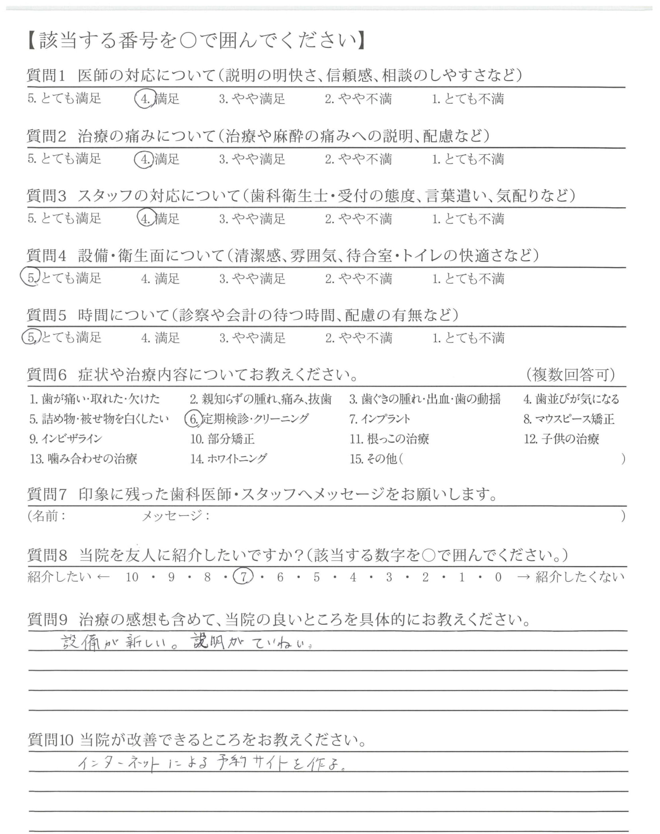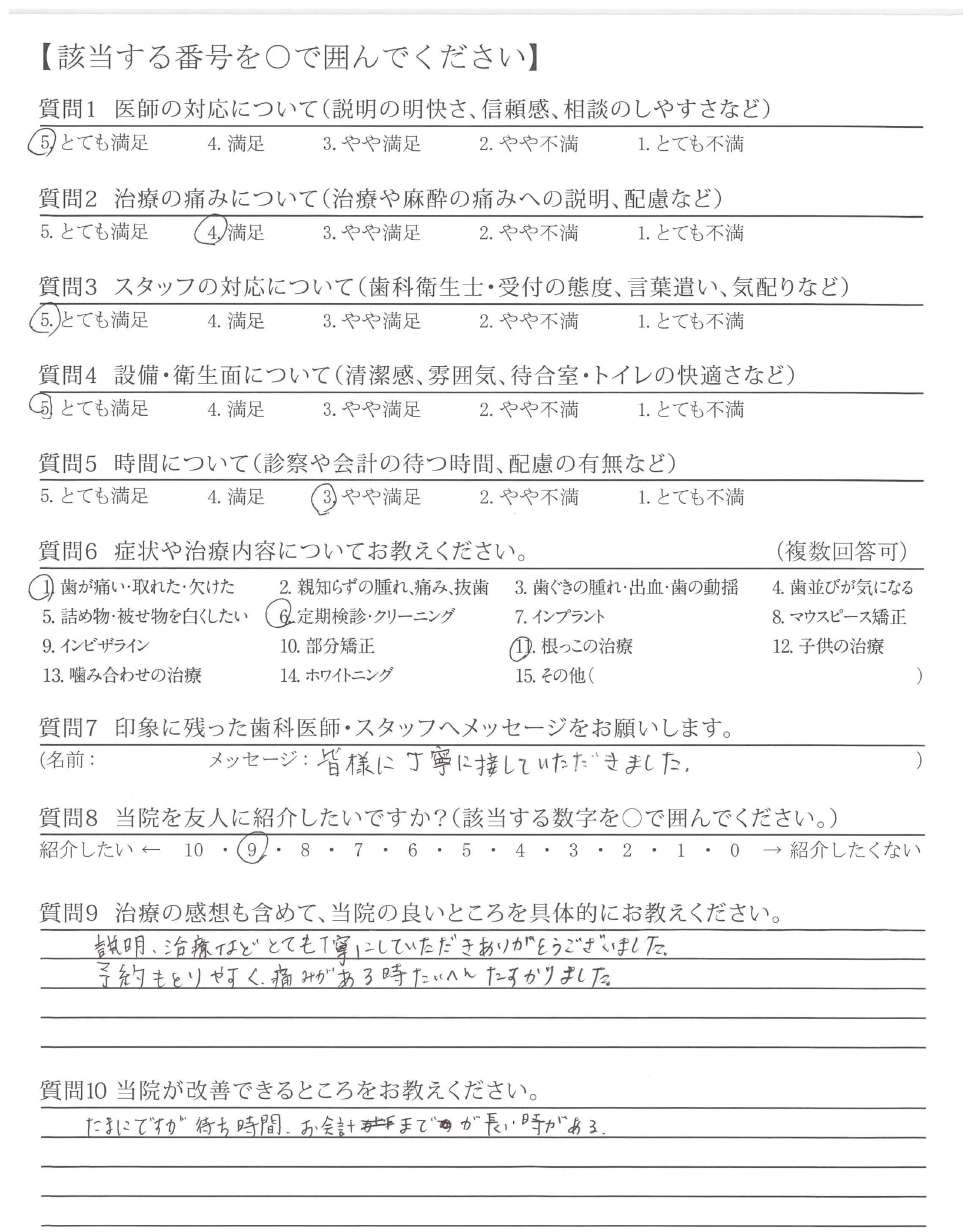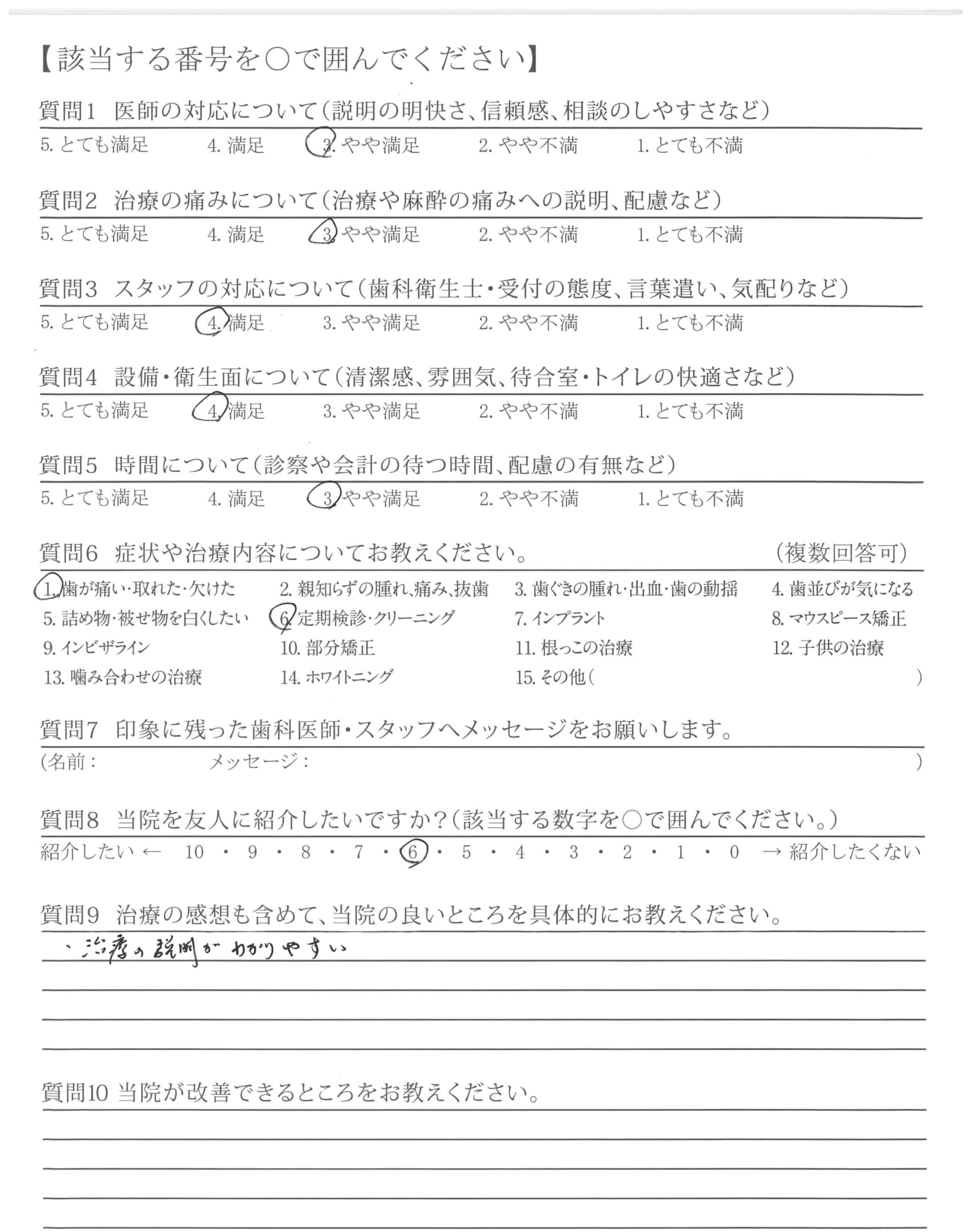 説明、治療などとても丁寧にしていただきありがとうございました。