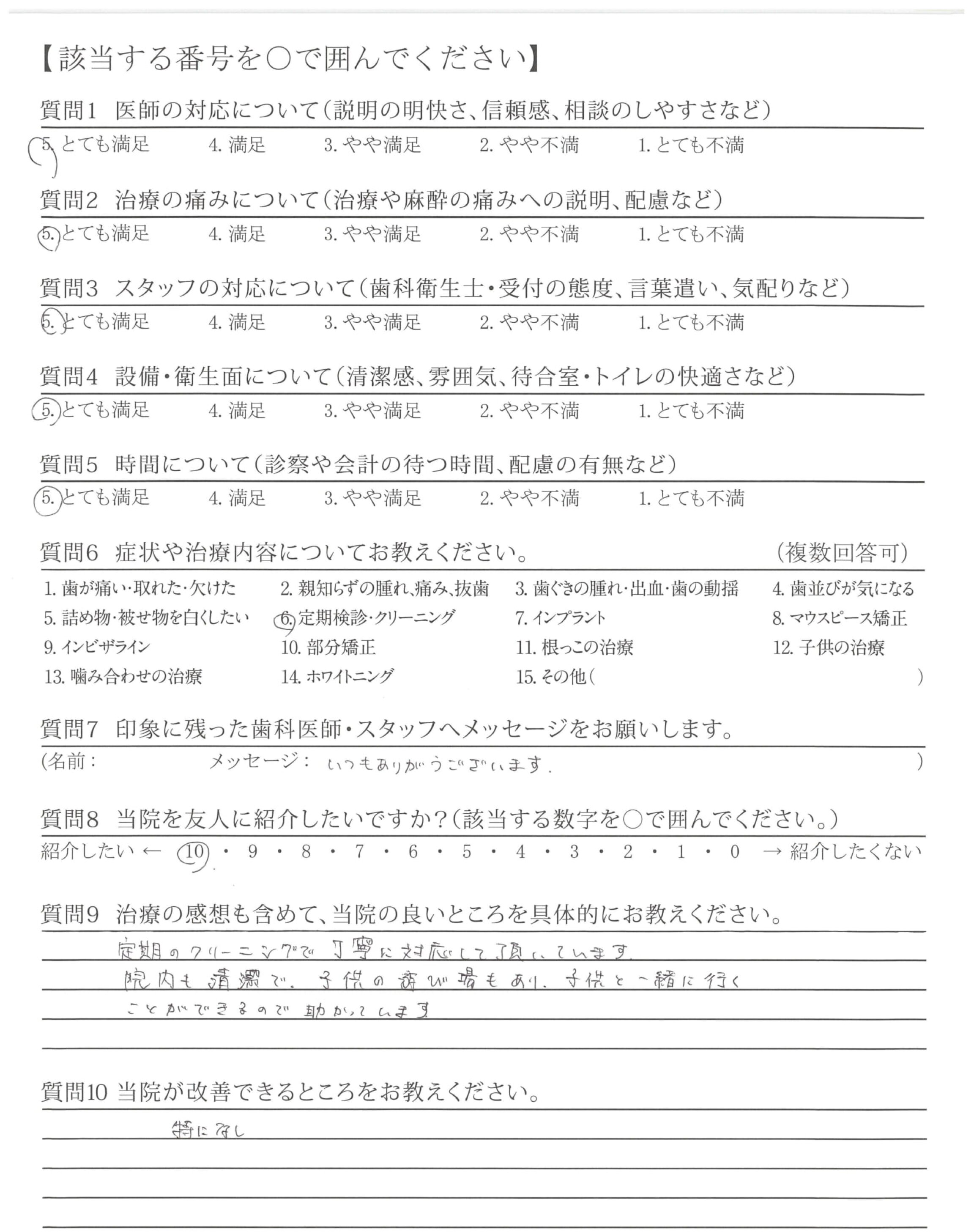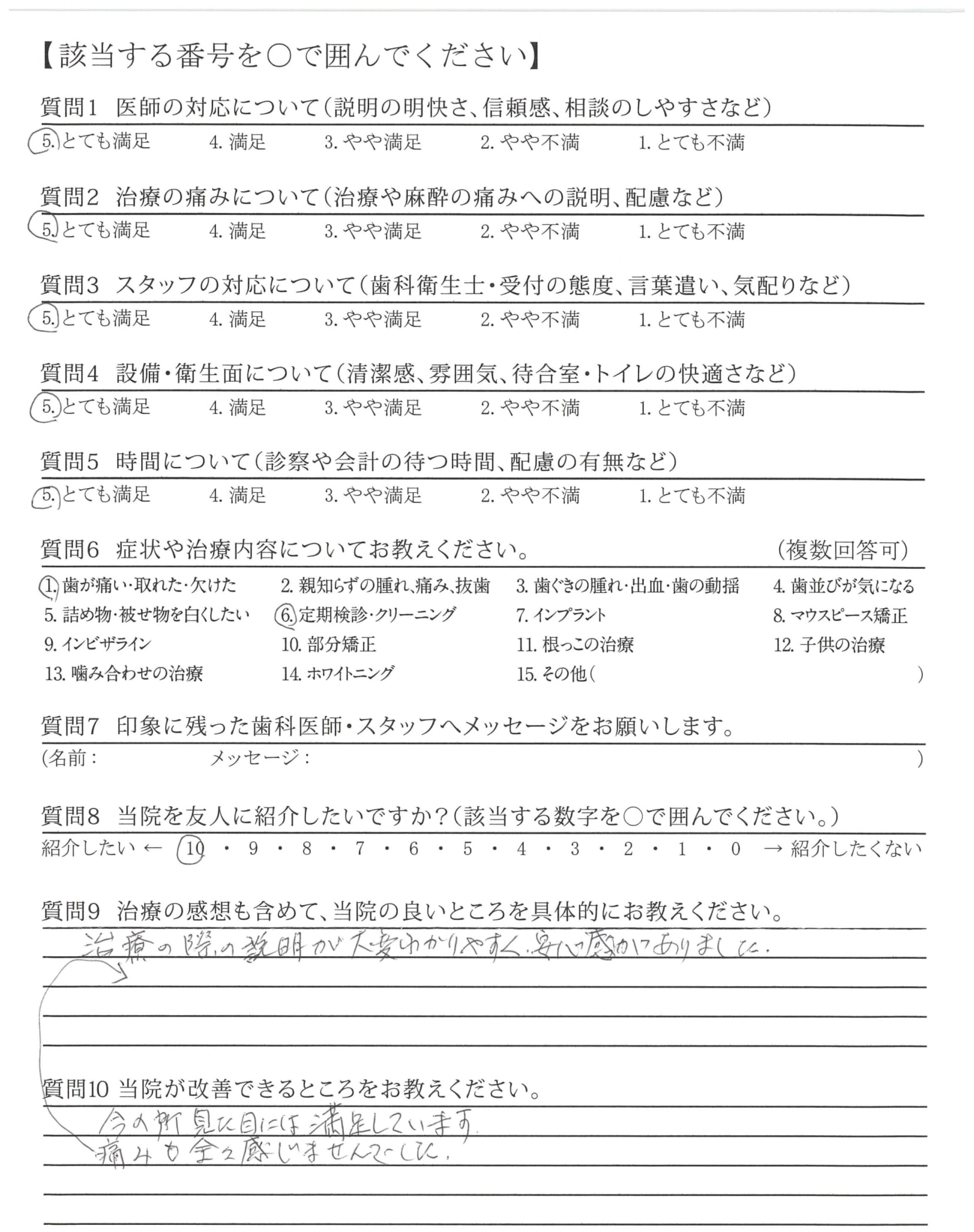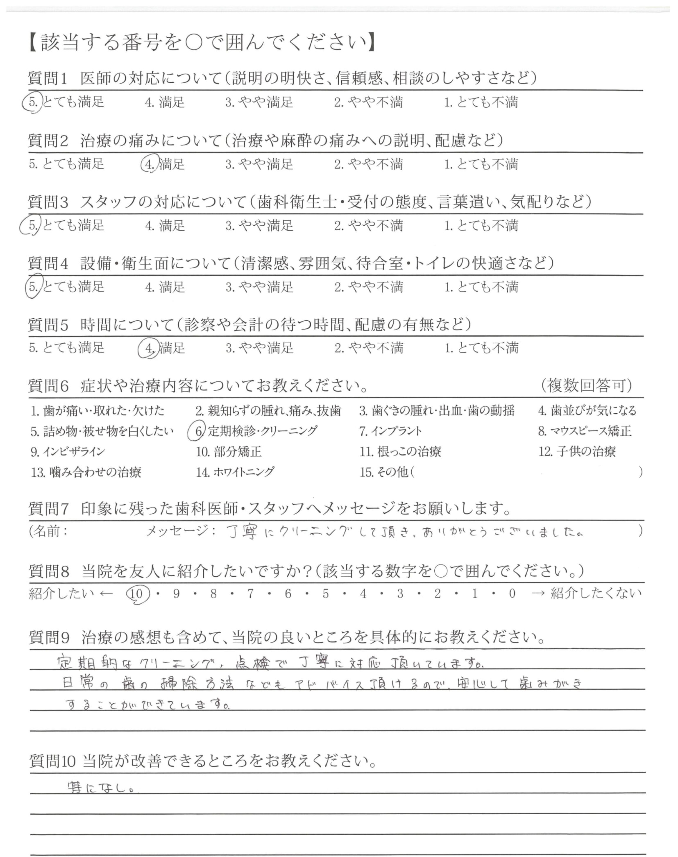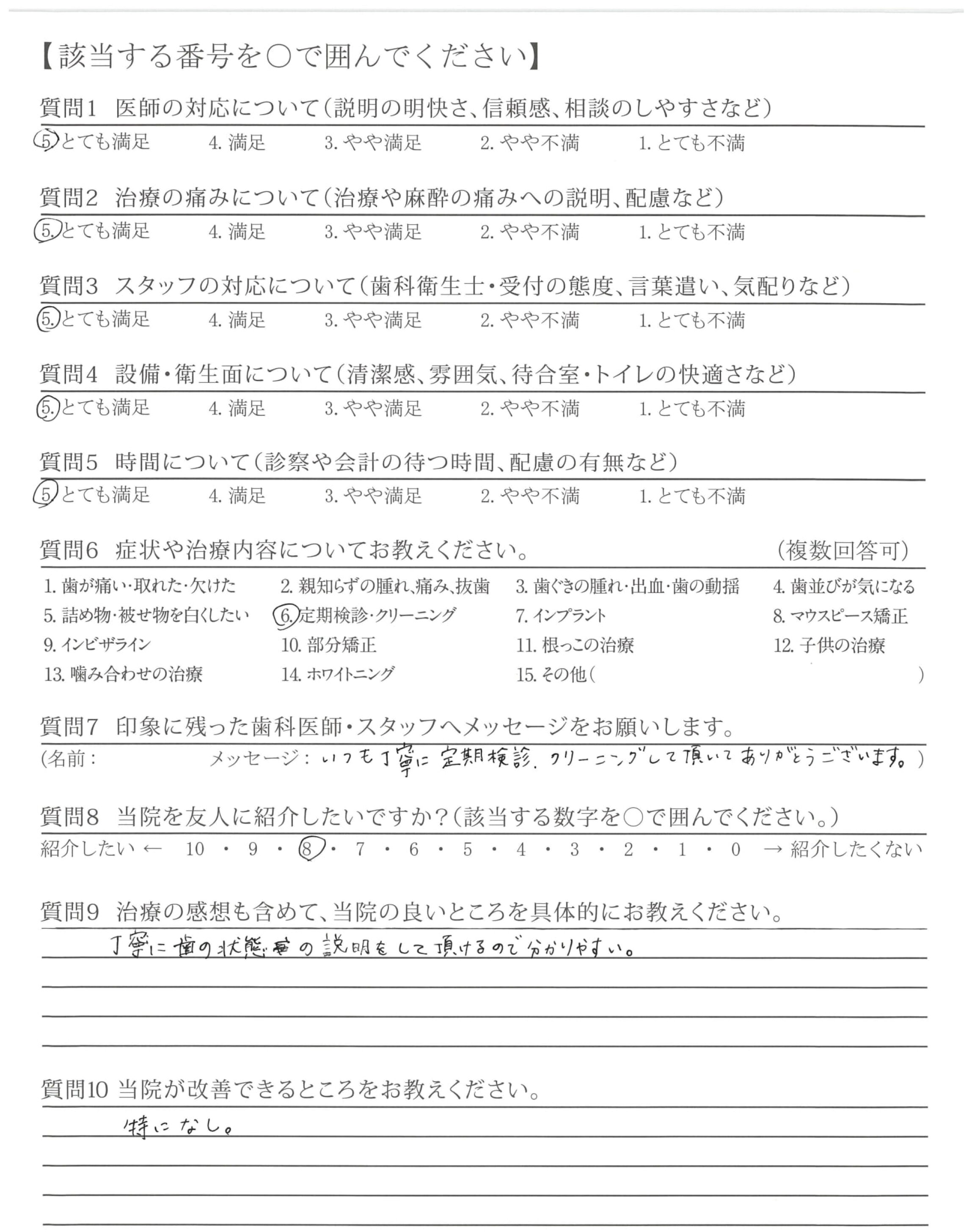 いつも丁寧に定期検診、クリーニングして頂いてありがとうございます。
