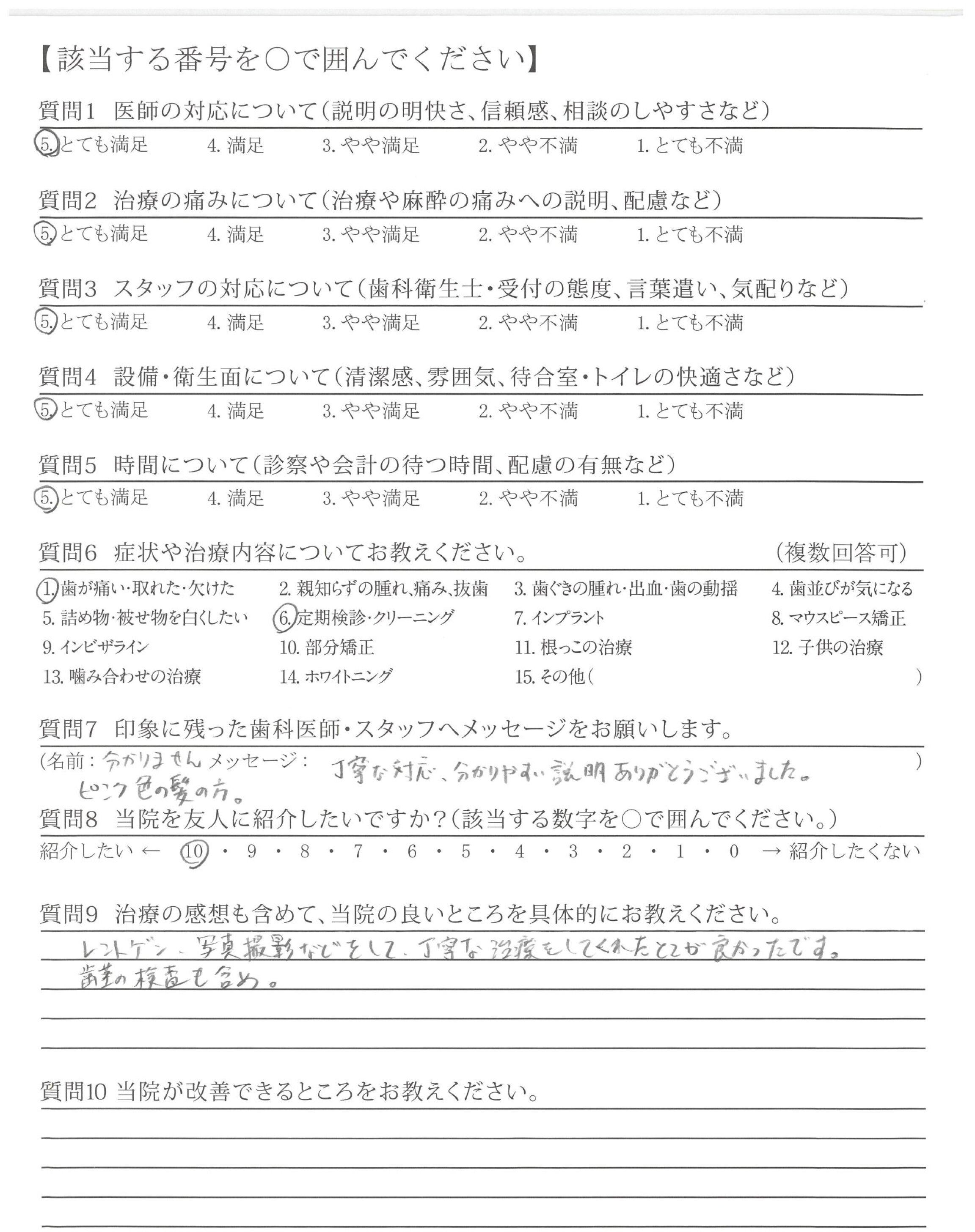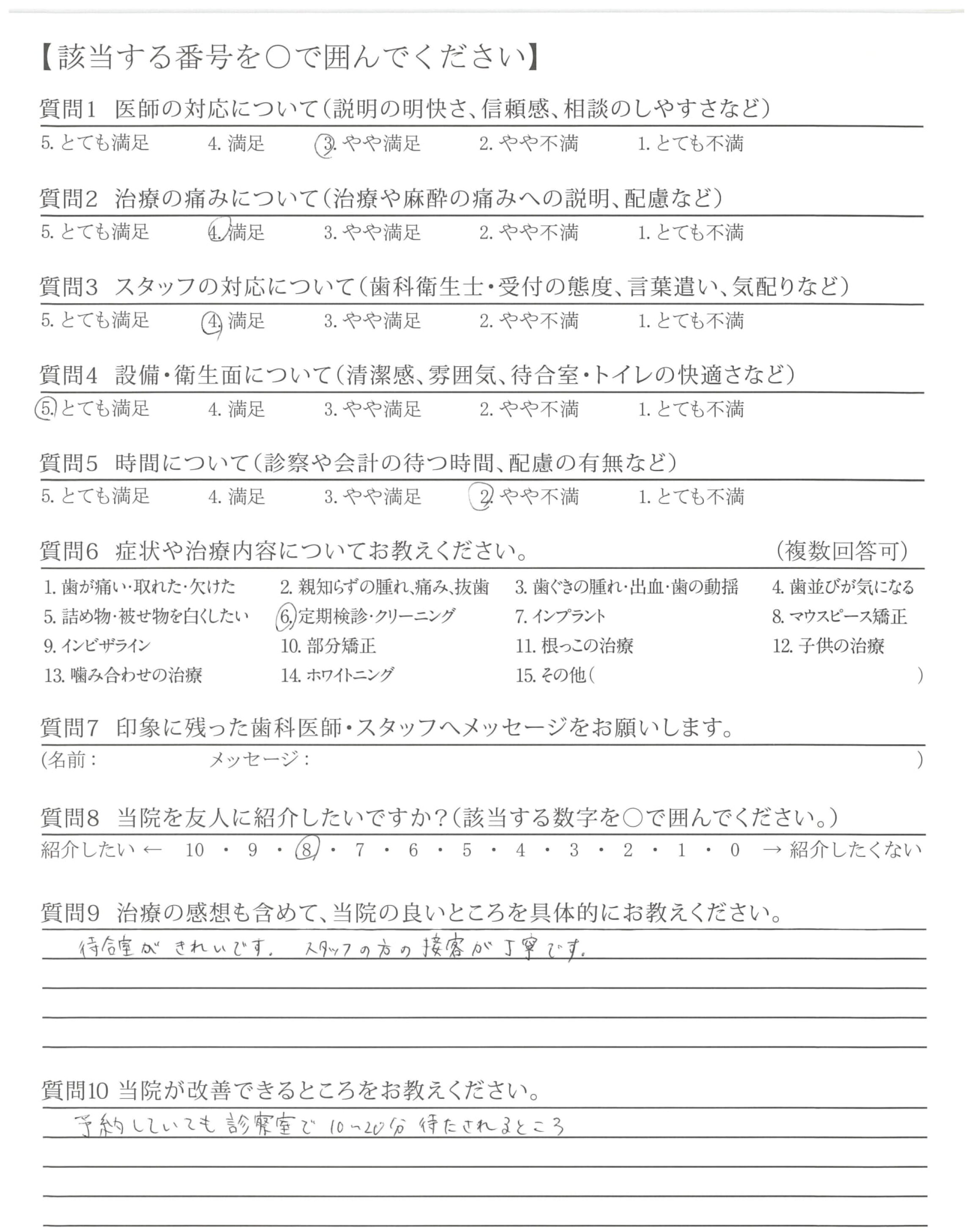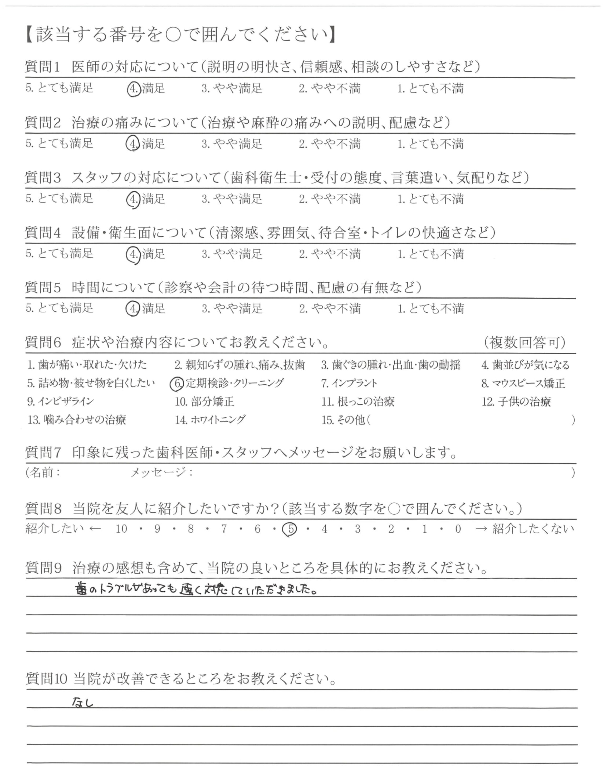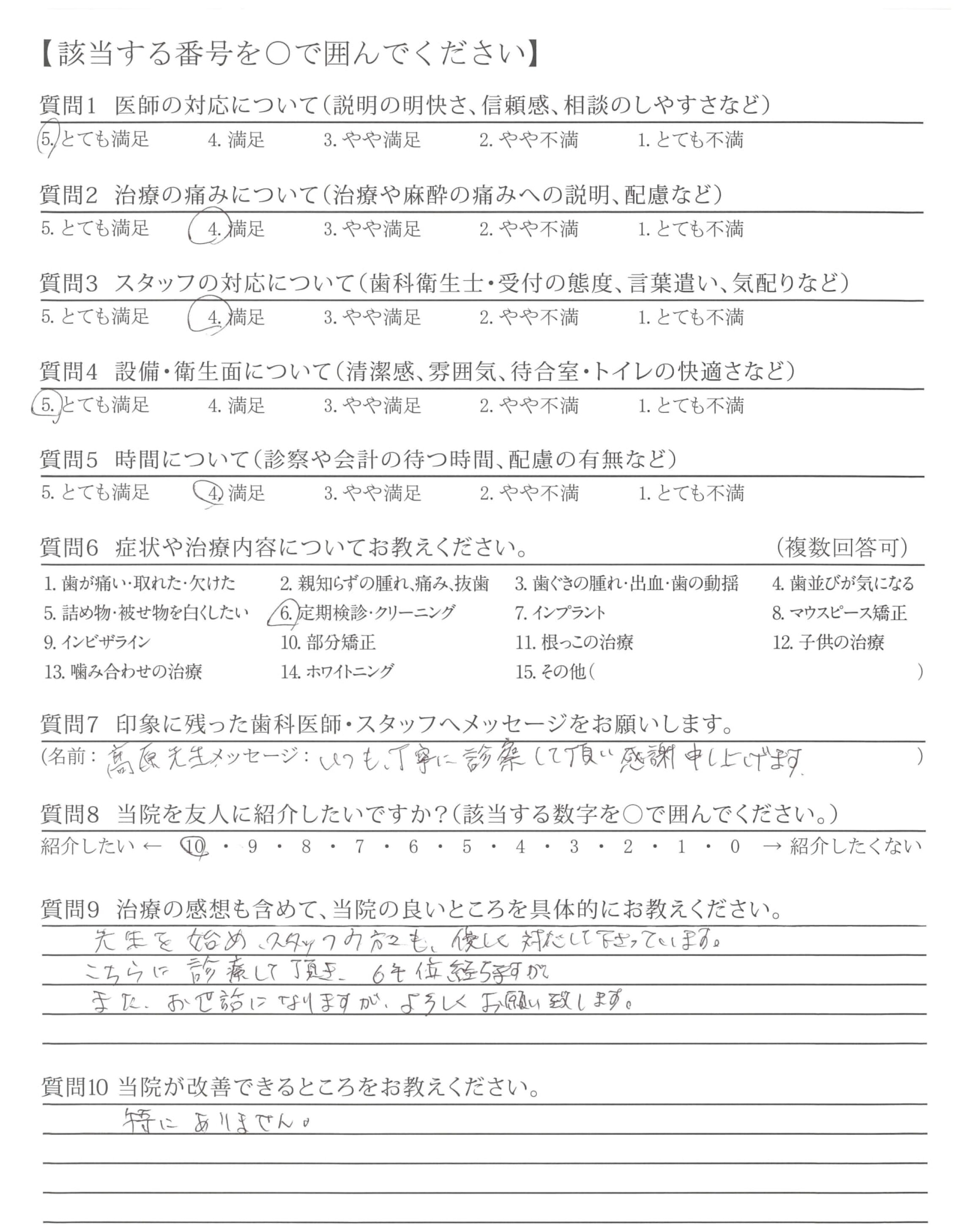 いつも丁寧に定期検診、クリーニングして頂いてありがとうございます。