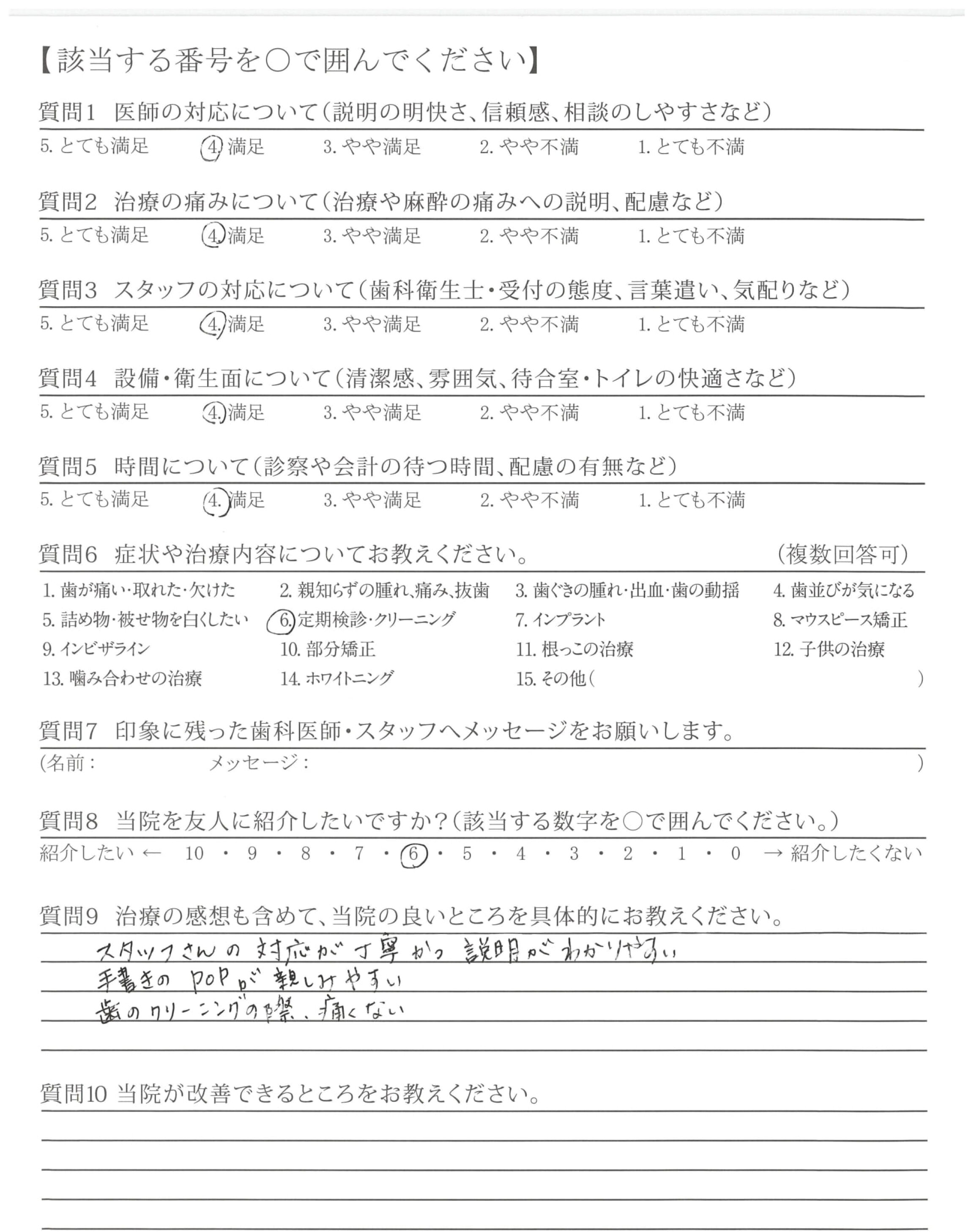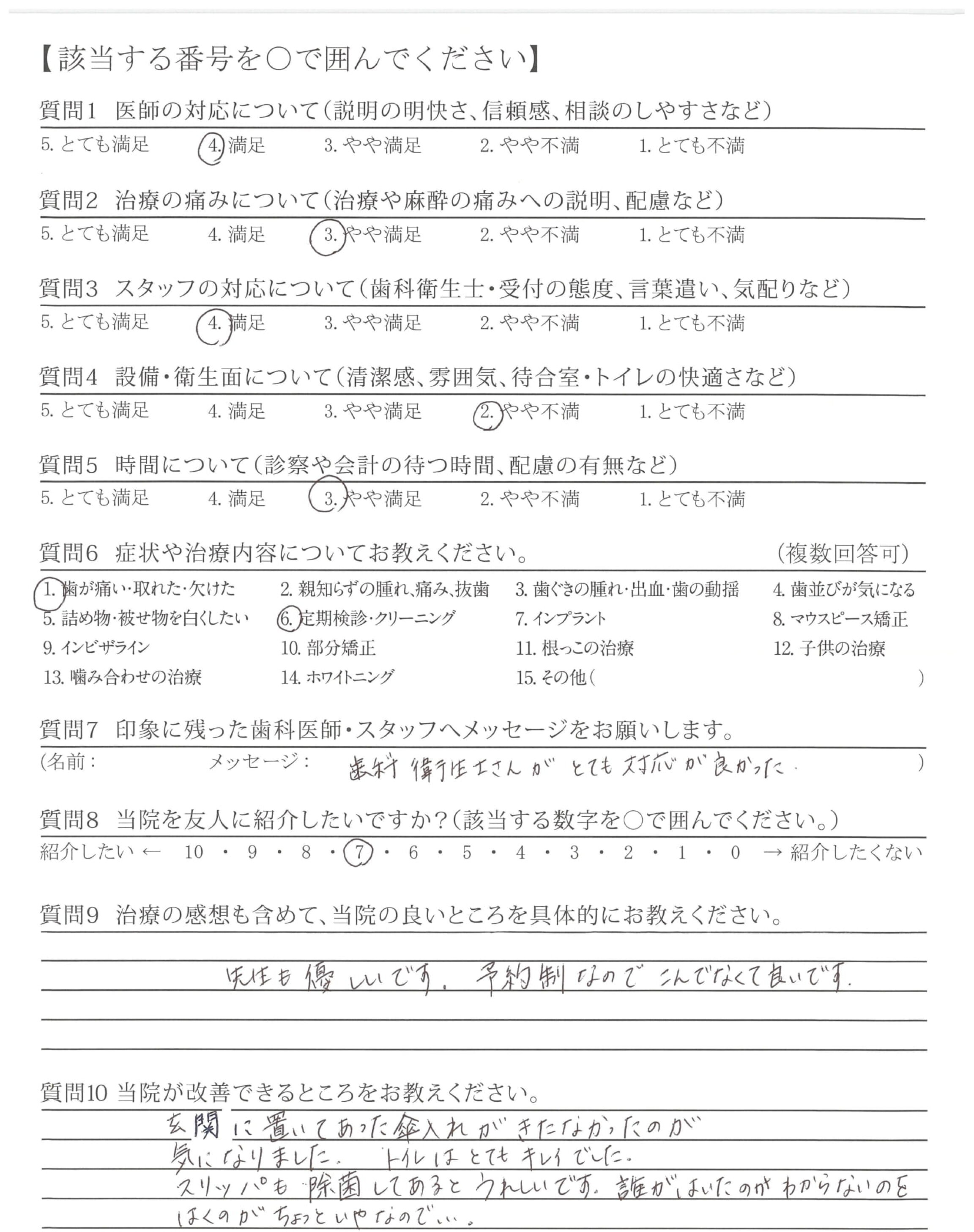 治療がていねいで、痛みも感じず安心でき、説明もわかりやすかったです。