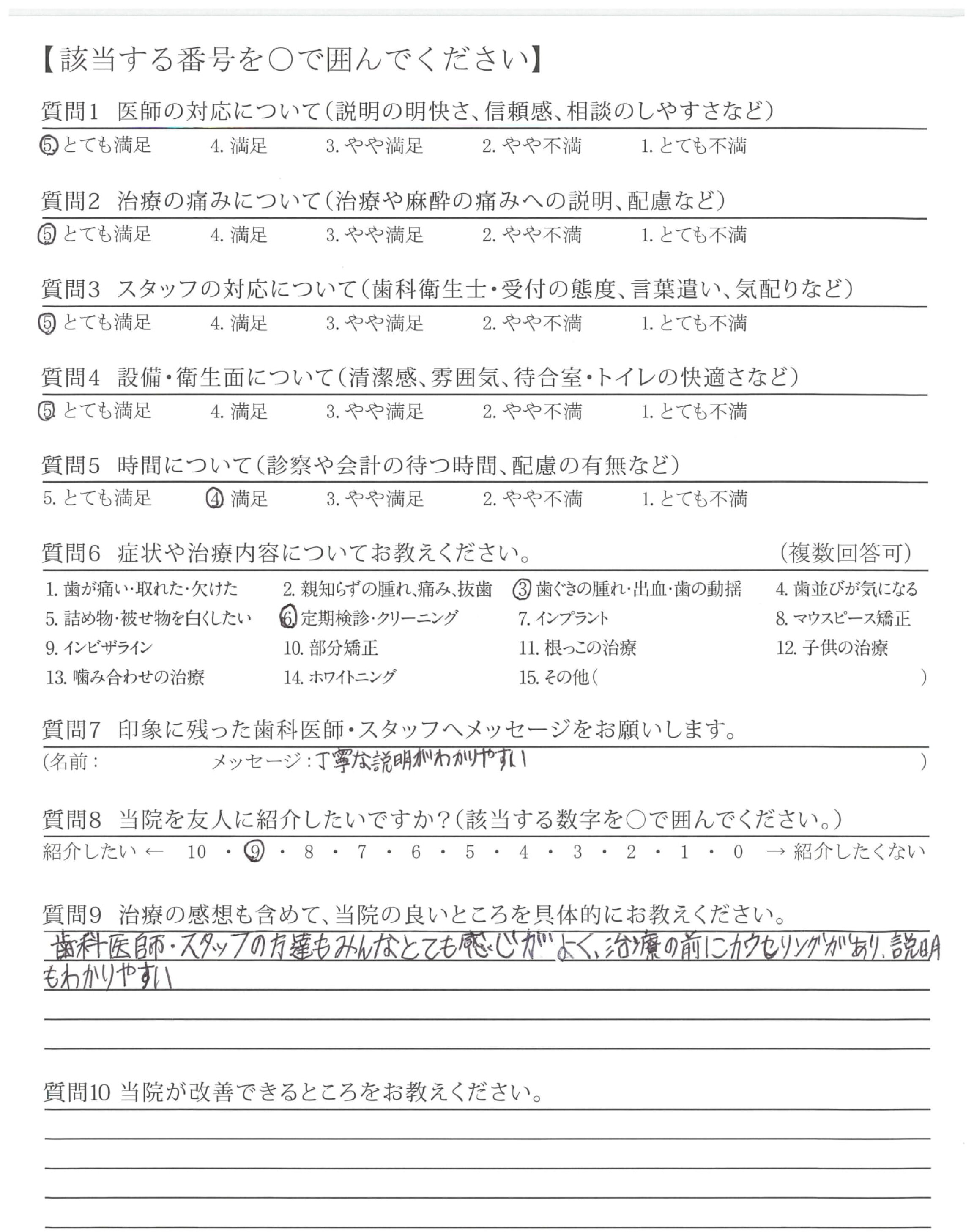 治療がていねいで、痛みも感じず安心でき、説明もわかりやすかったです。