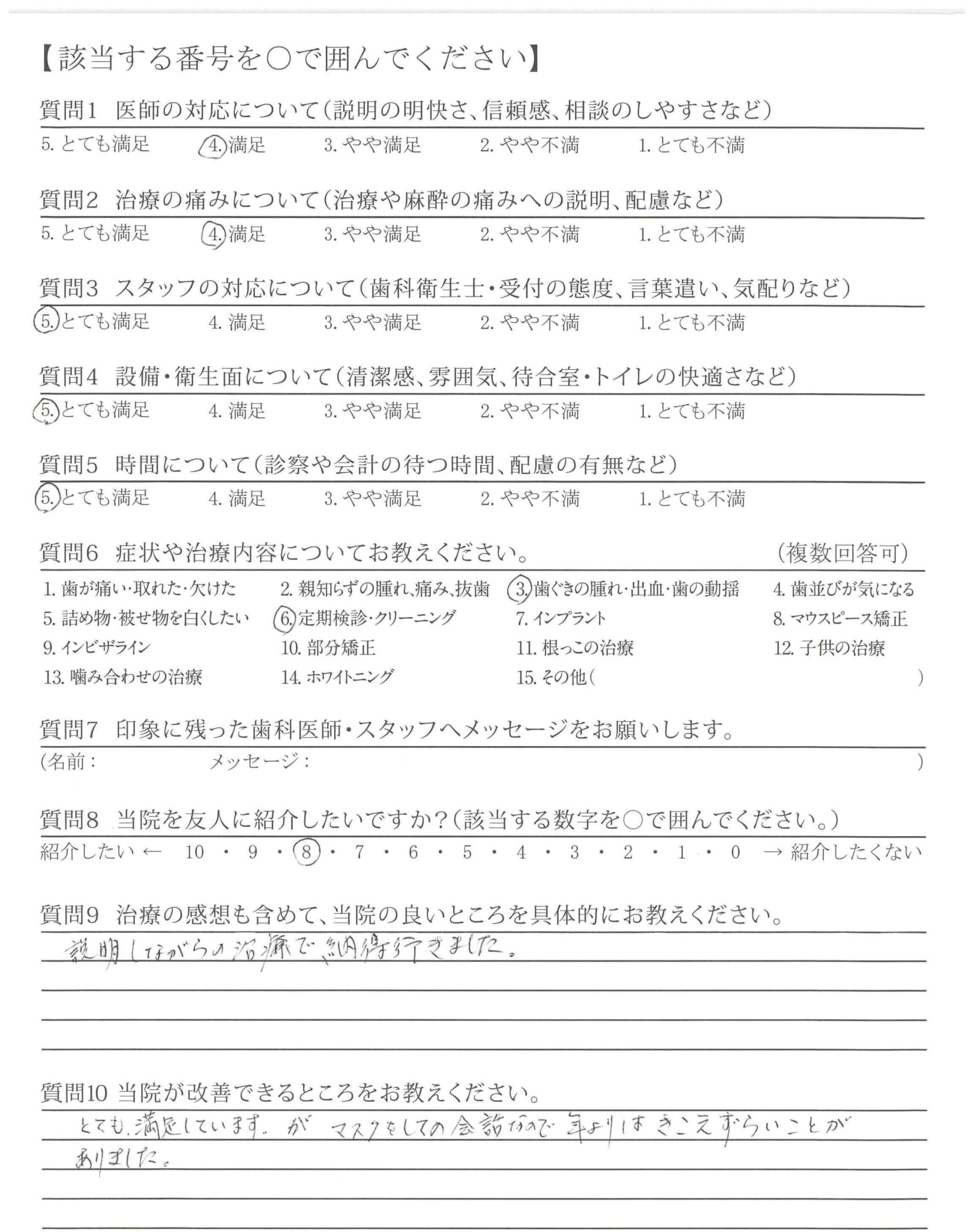 治療前も後も十分に説明頂き、安心しました。