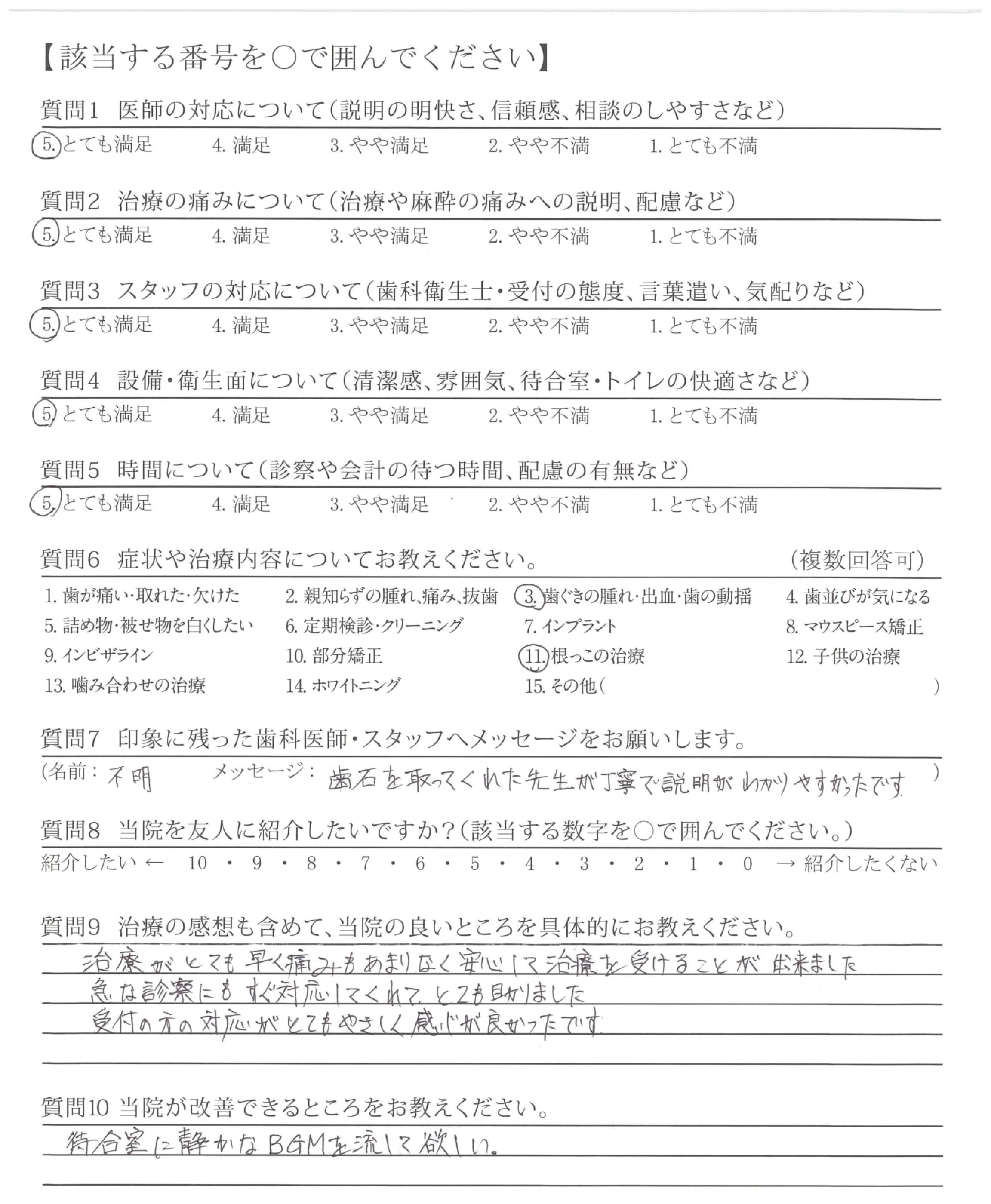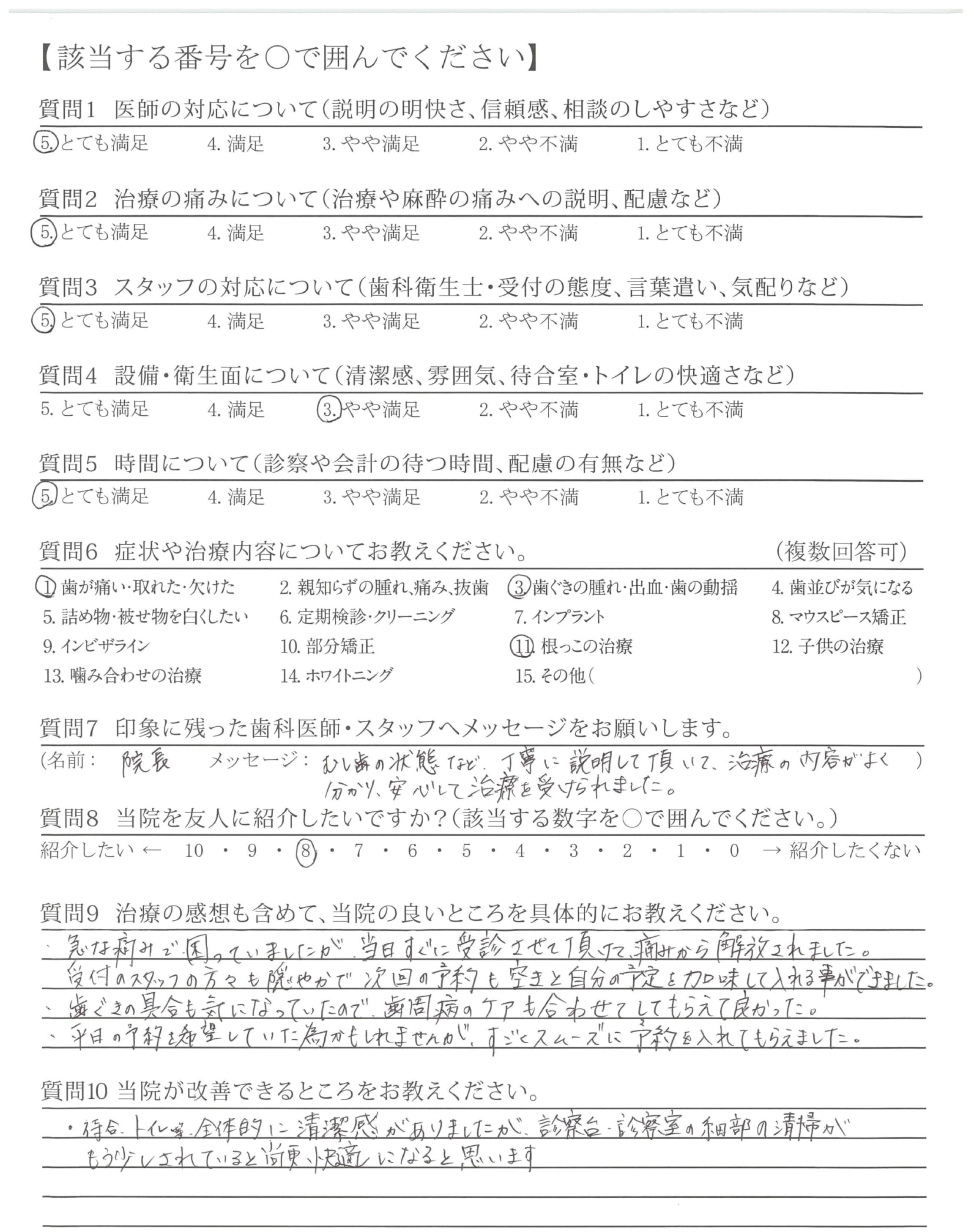 治療がとても早く痛みもあまりなく安心して治療を受けることが出来ました