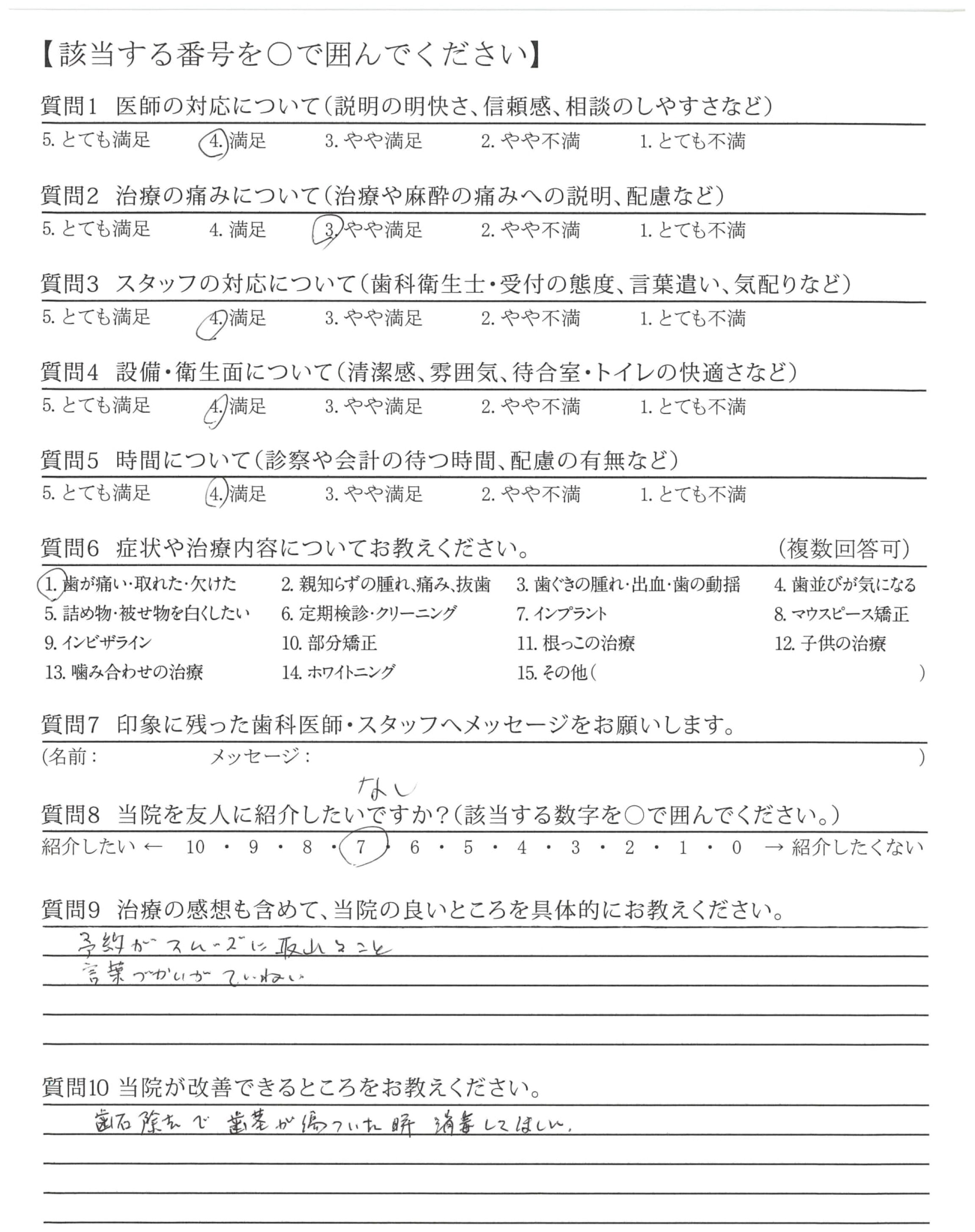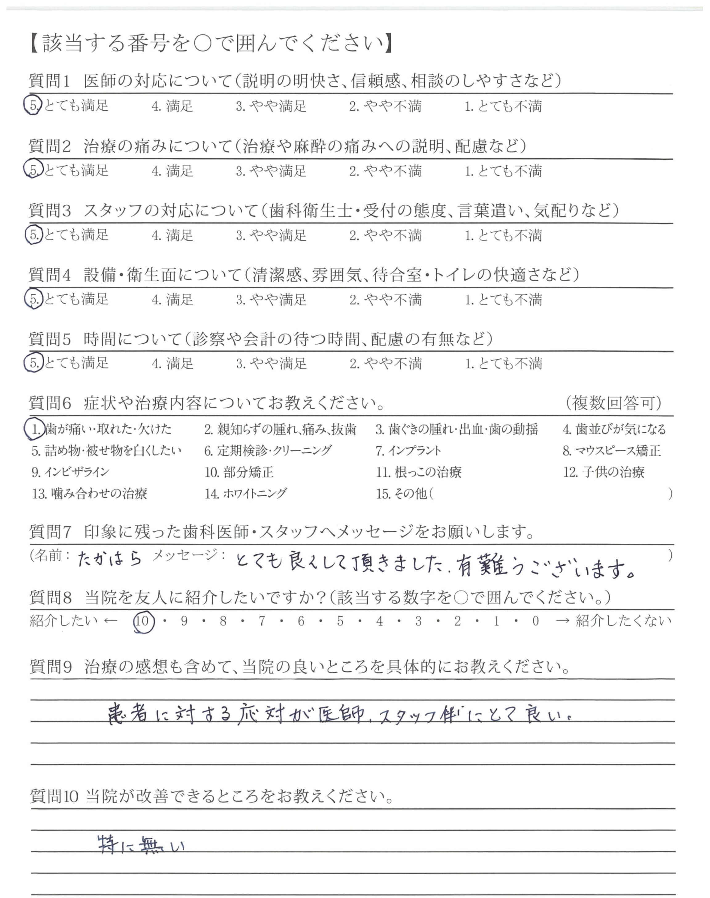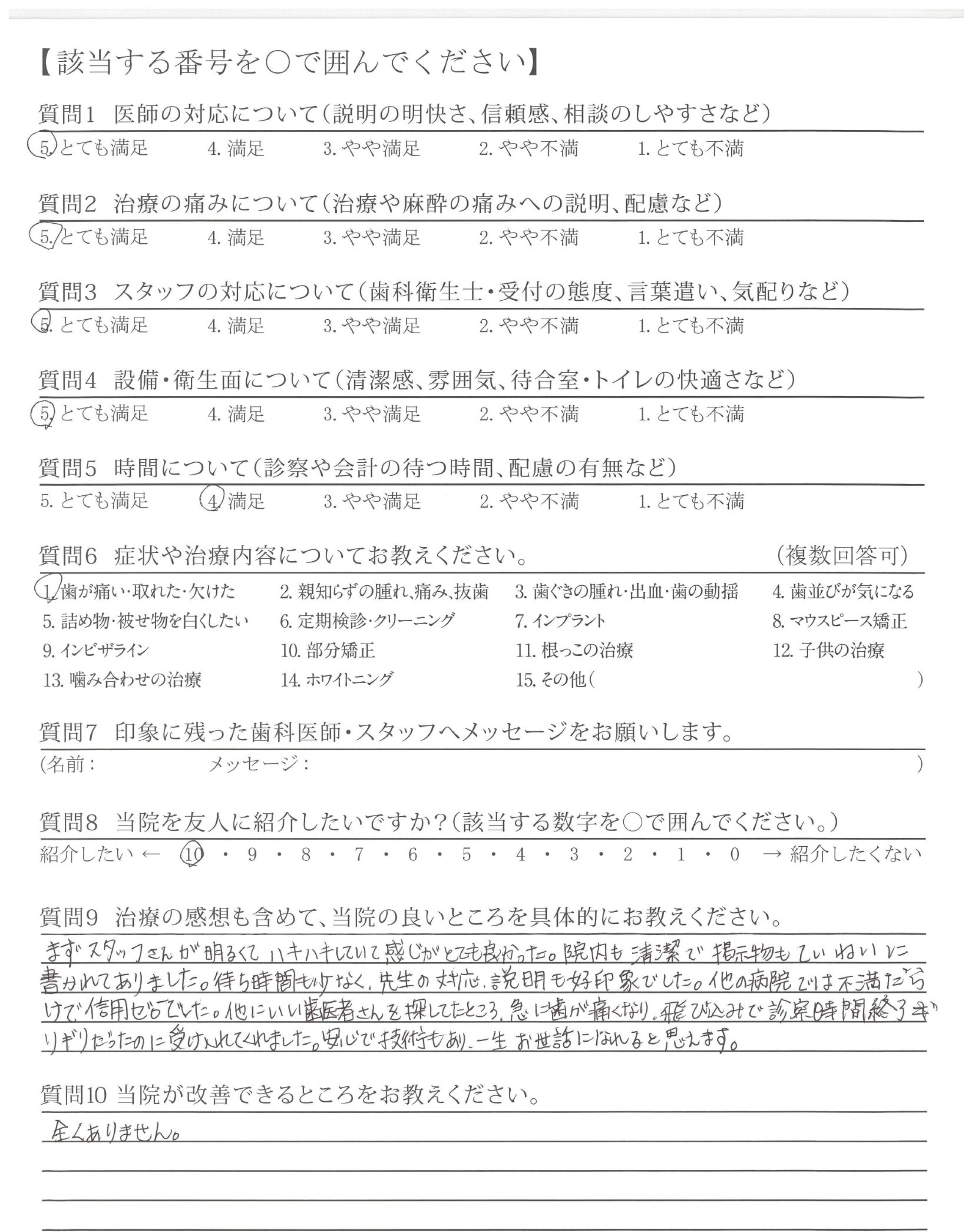 他の病院では不満だらけで、信用ゼロでした。他にいい歯医者さんを探してたところ、急に歯が痛くなり、飛び込みで診察時間終了ギリギリだったのに受け入れてくれました。