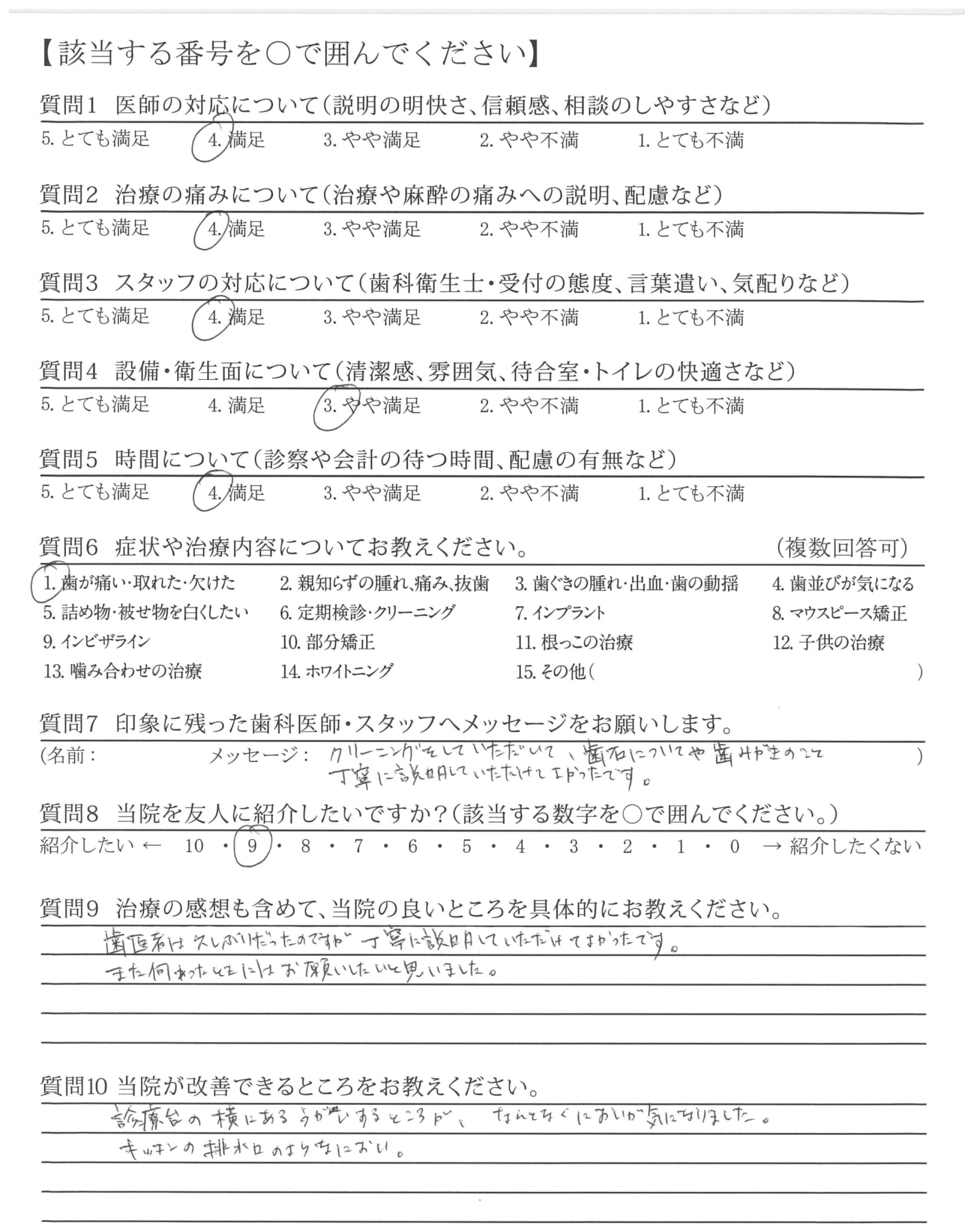 クリーニングをしていただいて、歯石についてや歯みがきのこと丁寧に説明していただけてよかったです。