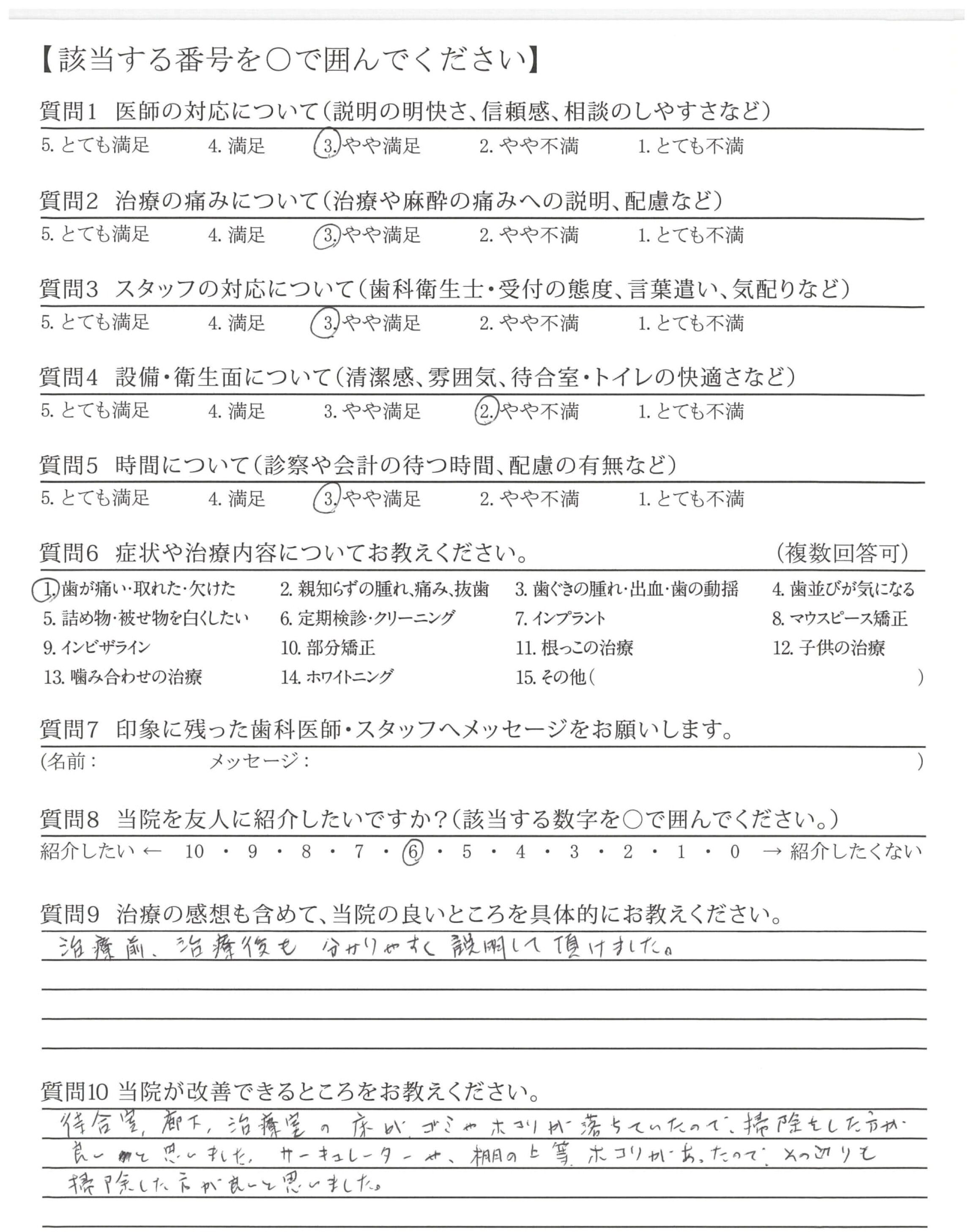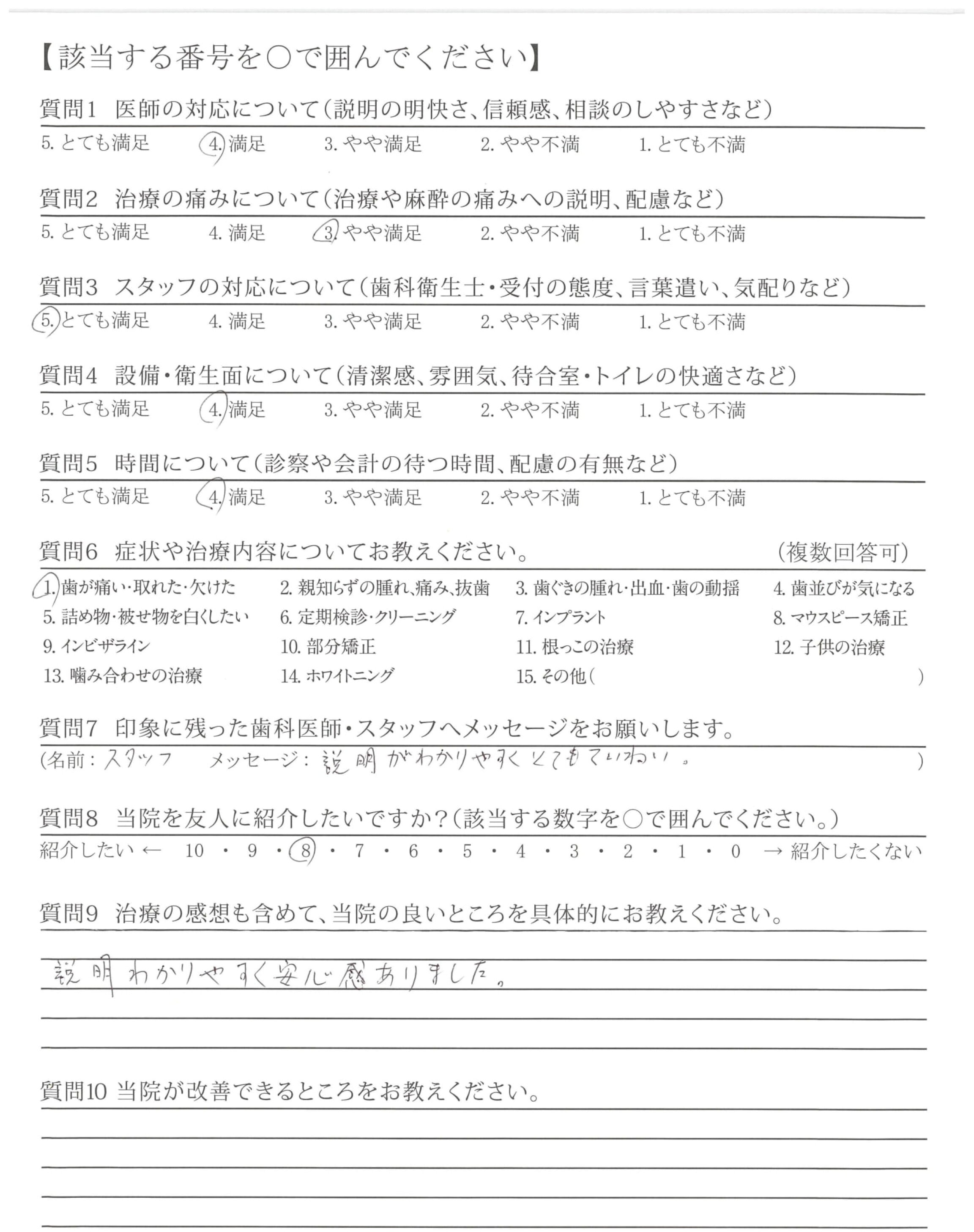 説明、治療などとても丁寧にしていただきありがとうございました。