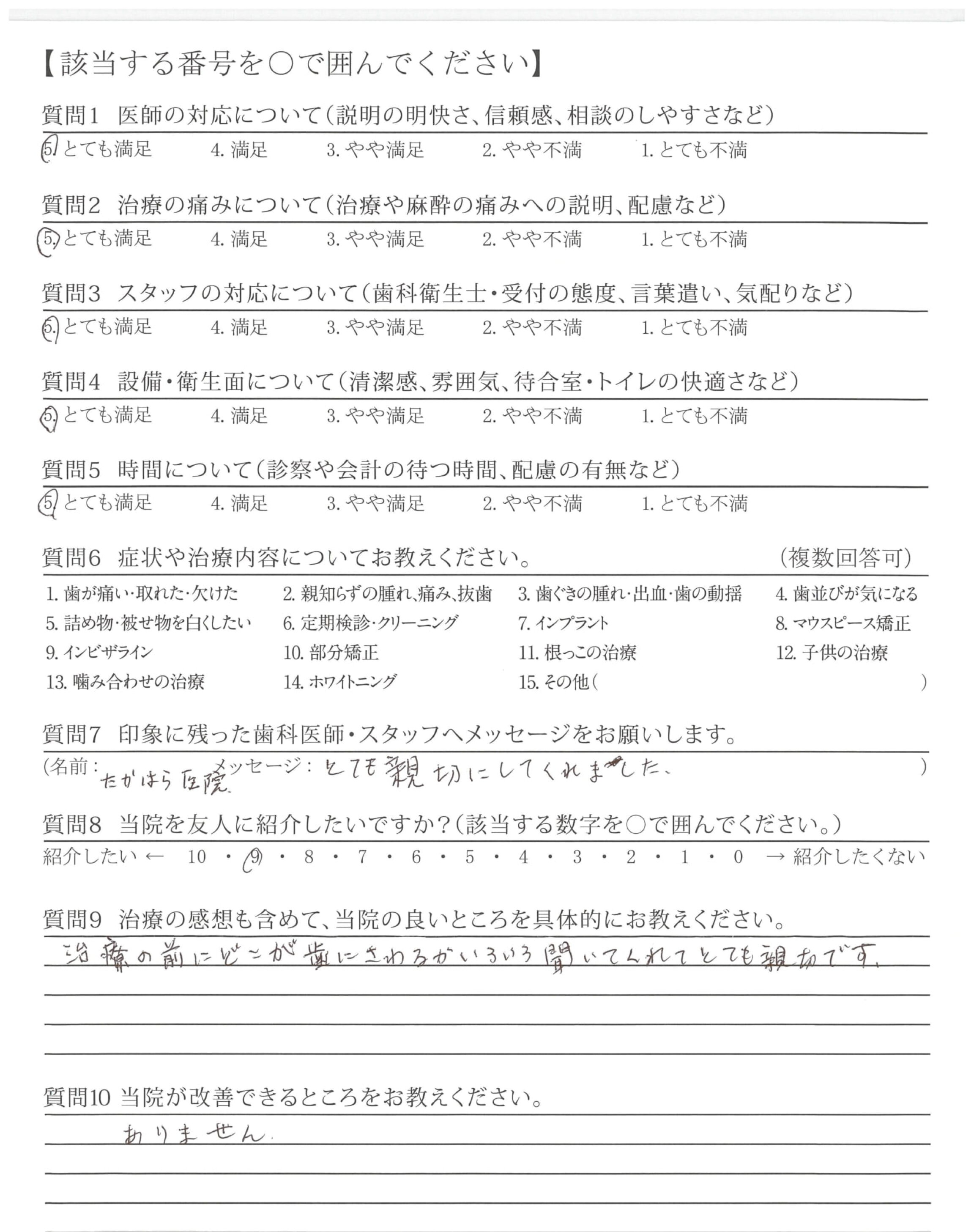 治療がとても早く痛みもあまりなく安心して治療を受けることが出来ました