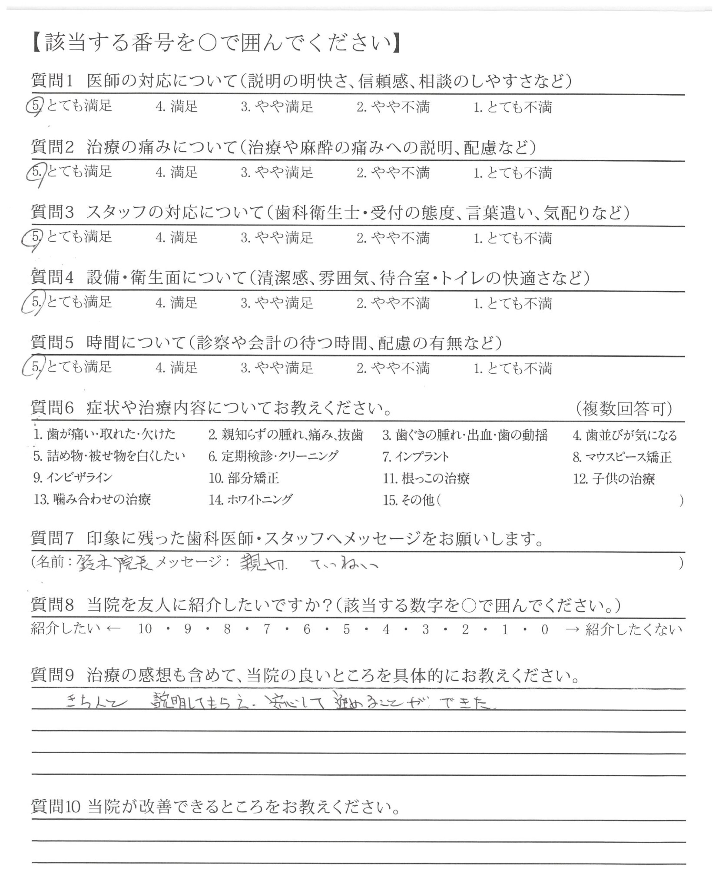 先生の治療はとてもていねいで安心して治療を受けることができました。