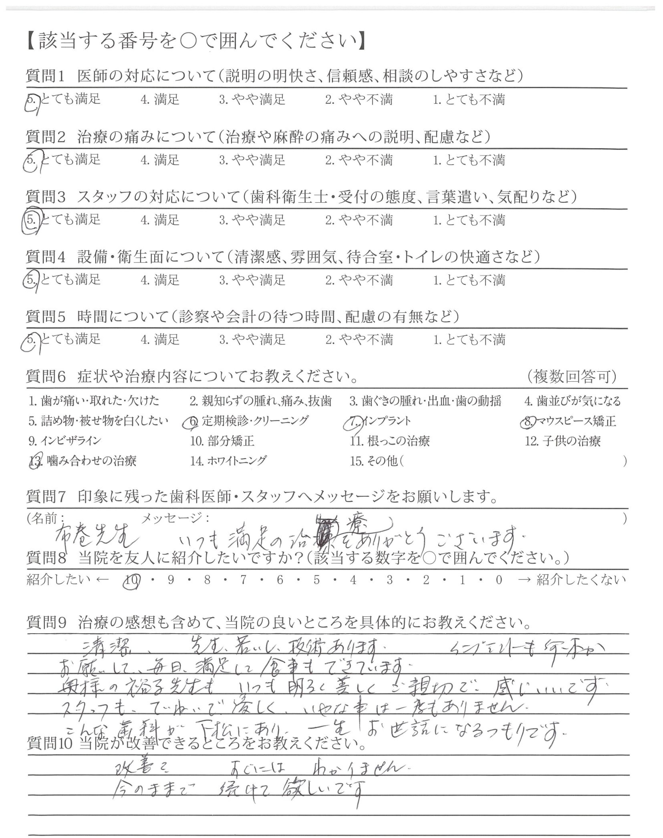 インプラント何本かお願いして、毎日満足して食事もできています。