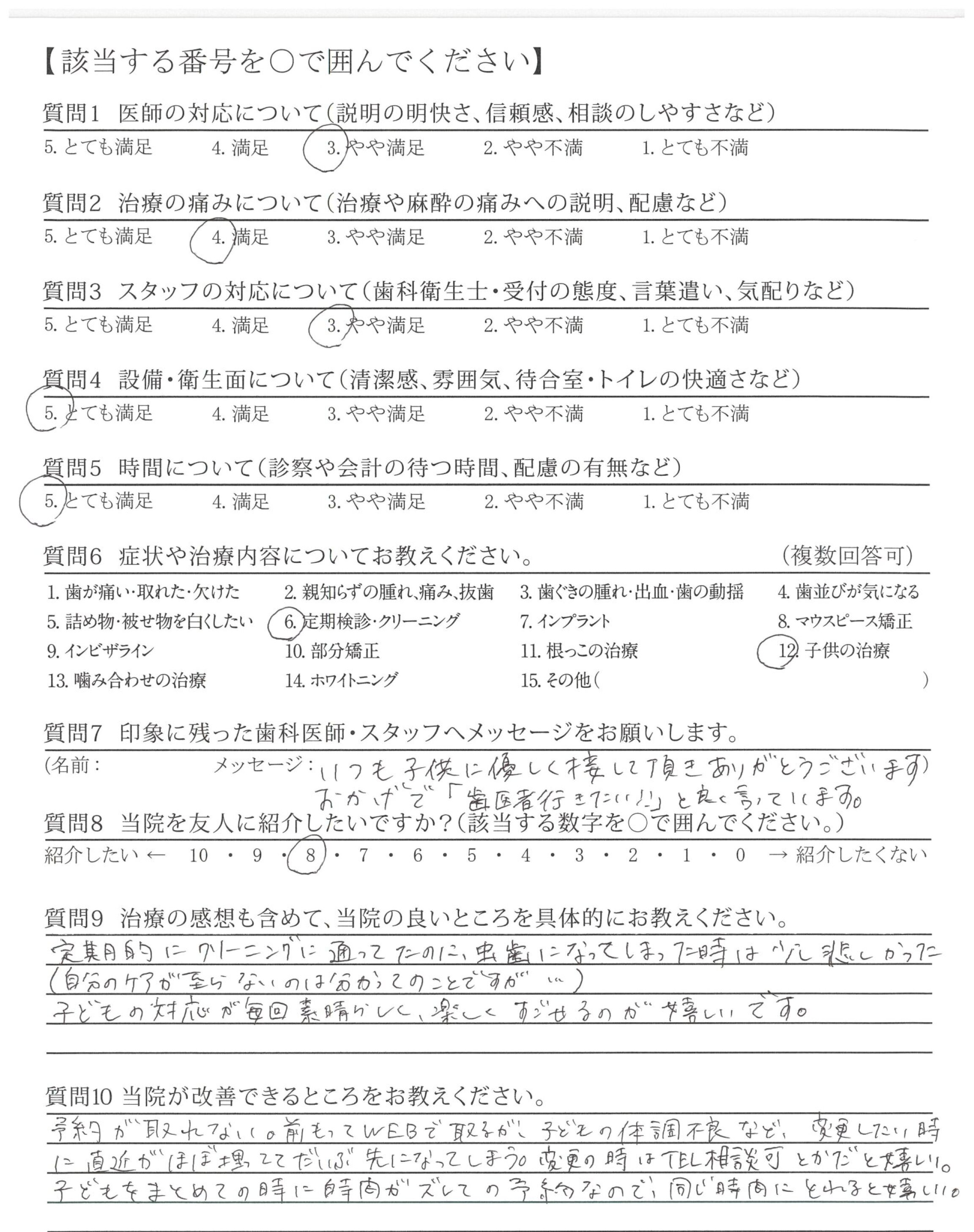 医師の方の声が少し聞き取りずらいことがあったので、もう少し大きめかつハッキリおっしゃってくださるとありがたかったかなと思います。(そこまで気になるわけでもないので、しいていうなら・・・です!満足しています。)