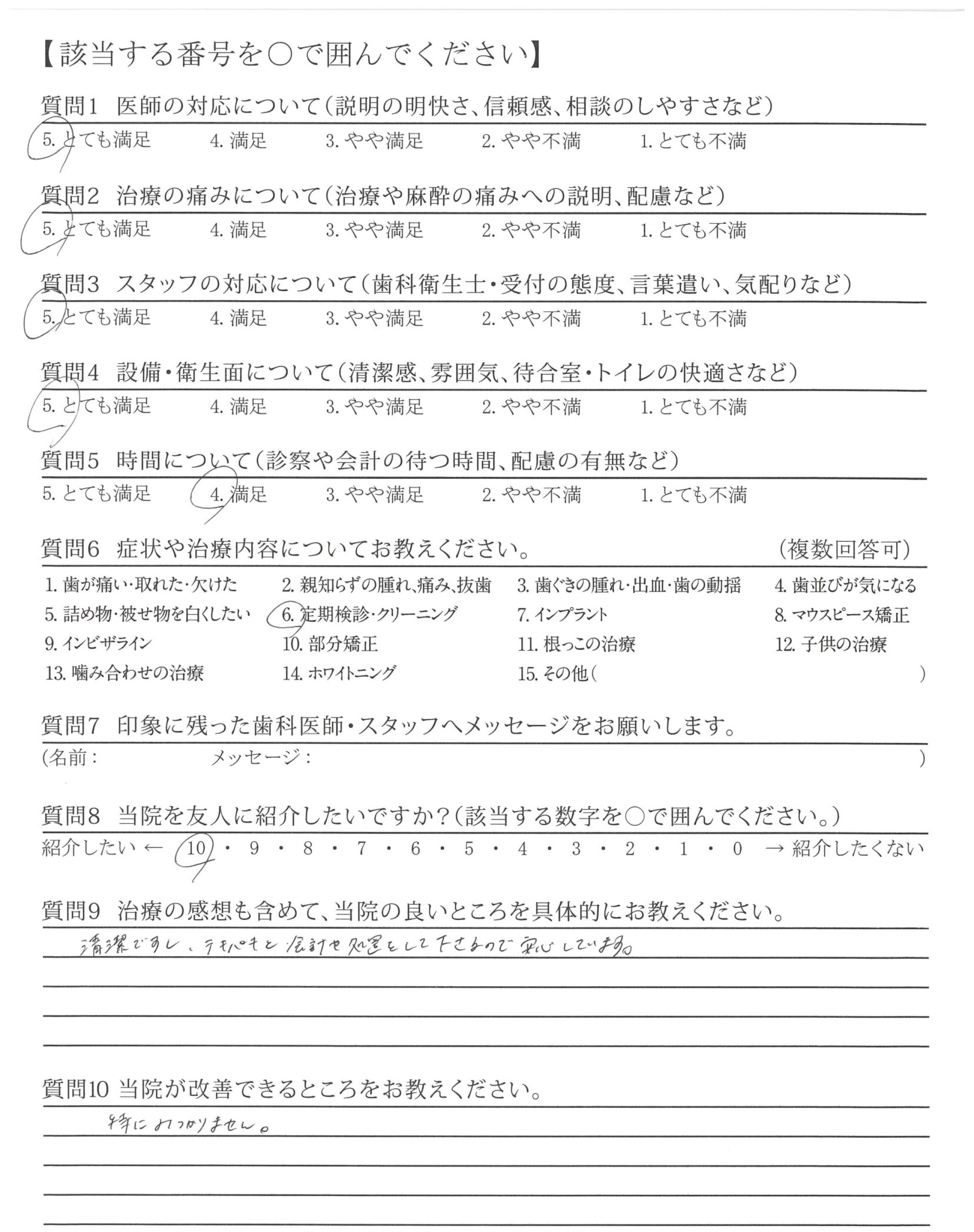 いつも丁寧にクリーニングしてくださったり、説明してくださりありがとうございます!抜歯の時はとくに!安心して治療できました。