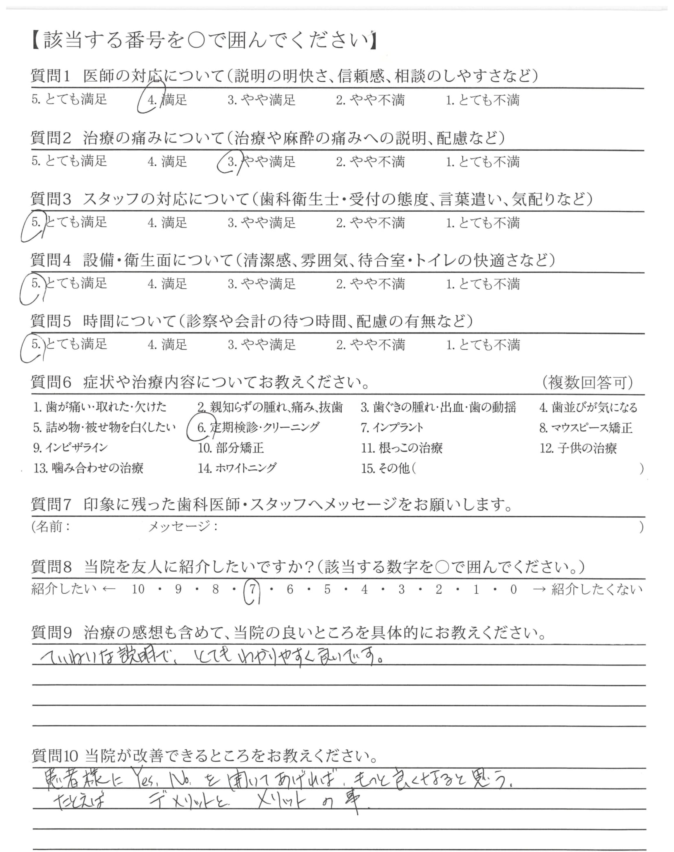 患者様にYes,Noを聞いてあげれば、もっと良くなると思う。たとえばデメリットとメリットの事。