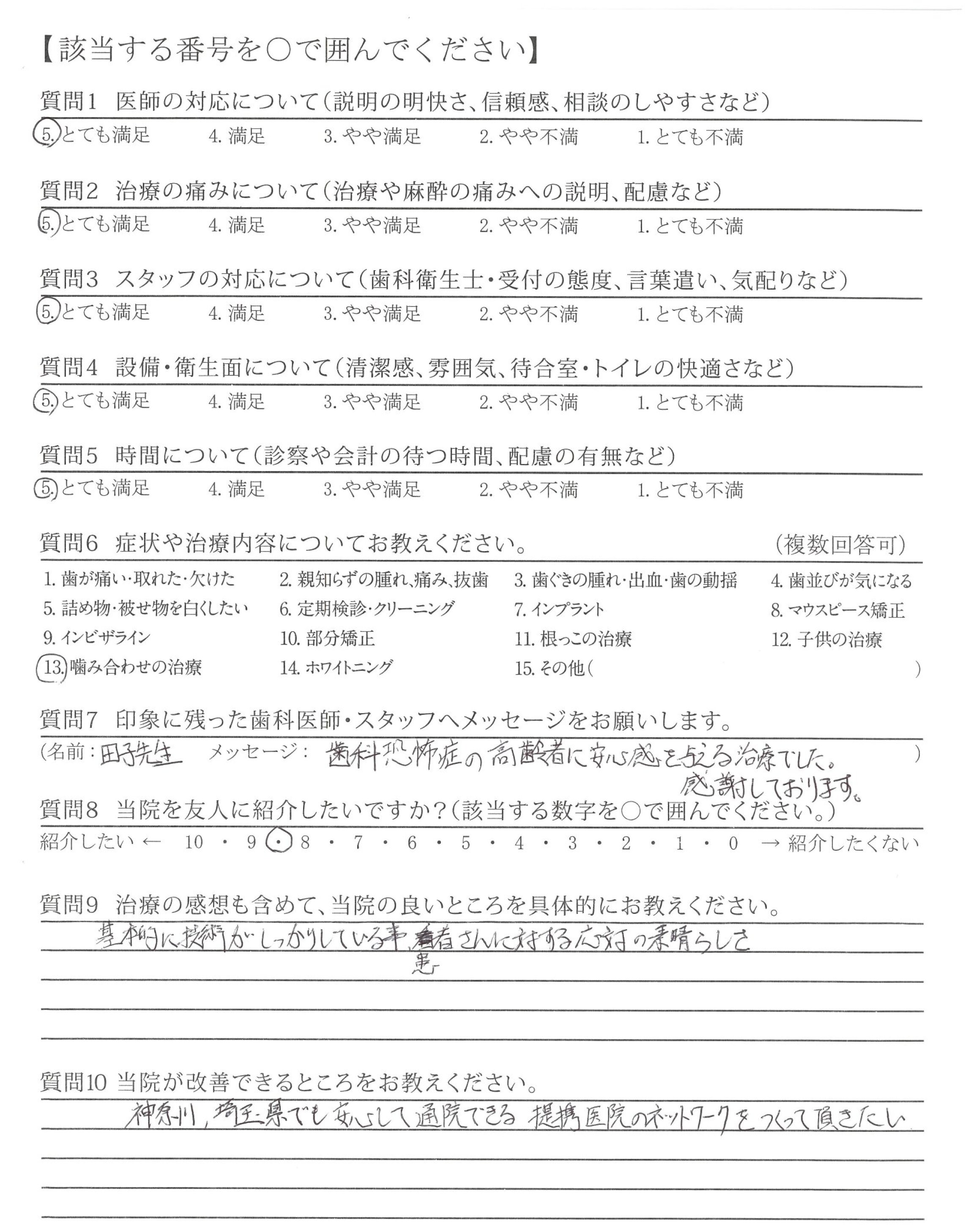 歯科恐怖症の高齢者に安心感を与える治療でした。感謝しております。