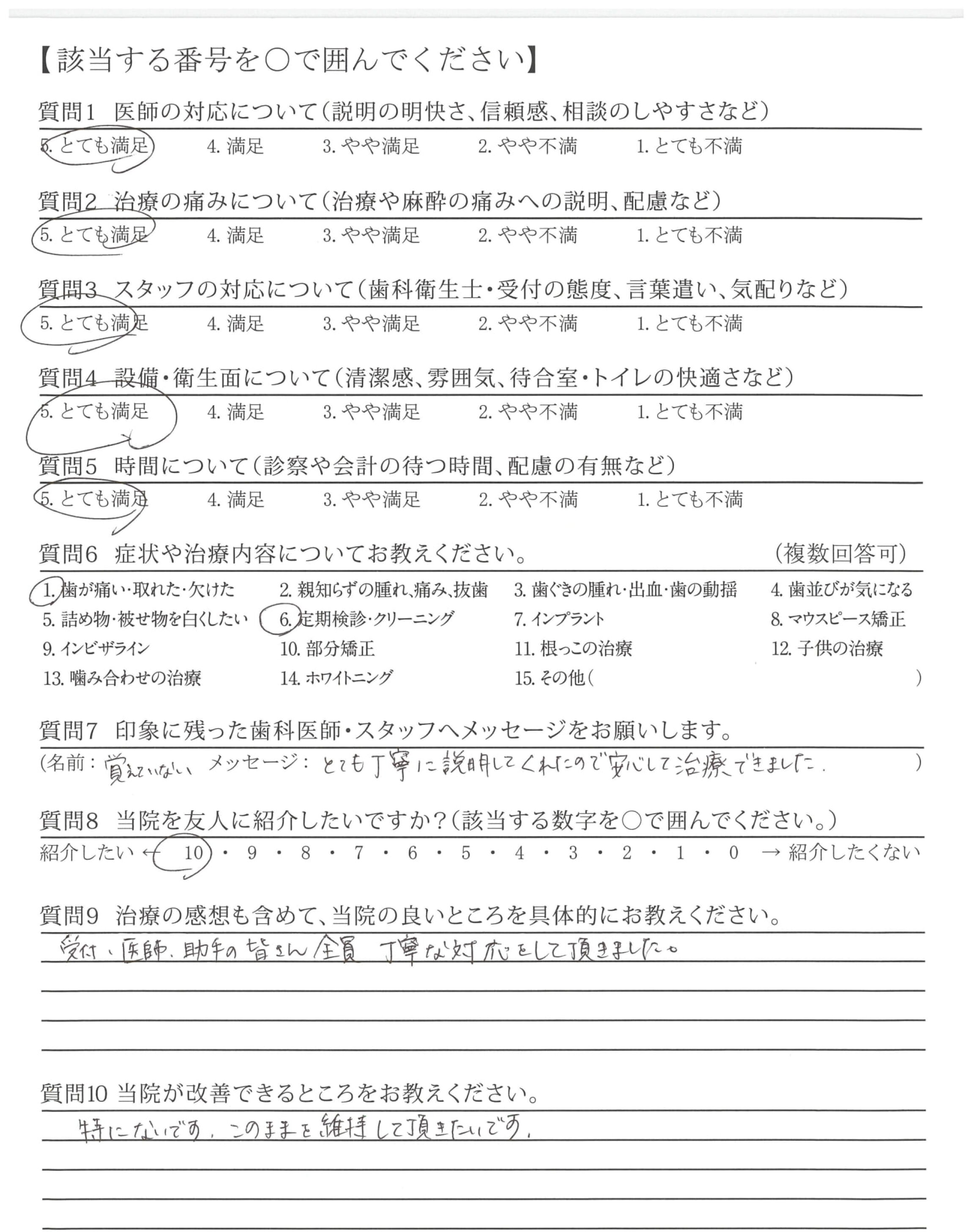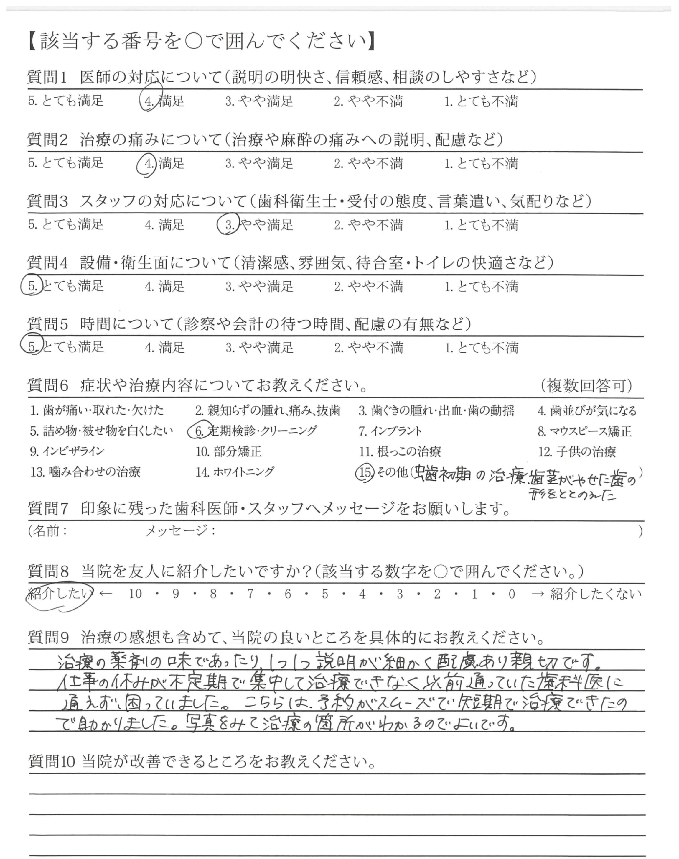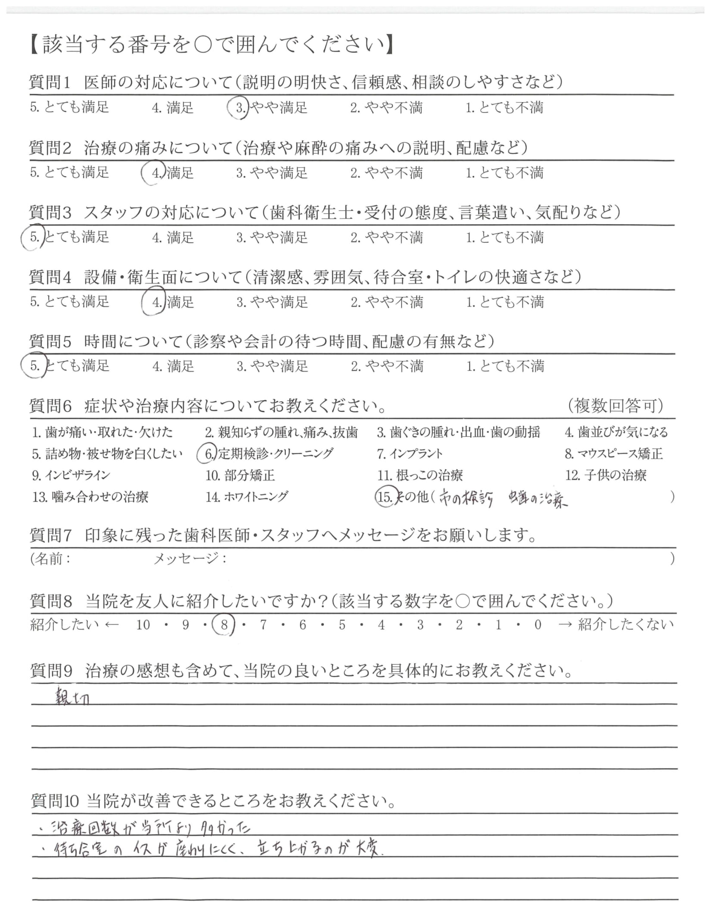 わかりやすい説明と、スピーディな治療をありがとうございました。