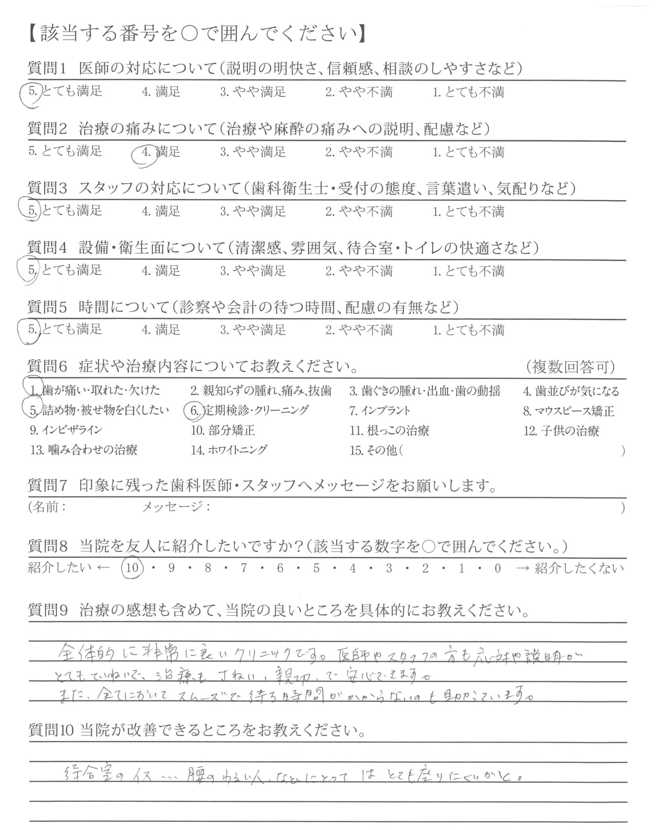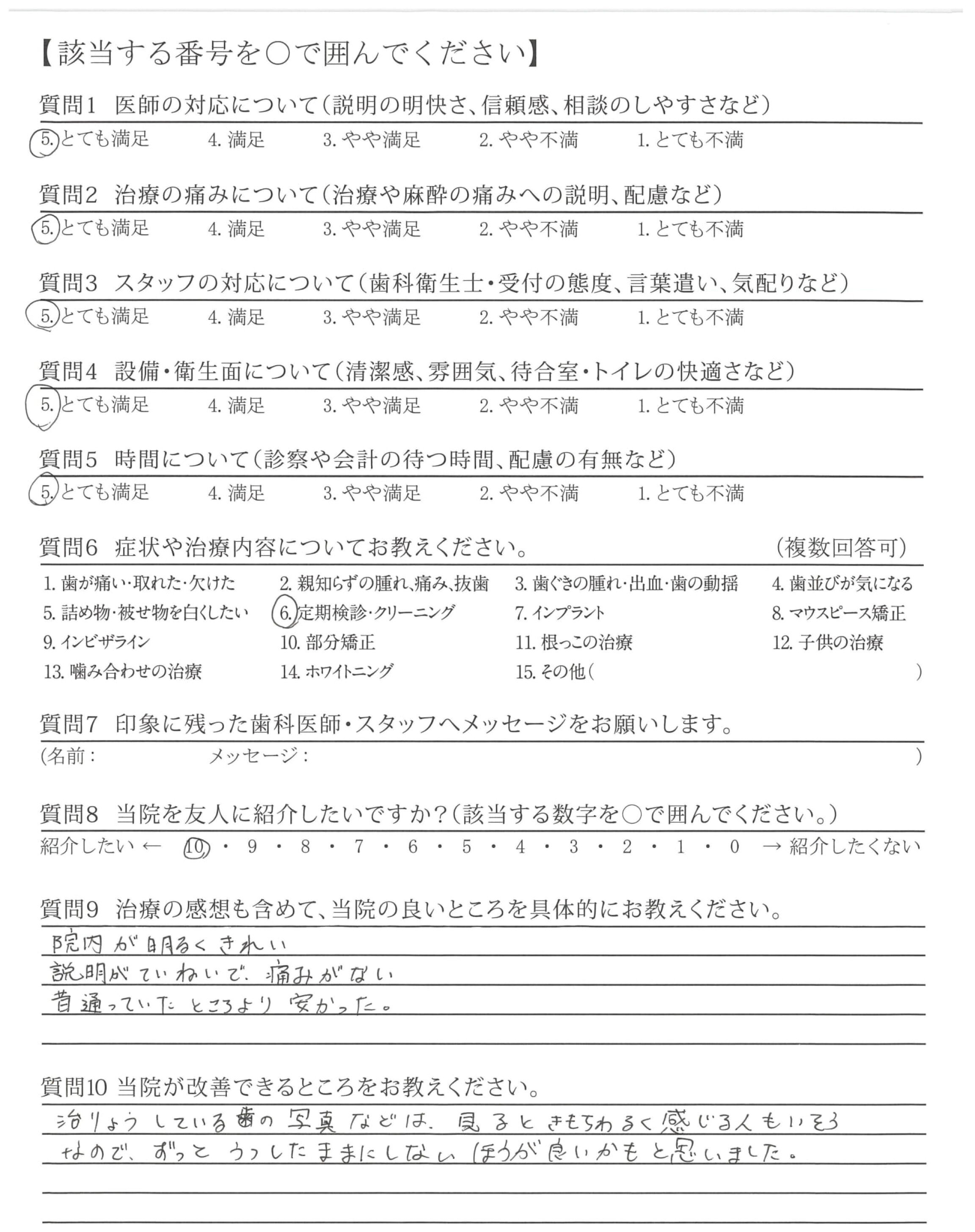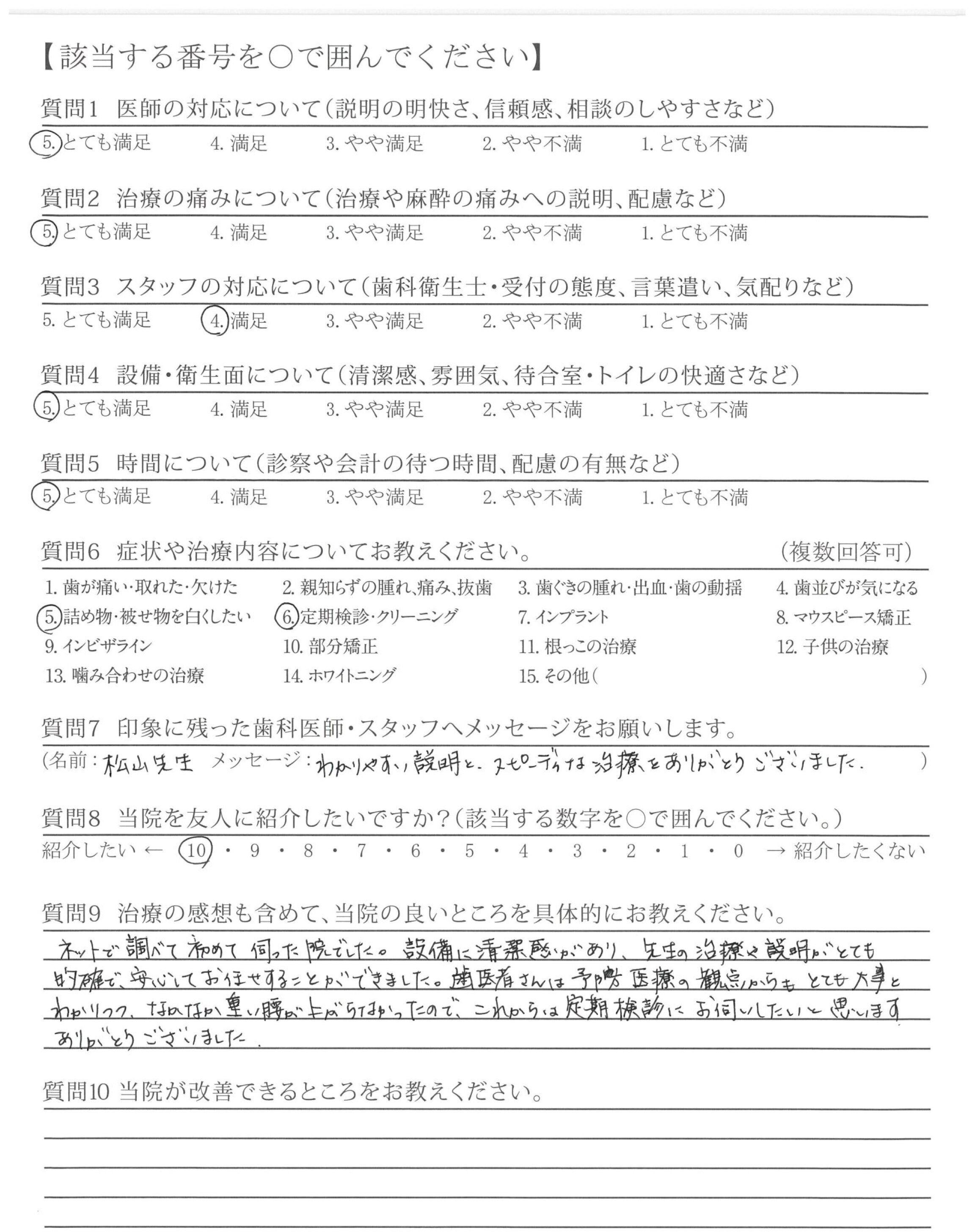わかりやすい説明と、スピーディな治療をありがとうございました。